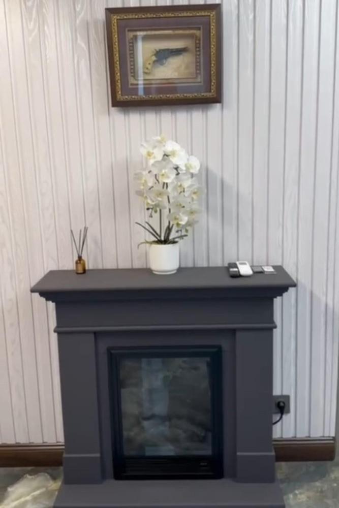 Дом состоит из двух комнат: гостинной-столовой и спальни. Гостинная оснащена кухней, в которой есть все необходимое : микроволновая печь, электроплита, холодильник, посуда. Для комфорта в гостинной есть камин и большой диван, обеденный стол. Санузел оборудован душевой кабиной