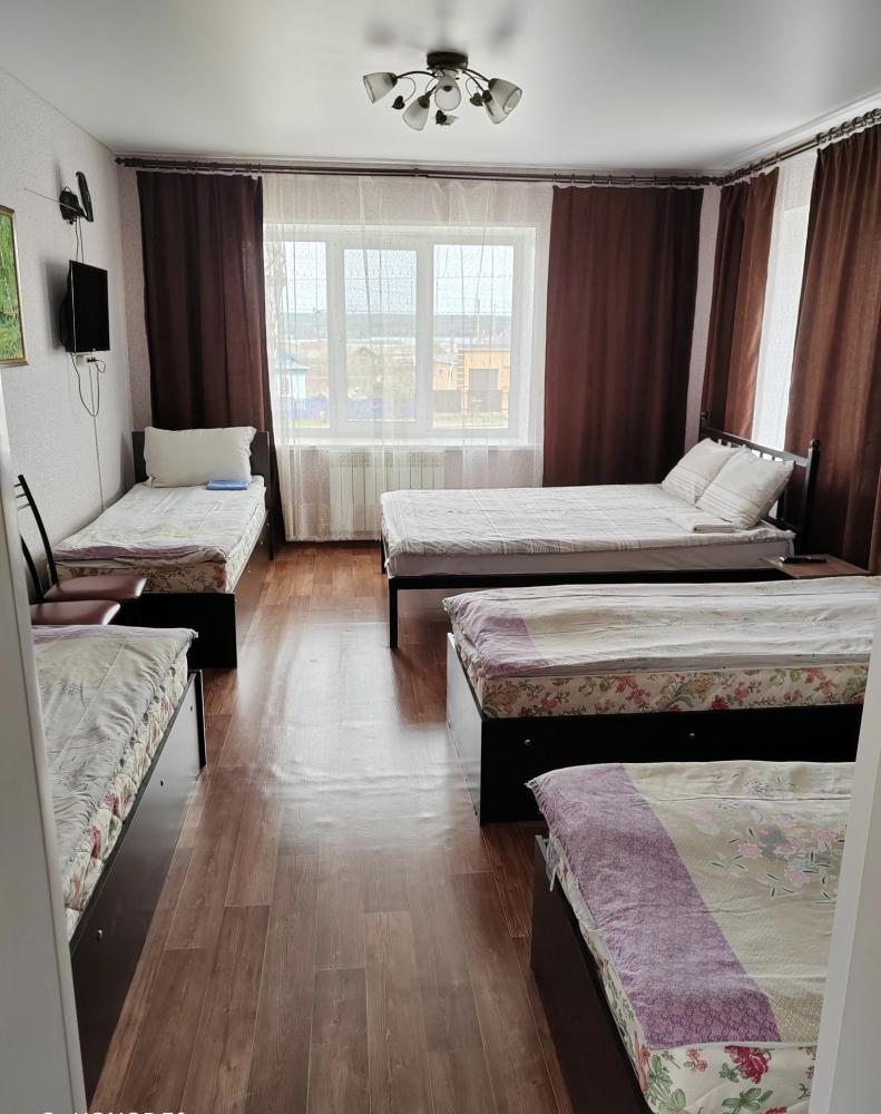 В номере 1 двуспальная кровать и 4 односпальные кровати. Холодильник. Удобства находятся в номере.