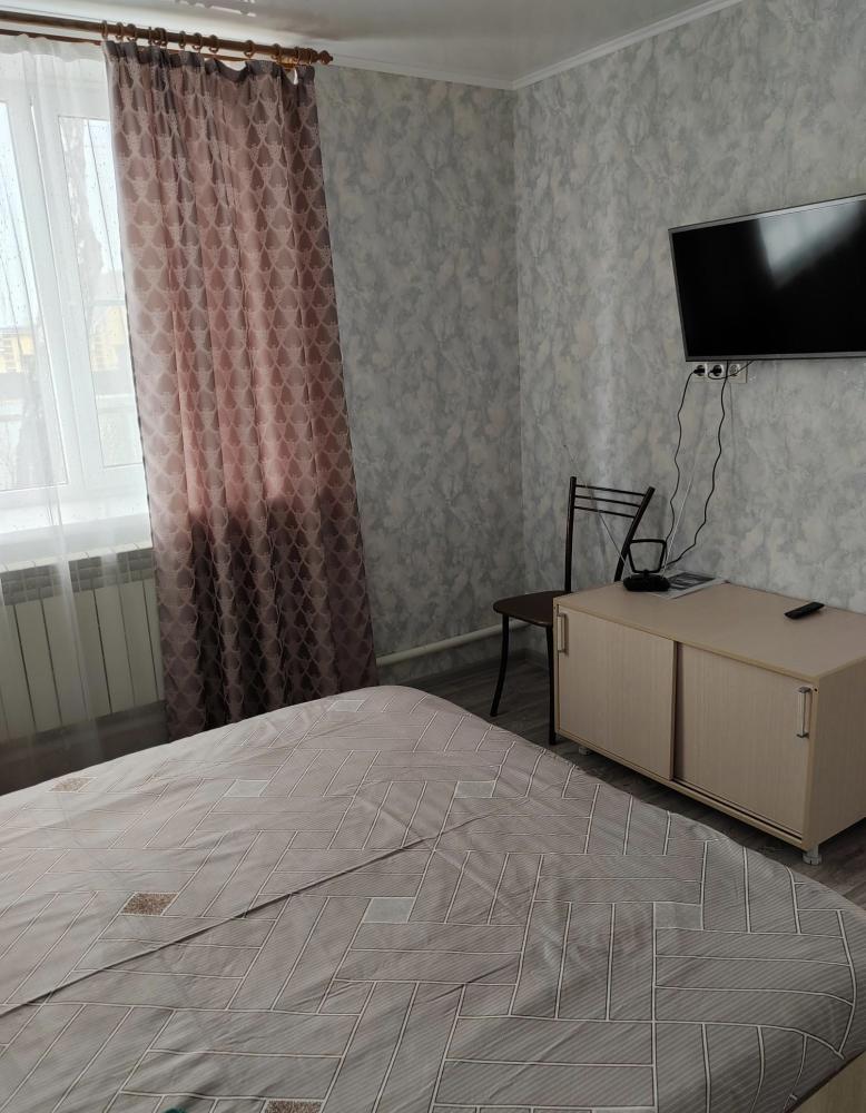 Номер с двуспальной кроватью, санузлом. В номере есть микроволновая печь.