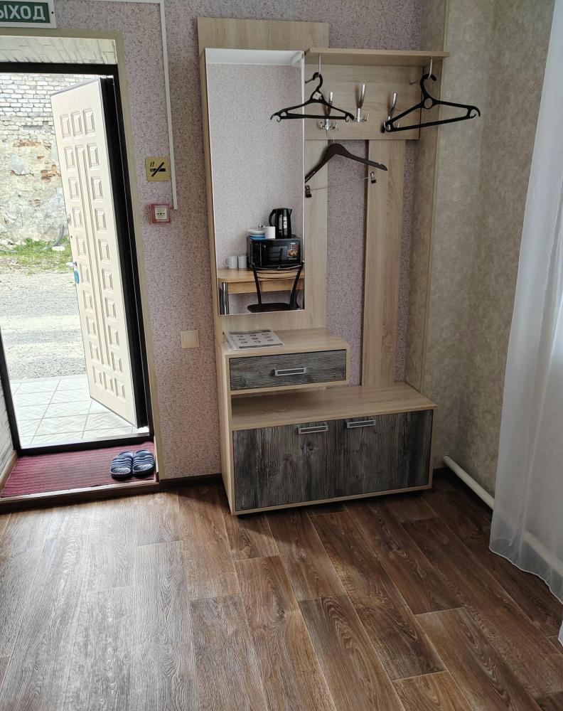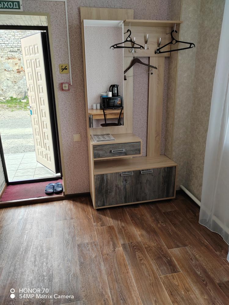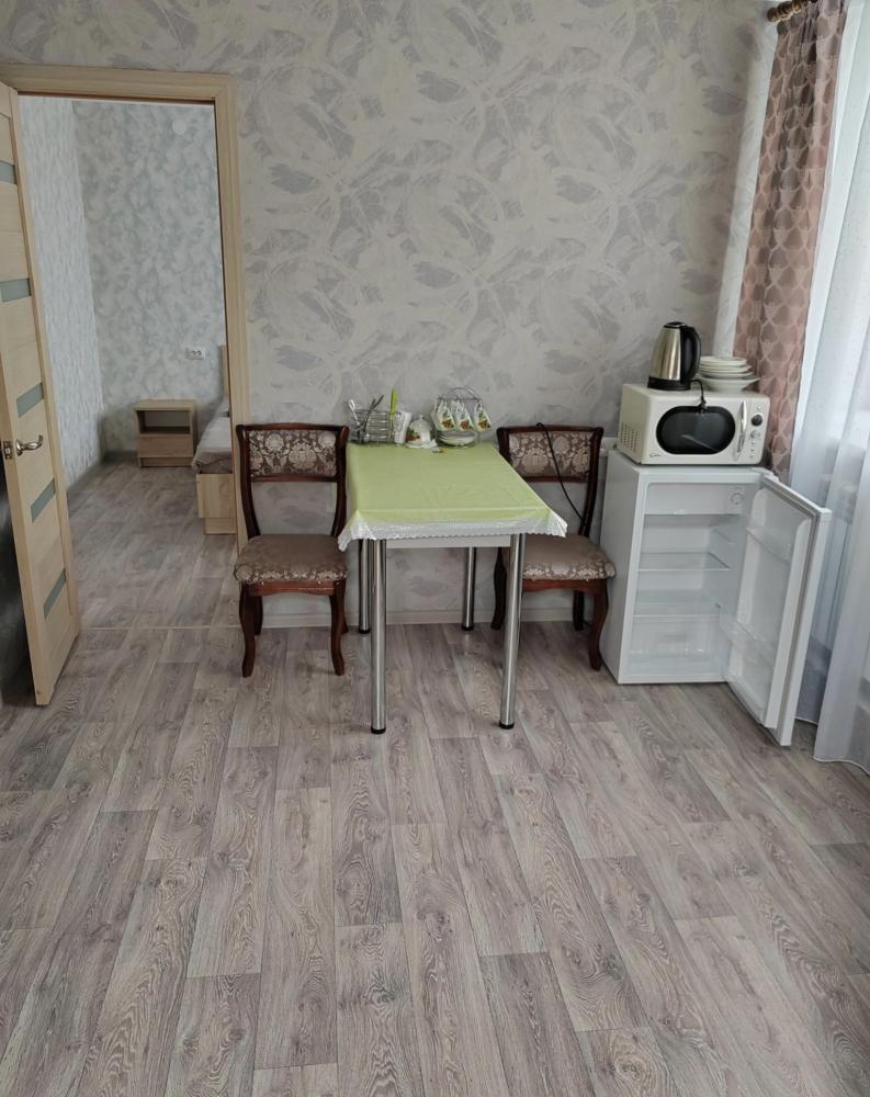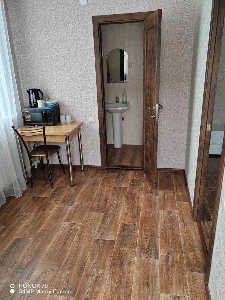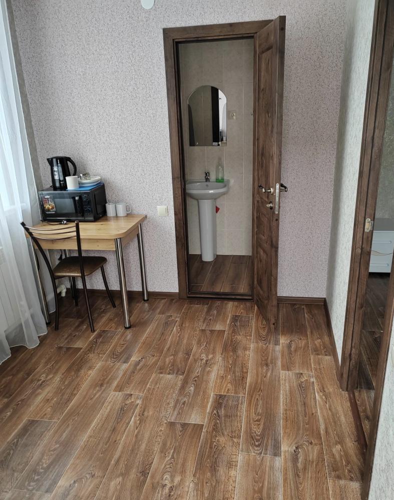 Номер улучшенной планировки с отдельным входом, двуспальной кроватью, санузлом. В номере есть холодильник и микроволновая печь.