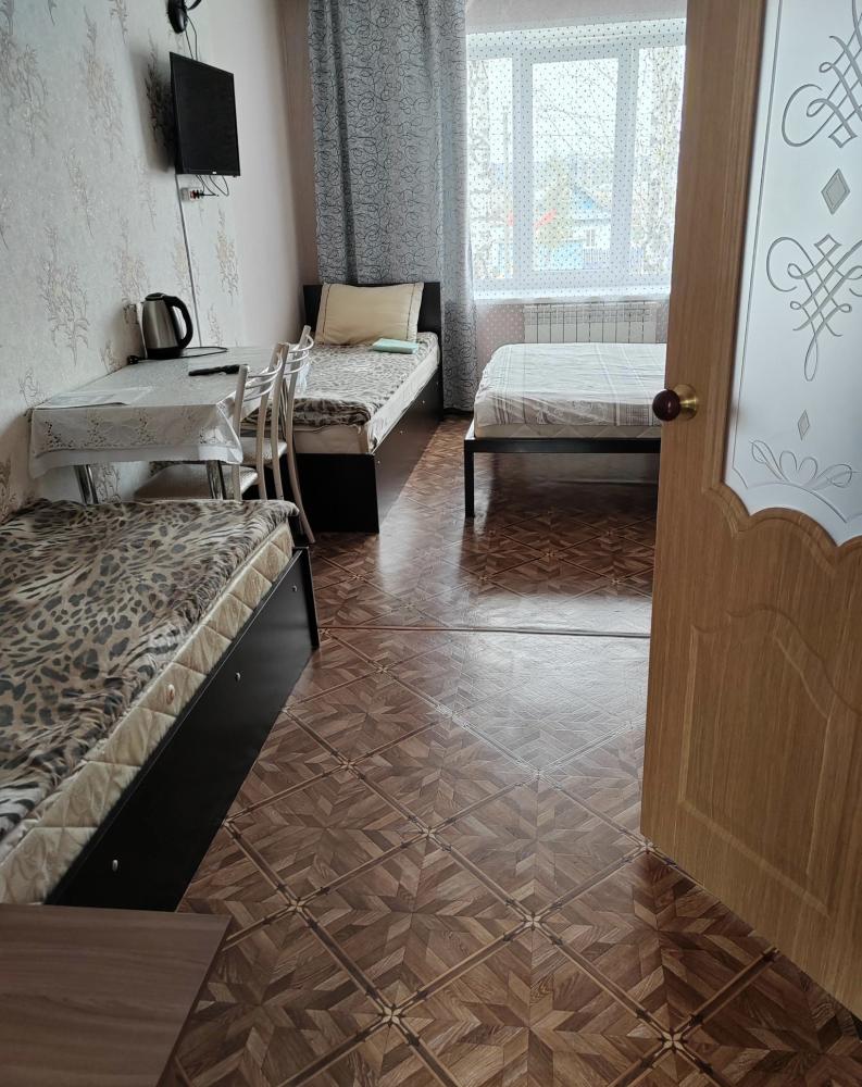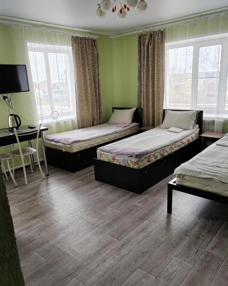 В номере 1 двуспальная кровать и 2 односпальная кровать. Удобства находятся в номере.