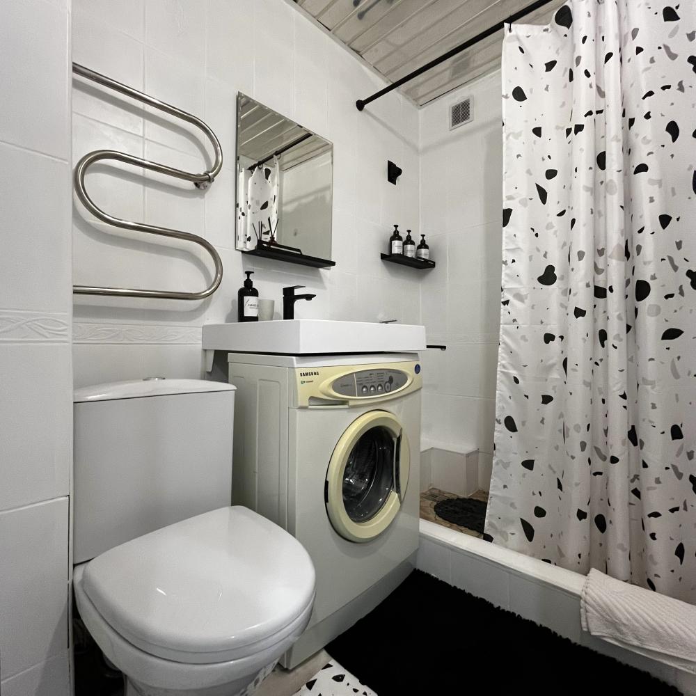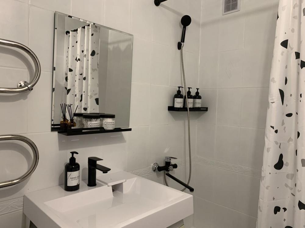 В данной квартире могут комфортно разместиться до 4-х человек, в ней расположена спальня-гостиная с двуспальной кроватью (160*200) и вторая спальня с двуспальным диваном (160*200), отдельно кухня, санузел и большой шкаф. Также из удобств: высокоскоростной Wi-Fi, смарт ТВ (два телевизора в одной и во второй спальне), стиральная машина, утюг, чайник, фен, микроволновка, плита и духовка, постельное бельё из премиального сатина , новый матрас, набор махровых полотенец, средства личной гигиены, полный набор посуды и столовых приборов, чай, кофе, сахар.