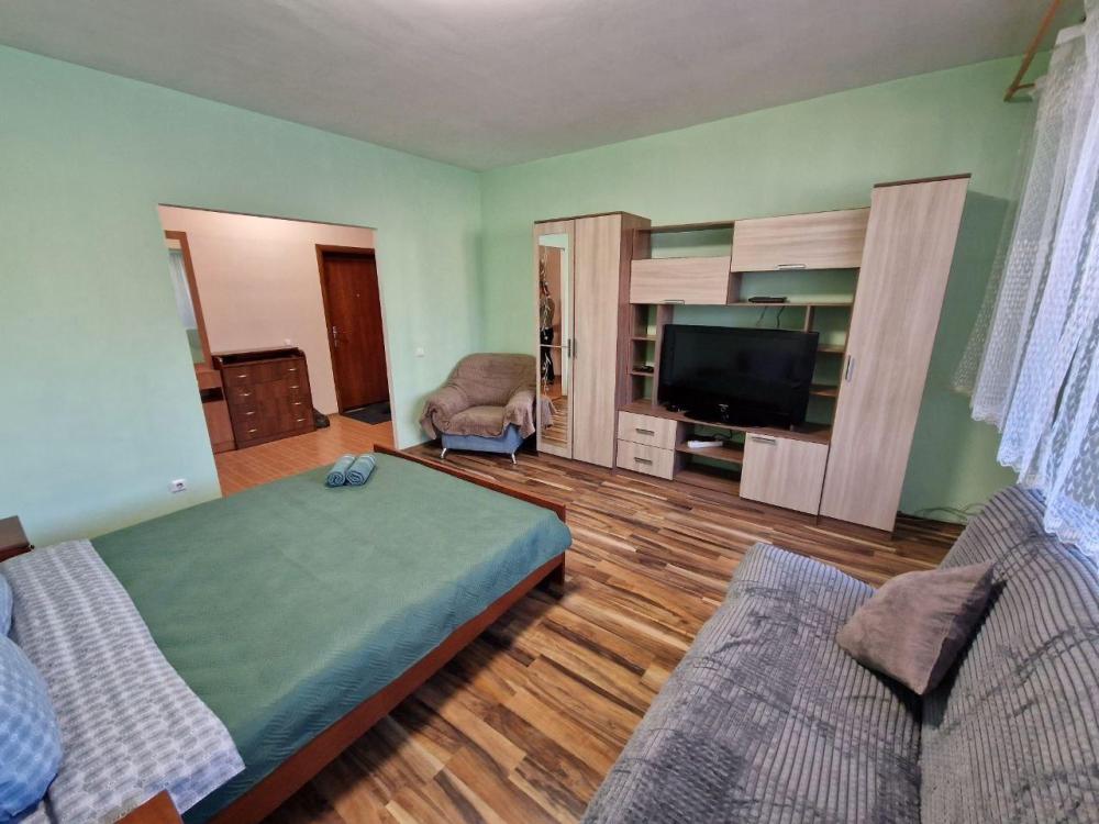 В квартире есть всё для комфортного проживания а именно: двуспальная кровать, диван 2 х спальный, шкаф, водонагреватель, телевизор Smar TB, wi-fi, кабельное тв. Печь электро, фен, утюг, гладильная доска, чайник, посуда, постельное белье, полотенца, средства гигиены. Доп. бельё постельное бесплатно.
