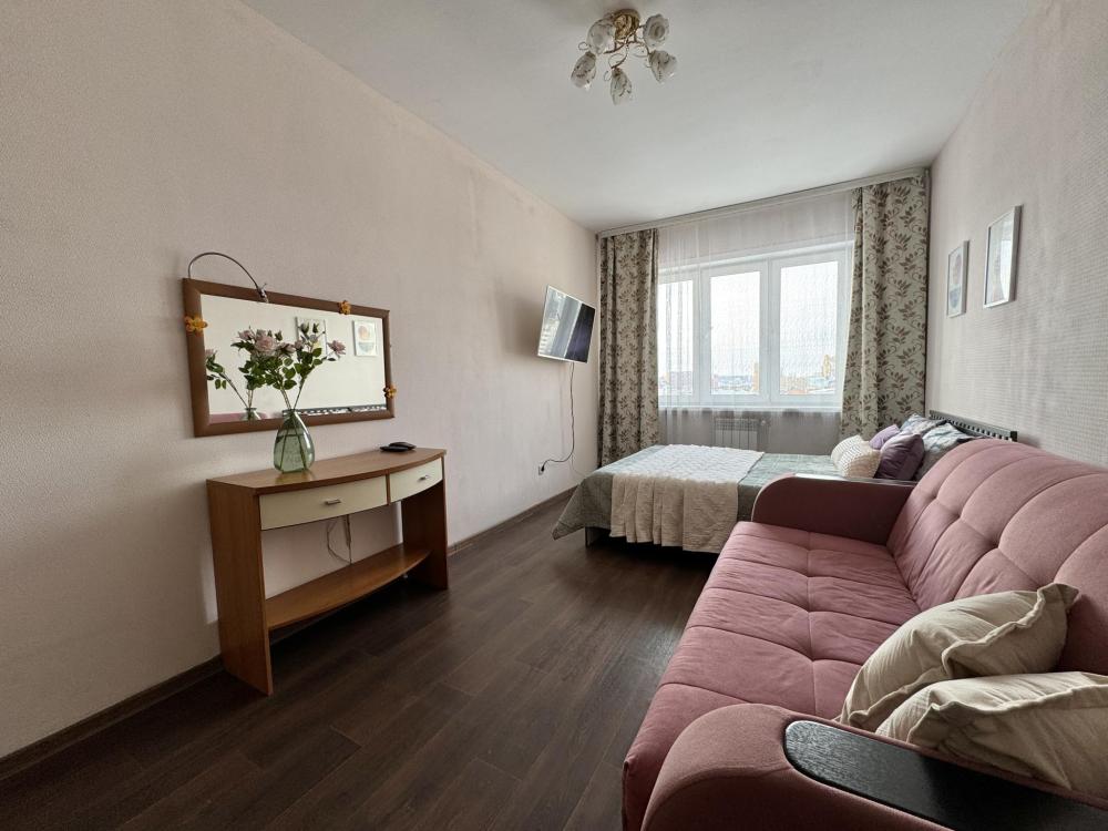 Однокомнатная квартира с панорамным балконом в новом доме в центре. Апартаменты рассчитаны на комфортное проживание гостей, имеется вся необходимая мебель и бытовая техника для проживания. Апартаменты предназначены для комфортного проживания гостей и оборудованы всей необходимой мебелью и бытовой техникой. Внутри апартаментов гостям доступен бесплатный высокоскоростной WI-FI, чистое постельное белье, посуда, столовые приборы, а также все необходимое для приготовления еды. Кроме того, в пешей доступности от апартаментов находятся различные кафе и рестораны, а также автобусные остановки, которые находятся в 5 минутах ходьбы. Таким образом, гости могут насладиться комфортным проживанием и удобствами, которые предоставляются в апартаментах, а также легко добраться до местных достопримечательностей и других интересных мест