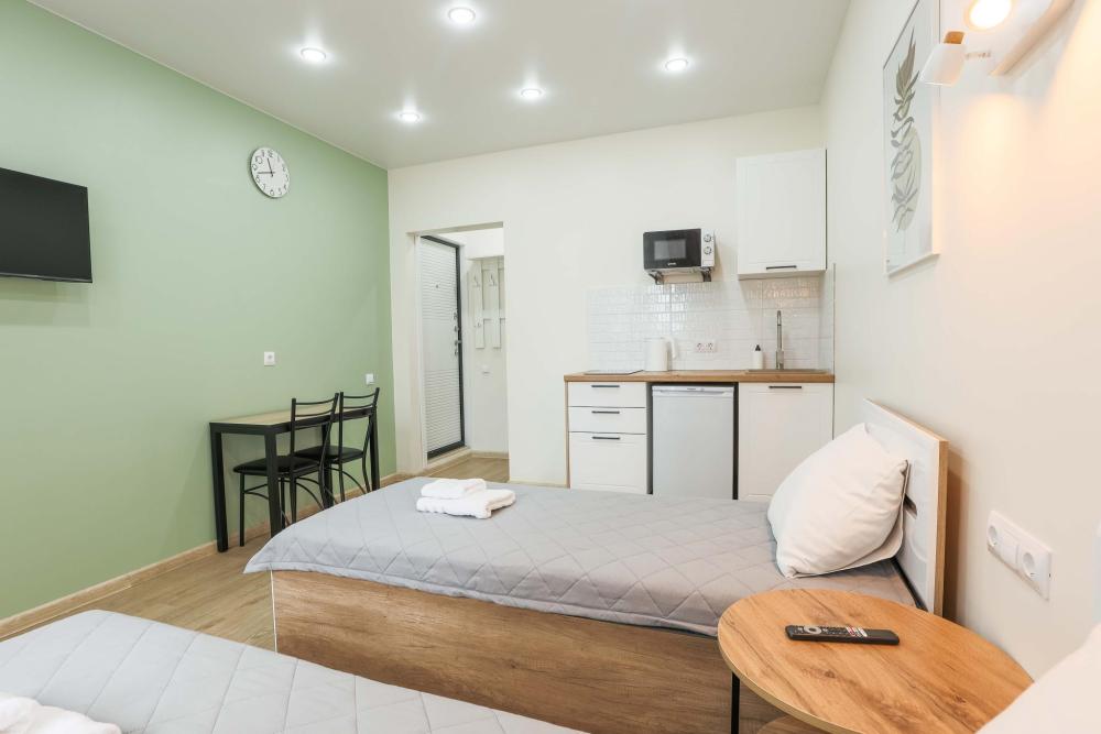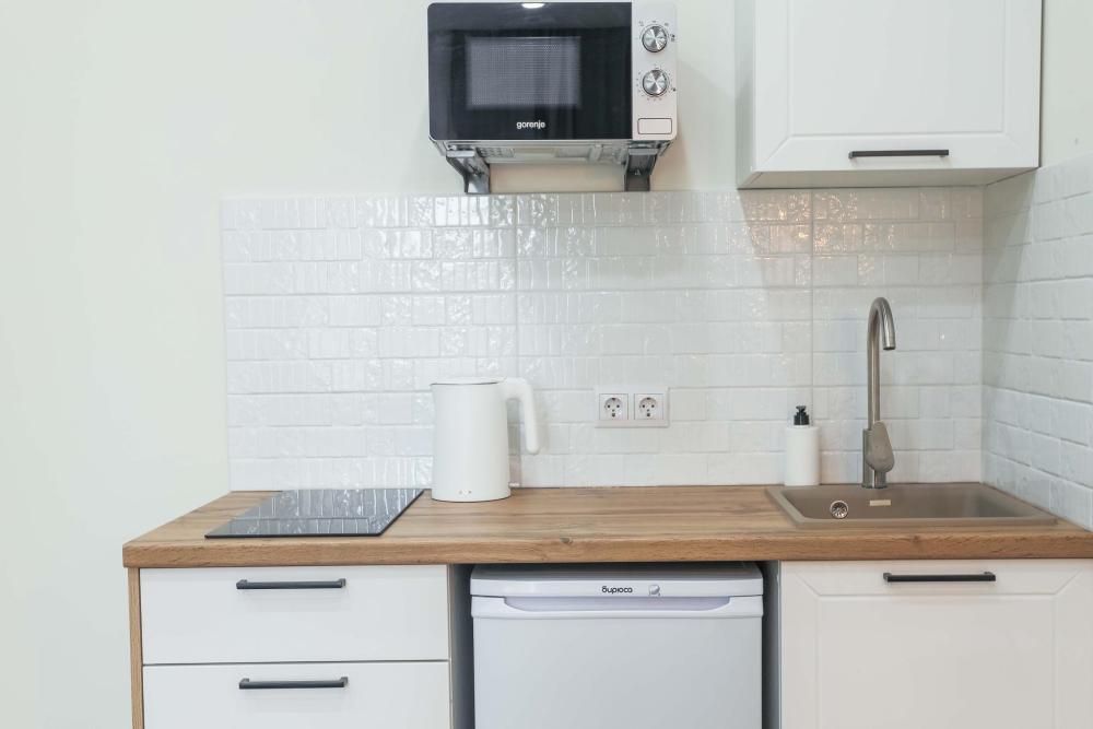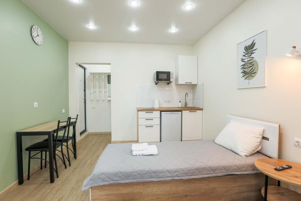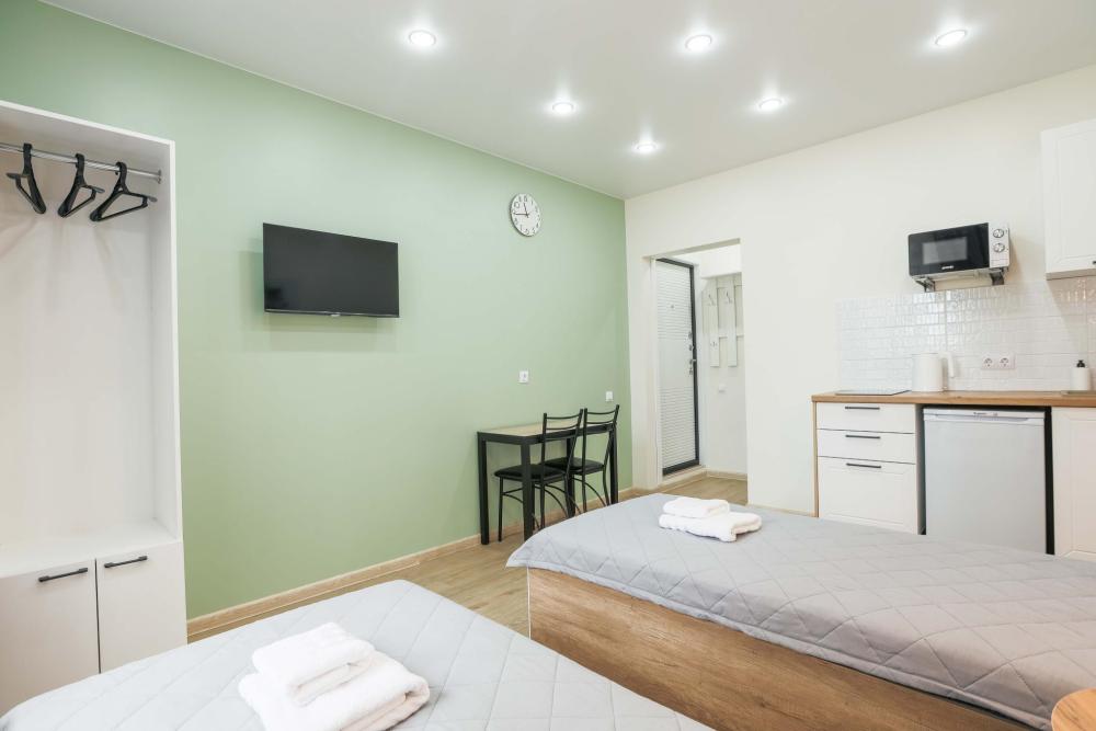 В апартаментах имеется всё необходимое для комфортного проживания. Полноценная кухня с плитой, холодильником, чайником, микроволновой печью, посудой и столовыми приборами. Предоставляется постельное белье и комплект полотенец для каждого гостя. Wi-Fi и кабельное телевидение, стиральная машина, все для стирки и глажки, фен, а также гигиенические принадлежности, включая зубные наборы, гель для душа и шампунь.