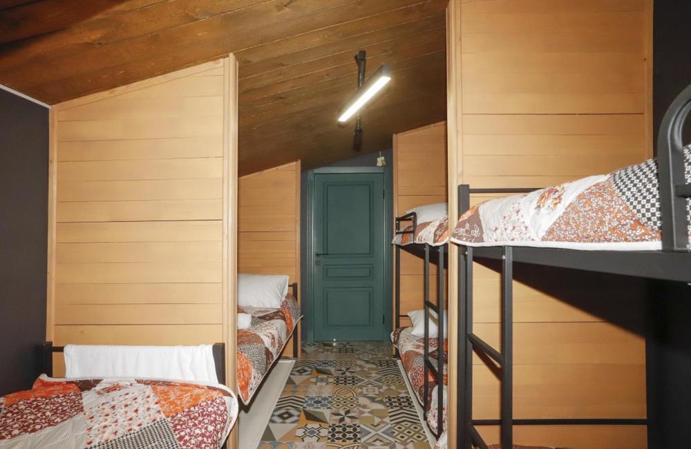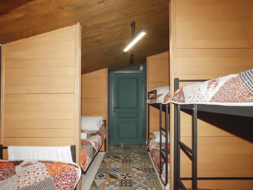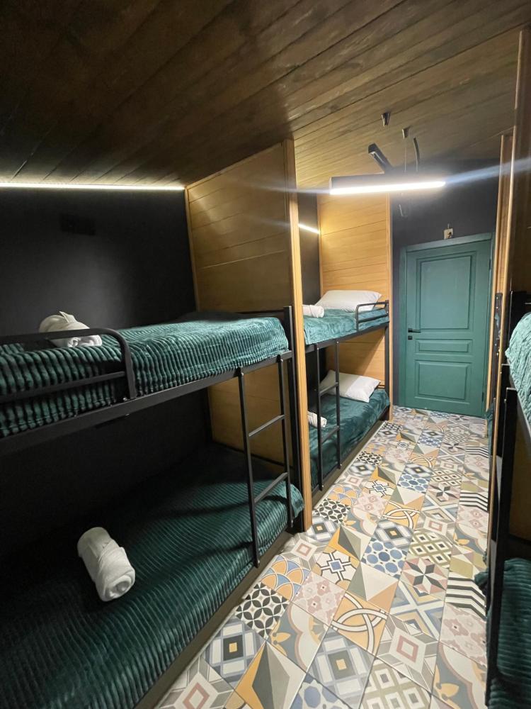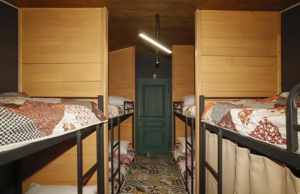 Кровать в восьмиместном общем женском номере площадью 13 кв.м. Койко-место представляет собой односпальную кровать, предназначенную для одного человека. В комплект входят чистое постельное белье, полотенце, подушка и одеяло, одноразовая зубная щетка. При каждой кровати имеется розетка и светильник. Также в номере есть кондиционер и Wi-fi. Общая душевая и туалет на этаже, три душа, два унитаза, один писсуар и стиральная машинка. Приятным бонусом от хостела профессиональный шампунь и гель для душа марки Capo Lavoro.