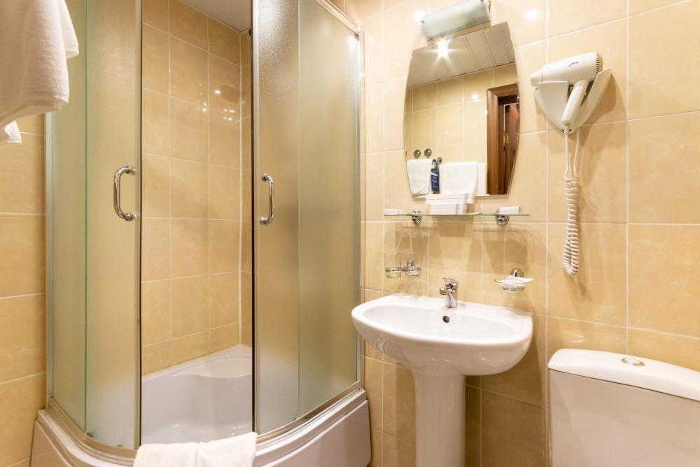 Комплектация номера: Одноместная кровать (90/200см); Натуральное постельное белье из 100%-го хлопка; Гипоаллергенная подушка; Кондиционер; Вместительный гардероб; Удобная рабочая зона; ЖК телевизор; Телефон, Электронный замок; Бесплатный Интернет; Мини-холодильник; Электрический чайник; Чайная пара, Щетка для одежды, щетка/губка для обуви Оснащение санузла: Душевая кабина; Фен; 3 махровых полотенца; Косметика для душа (мыло, шампунь, гель для душа). По запросу (бесплатно): свежая пресса; тапочки из спанбонда; беруши; зубная щетка/паста; бритвенный прибор; швейный набор.