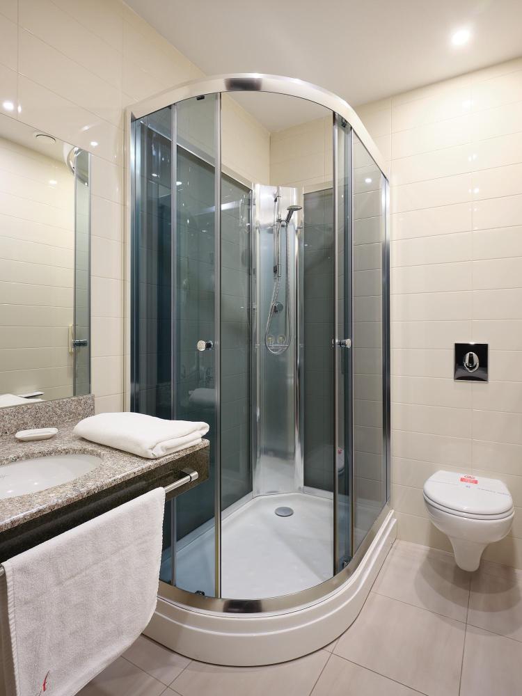 Номер предназначенный для проживания 1 человека. В номере: односпальная кровать, телевизор с плоским экраном, стационарный телефон, сейф, кондиционер, отопление, чайная станция, прикроватные тумбы, фен, халат, тапочки, косметические принадлежности. Санузел оборудован душевой кабиной.