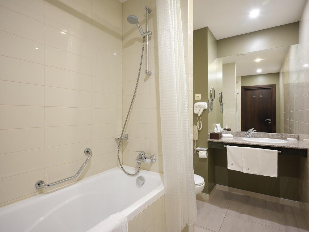 Номер, оборудованный специальным образом и предназначенный для размещения людей с ограниченными возможностями передвижения. В номере: две односпальные кровати (или одна двуспальная кровать), телевизор с плоским экраном, стационарный телефон, сейф, кондиционер, отопление, чайная станция, прикроватные тумбы, ванная комната с поручнями и сиденьем, фен, халат, тапочки, косметические принадлежности.