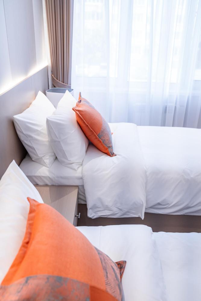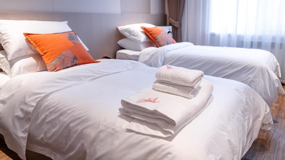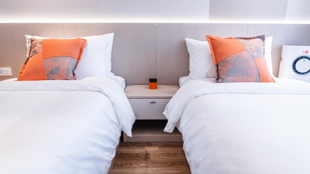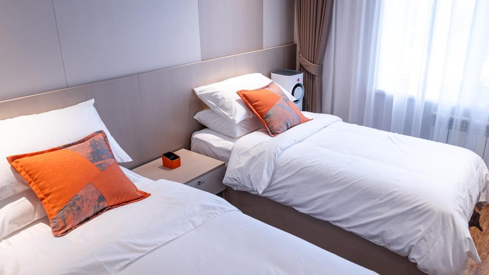 Светлый уютный двухместный номер для комфортного проживания. Две односпальные широкие кровати. Собственный санузел.