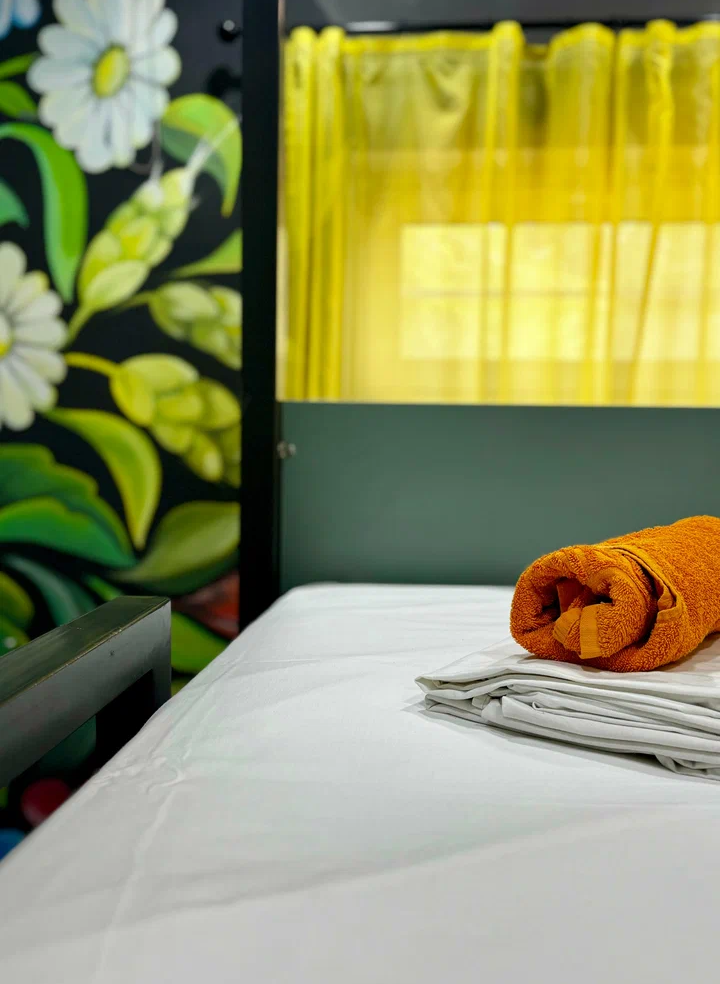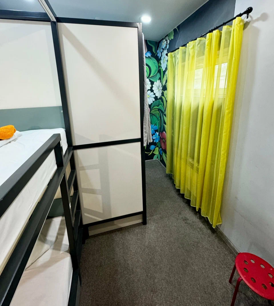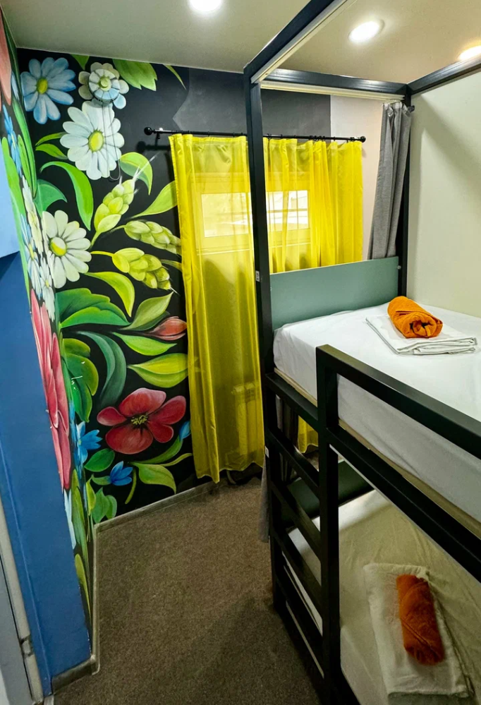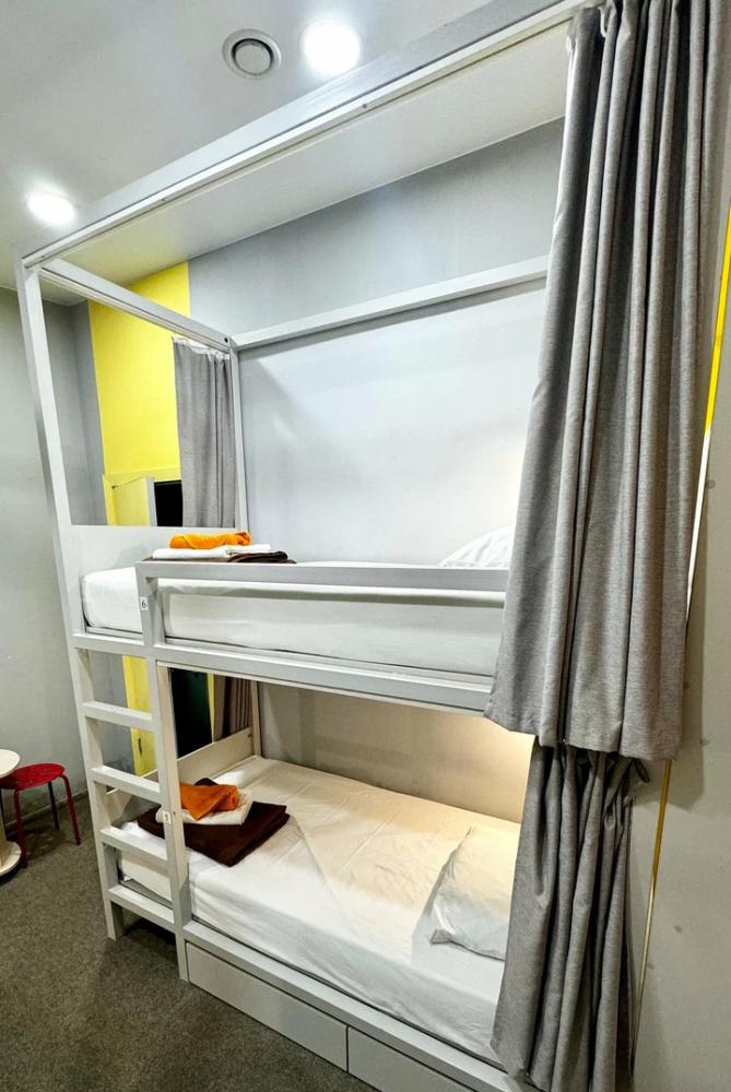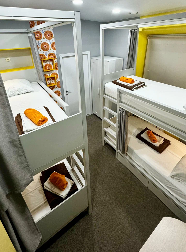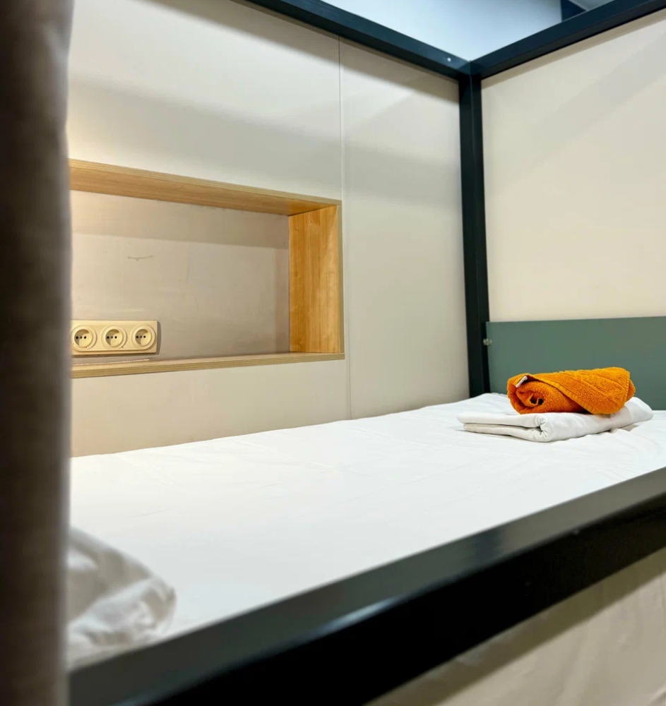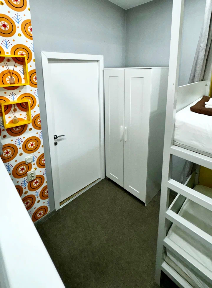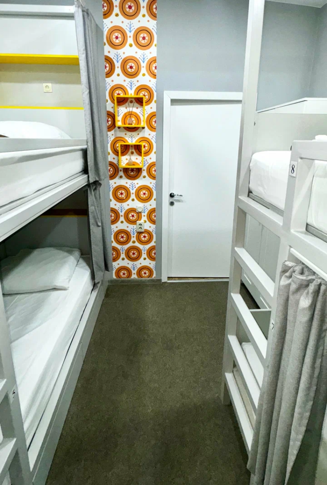 Койко-место в четырехместном, светлом и просторном женском номере с двумя двухъярусными кроватями. Для каждого спального места предусмотрена розетка, полочка для личных вещей, настенная лампа, штора, полотенце, постельное белье. В самом номере расположен туалет и умывальник.