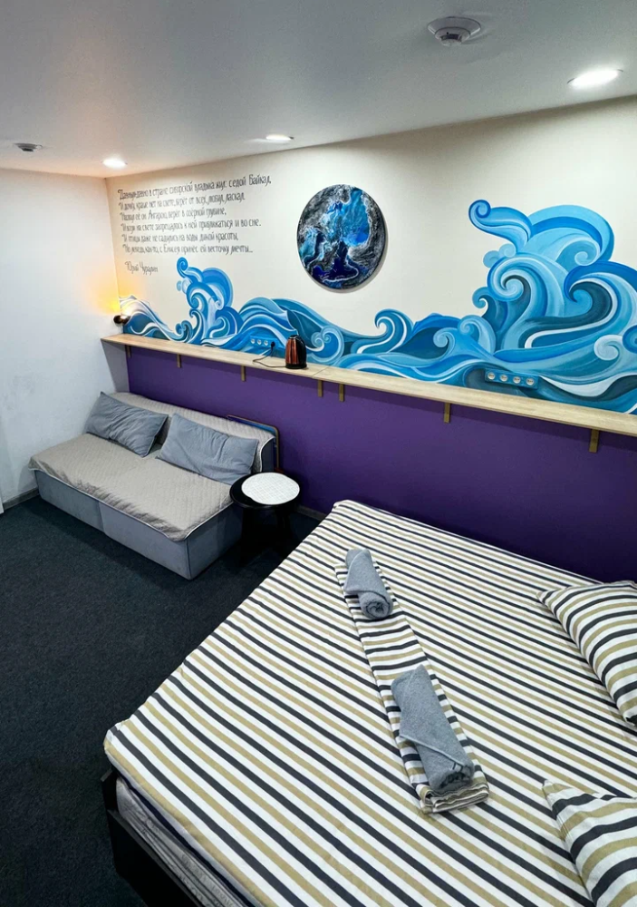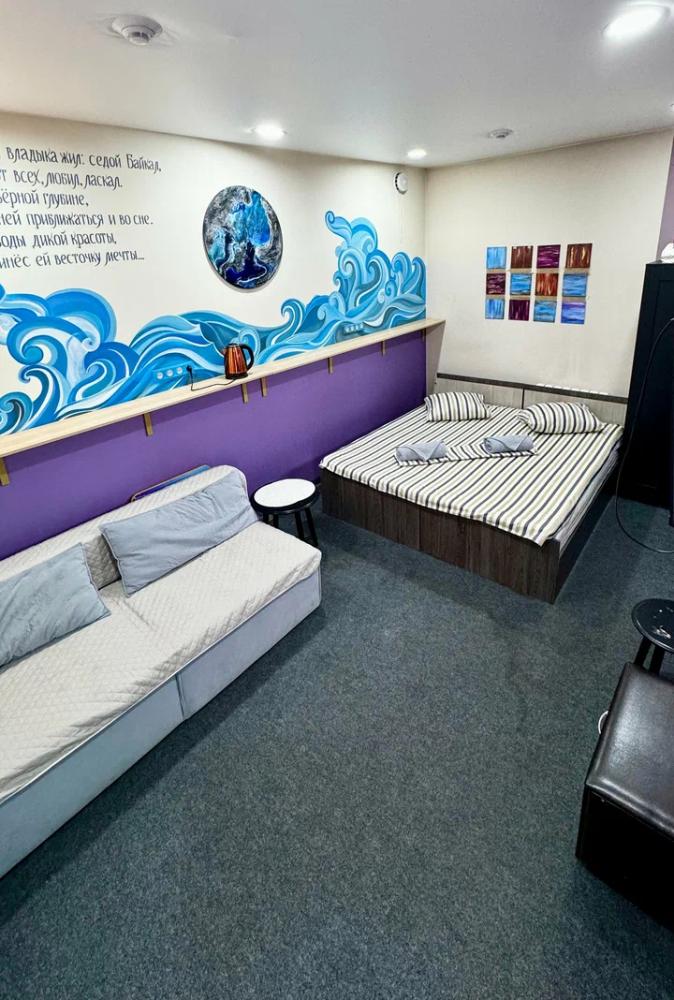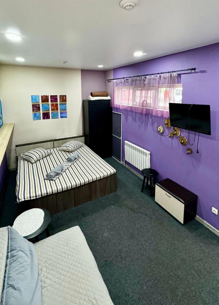 Семейный номер с двухспальной кроватью и диваном для размещения до 4-х гостей. В номере имеется душевая комната, туалет и умывальник, телевизор, Wi-Fi, чайник, постельное белье, набор полотенец. Номер имеет отдельный вход/выход.