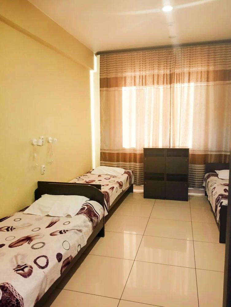 В номере: три односпальные кровати, телевизор. Удобства в номере.