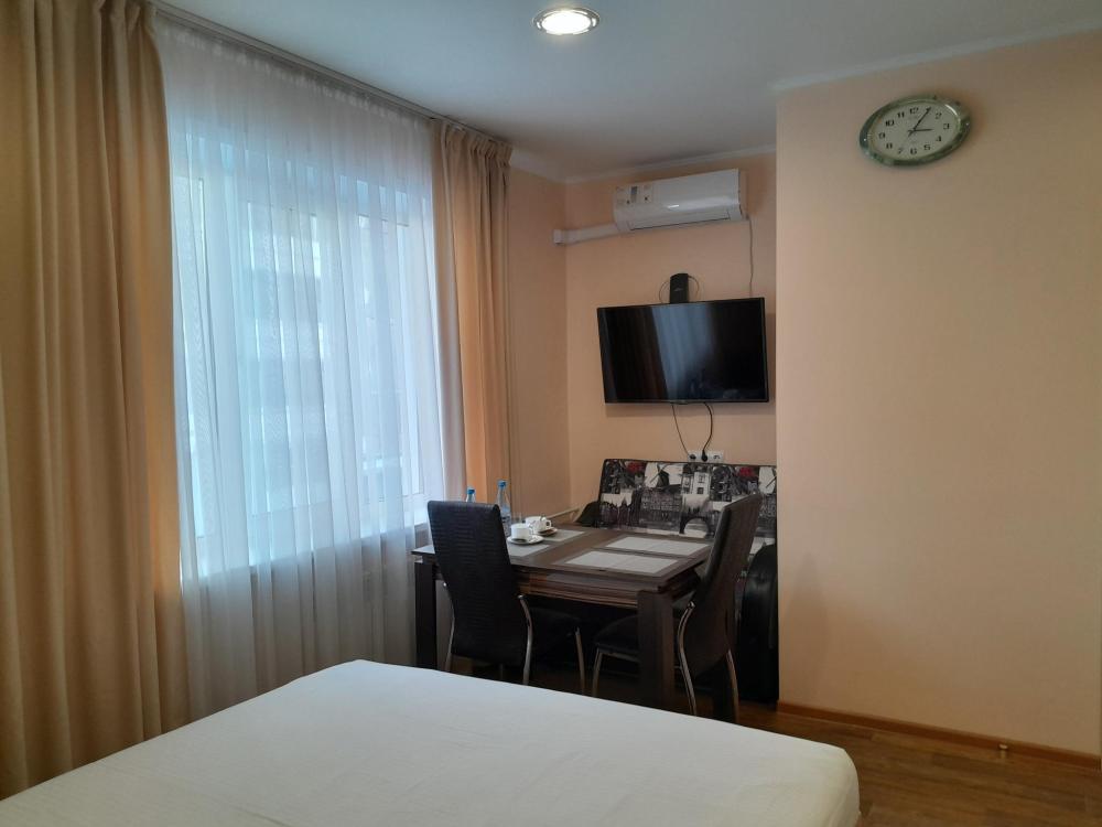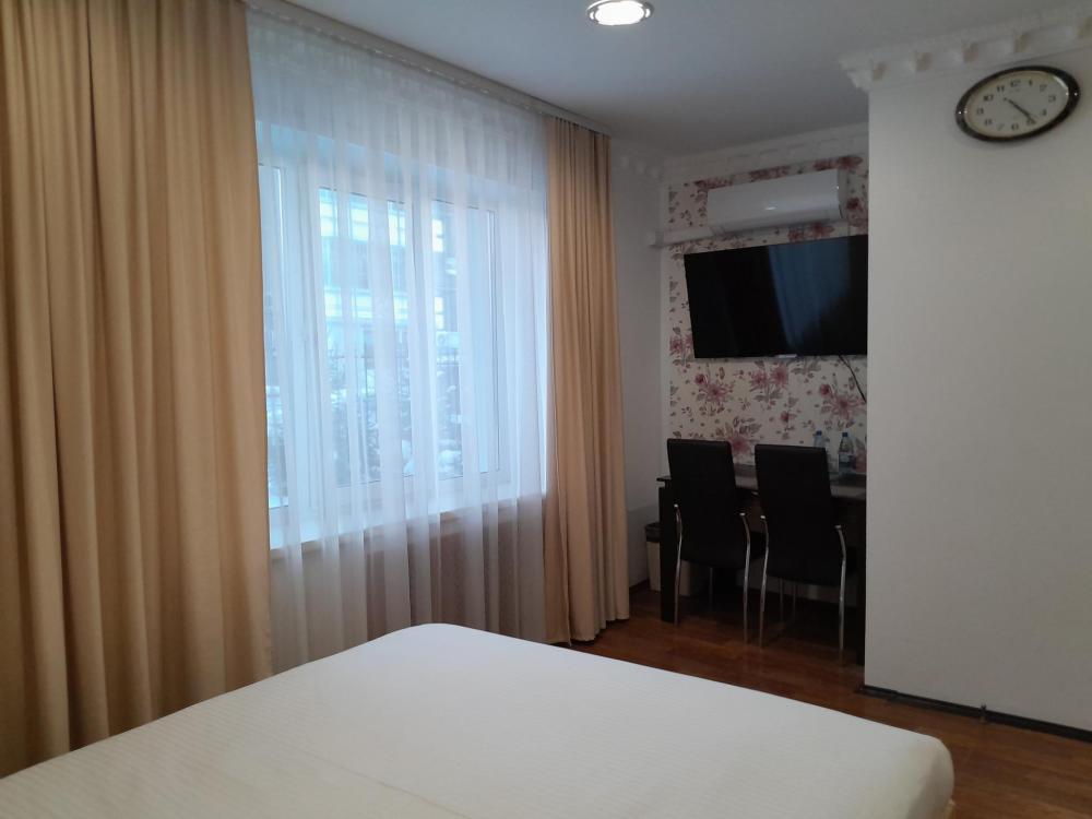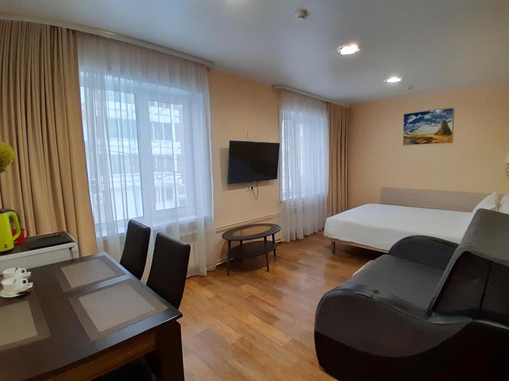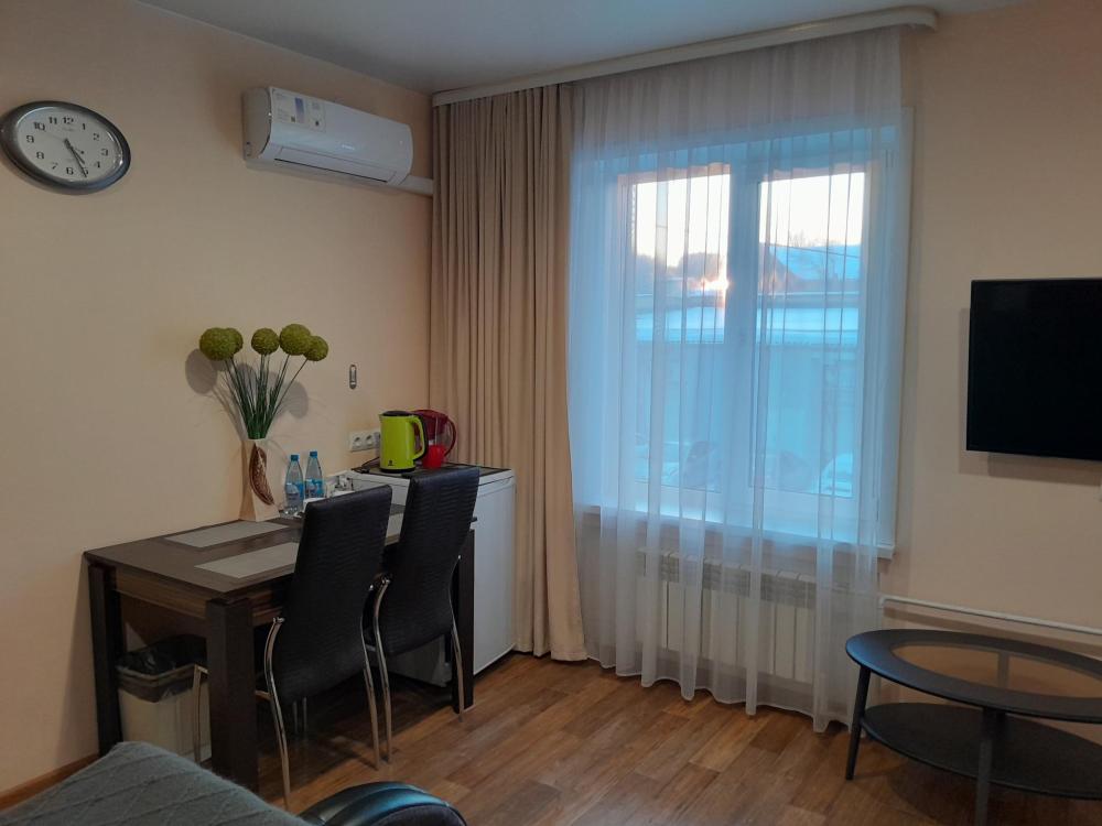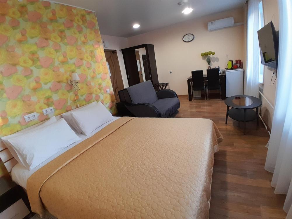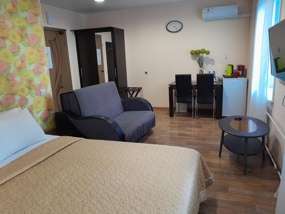 Номер 1-й категории – тёплый и уютный 22 кв.м. Однокомнатный номер с удобной кроватью размером 160*200, ортопедический матрас, кресло кровать 120*200 (возможно использование как дополнительное спальное место), ванная комната с душем, фен, рабочее место(стол), звуконепроницаемые окна, бесплатный скоростной Wi-Fi, телевизор с плоским экраном, кондиционер, чайник, холодильник, платяной шкаф/вешалка с багажной полкой, набор банных принадлежностей. В стоимость проживания включено. Проводится ежедневная уборка номера со сменой полотенец.