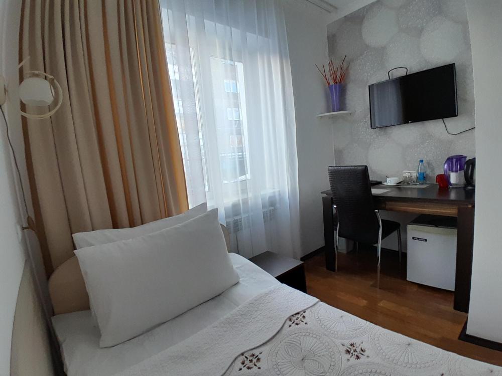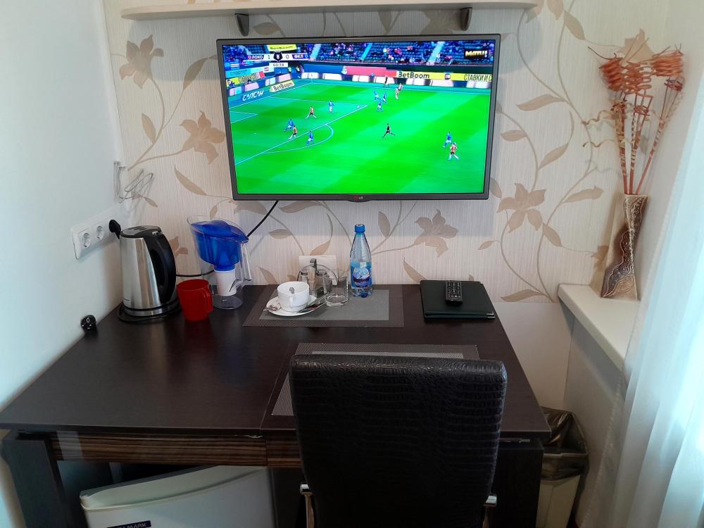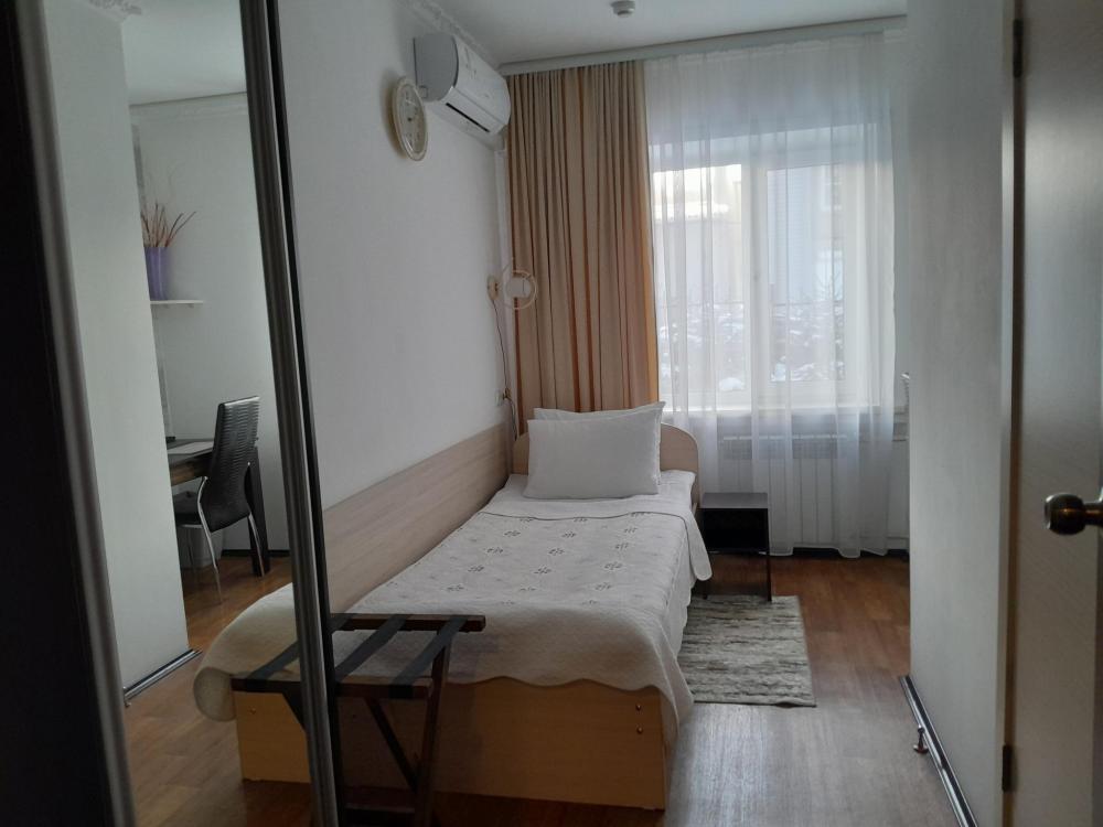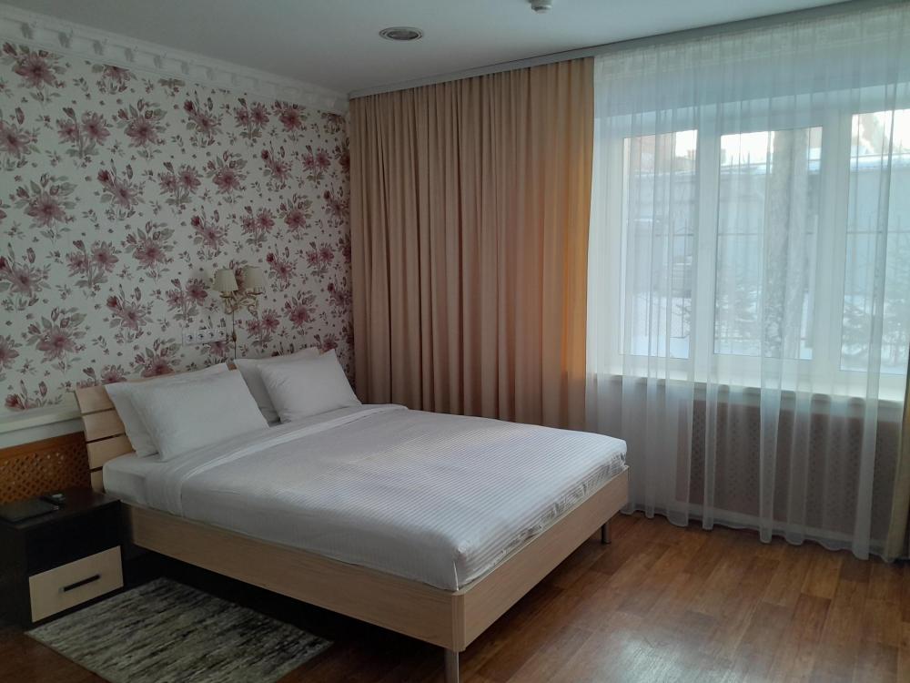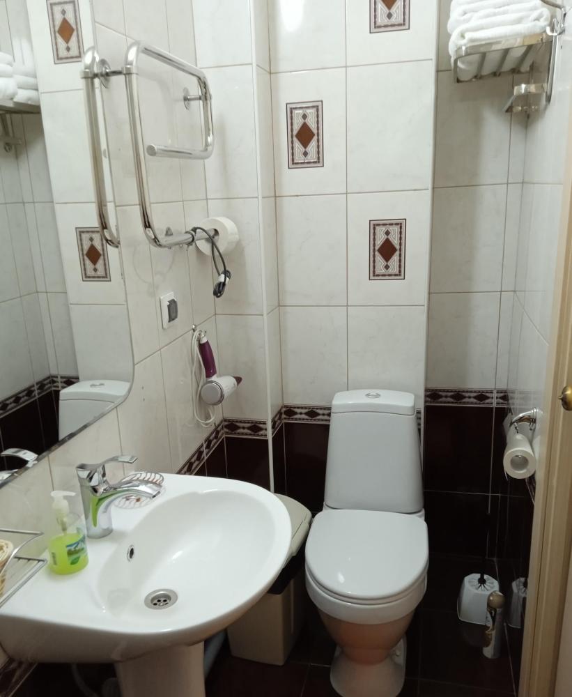 Номер 1-й категории – "Стандартный одноместный с полутораспальной кроватью" тёплый и уютный. Однокомнатный номер с удобной кроватью размером 130*200, прикроватная тумба, ванная комната с душем, фен, рабочее место(стол), звуконепроницаемые окна, бесплатный скоростной Wi-Fi, телевизор с плоским экраном, кондиционер, чайник, холодильник, платяной шкаф/вешалка с багажной полкой, набор банных принадлежностей. В стоимость проживания включено.
