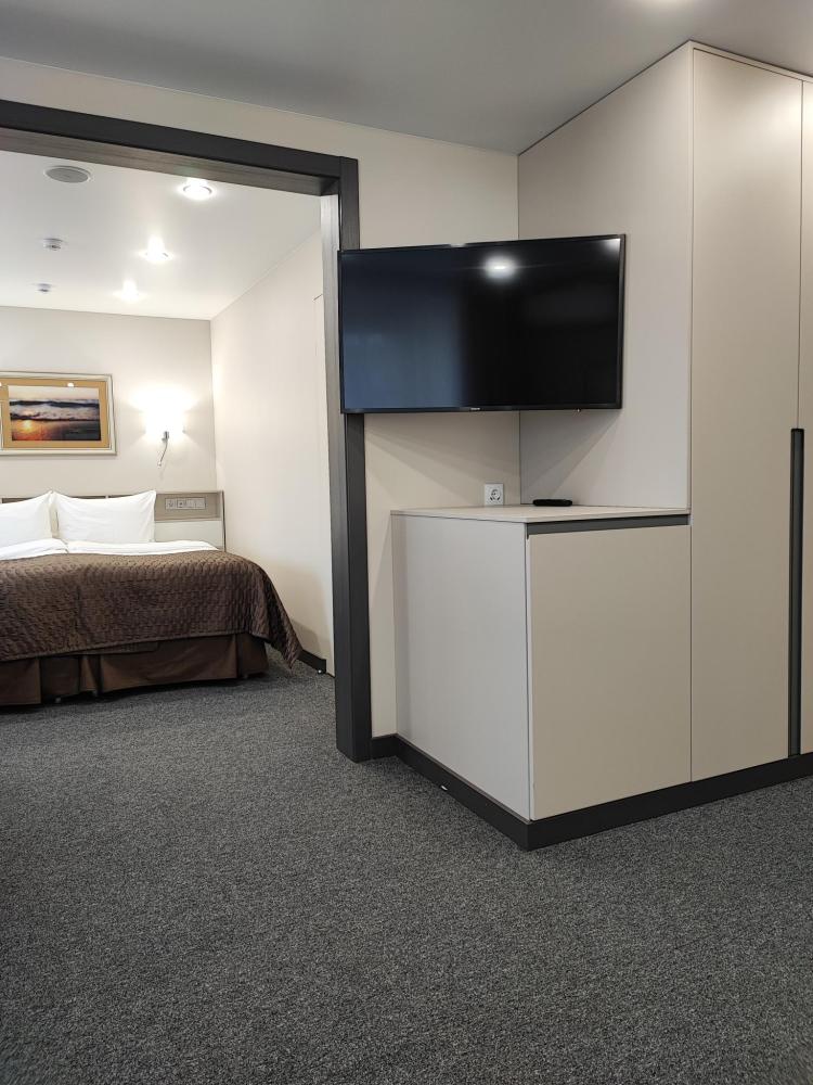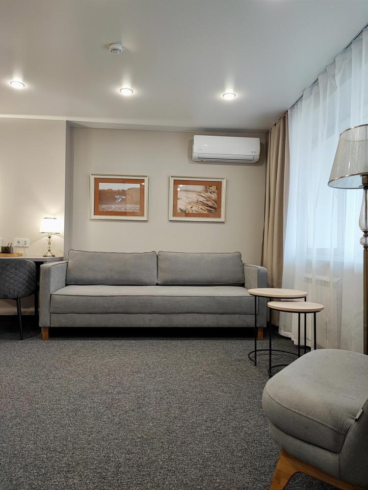 Комфортабельный двухкомнатный номер с элегантно декорированной гостиной и спальней. Возможно одноместное и двухместное размещение. В номере: бесплатный Wi-Fi, кабельное ТВ; ванная комната, фен, полотенца; холодильник, посуда;