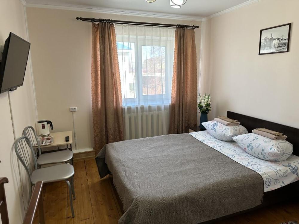 Двухместный номер комфорт с двухспальной кроватью общей площадью 14 кв.м. В номере: собственный санузел, телевизор, чайник, набор для приготовления чая, фен, Wi-fi.