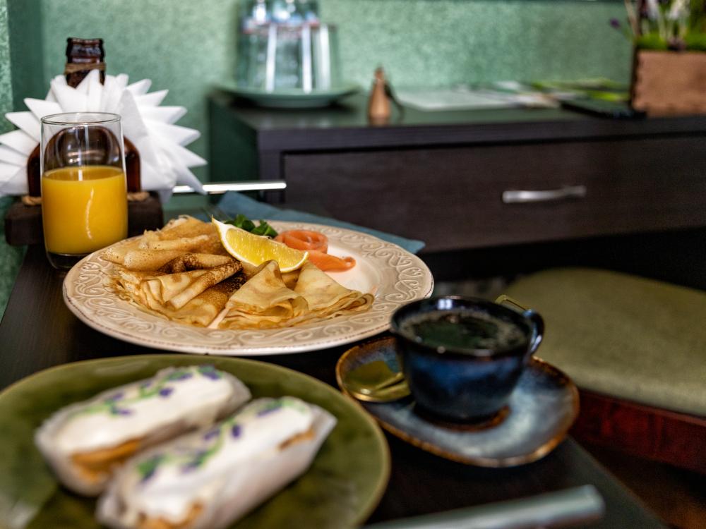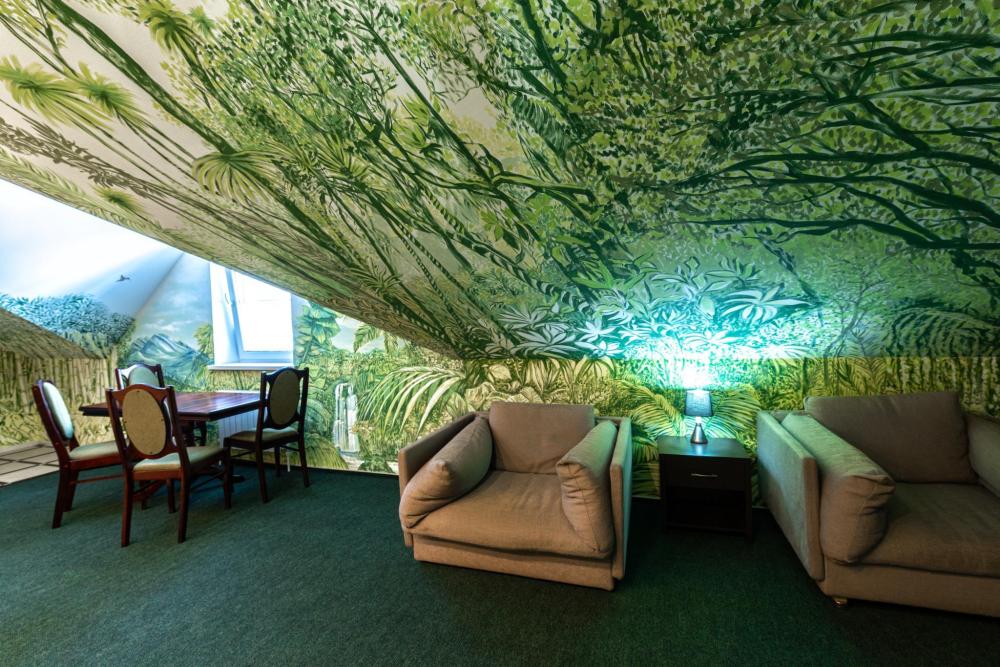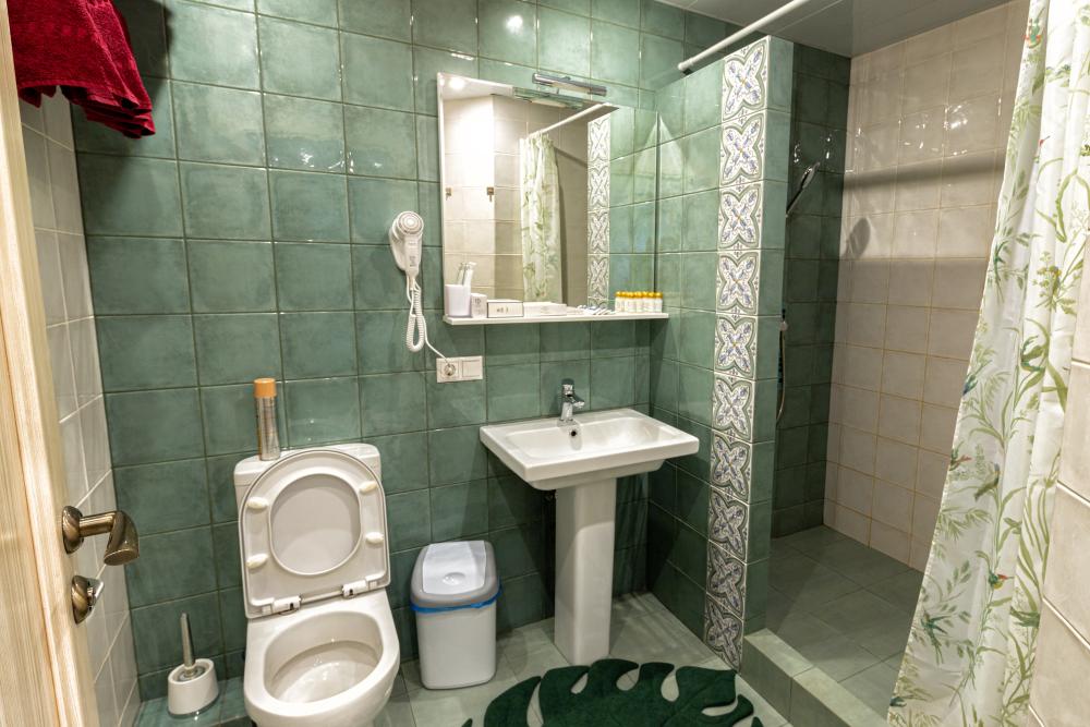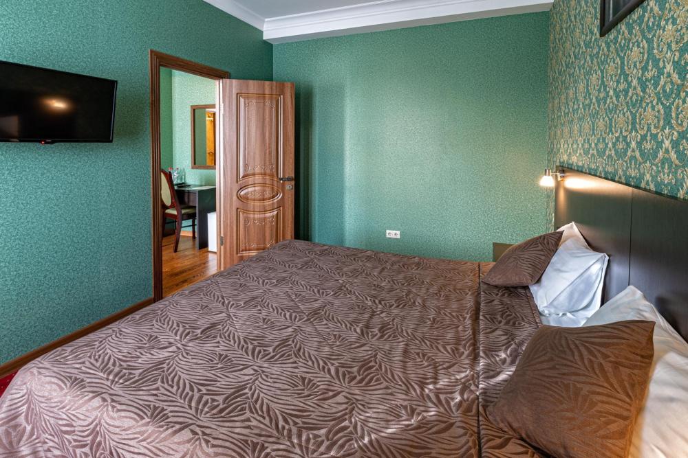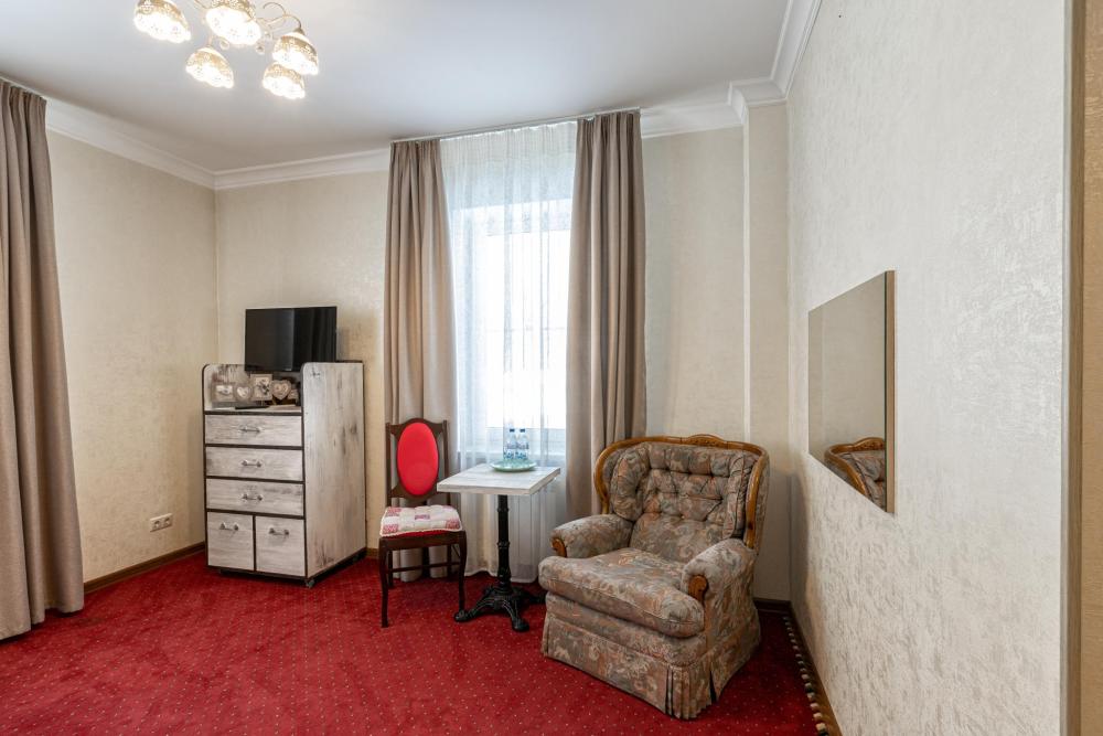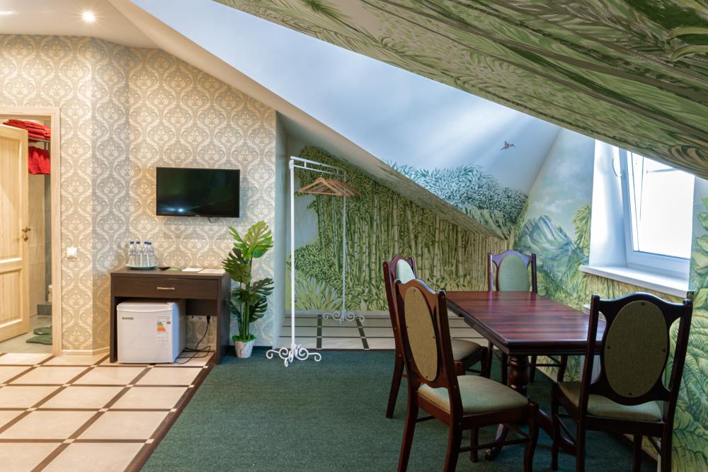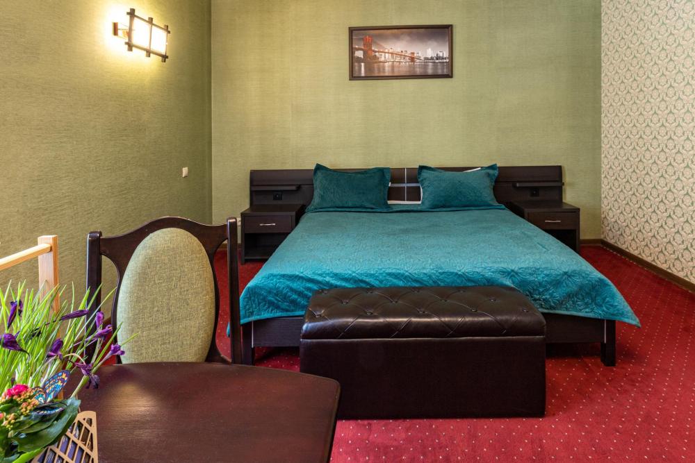 Двухкомнатный номер полулюкс общей площадью 38 кв.м. для размещения до 4-х гостей. Оснащение номера: двухспальная кровать, раскладной диван, прикроватные тумбочки, телевизор, мини-холодильник, шкаф, ванная комната с душем, санузел, косметические средства, набор полотенец.