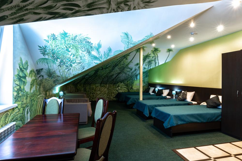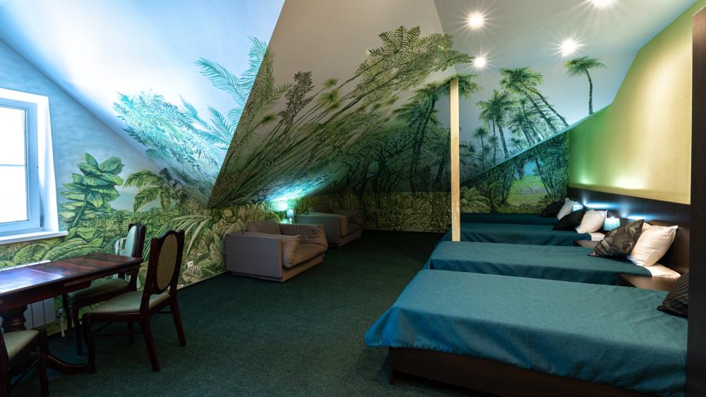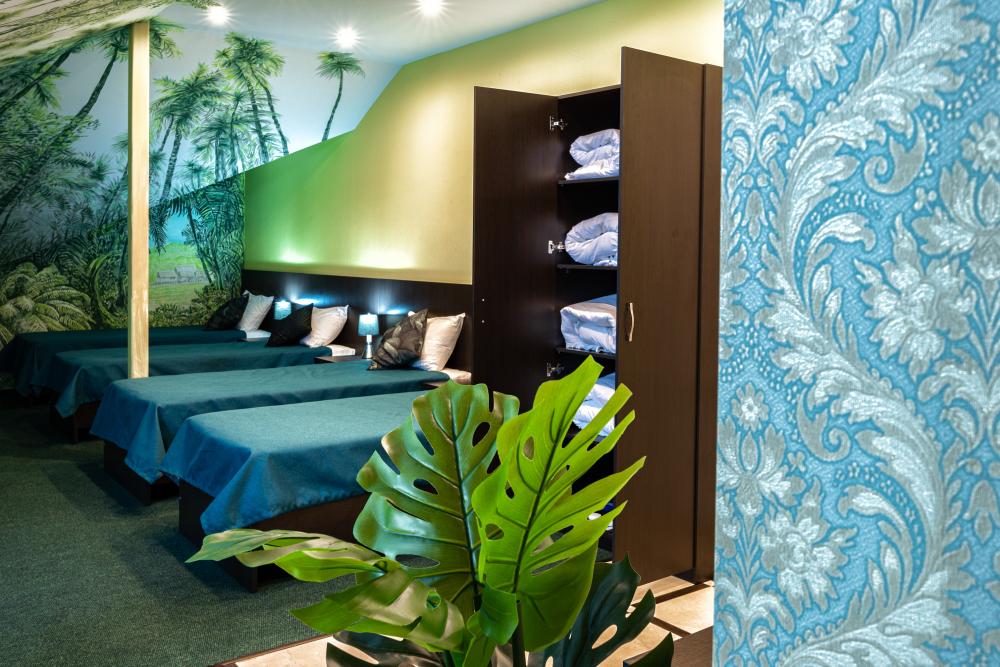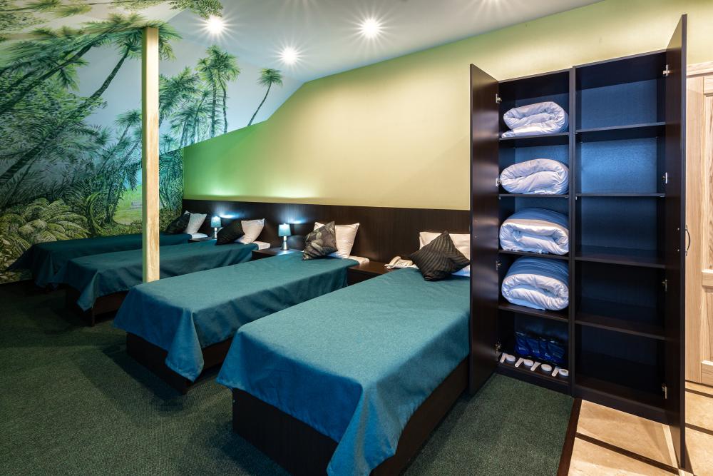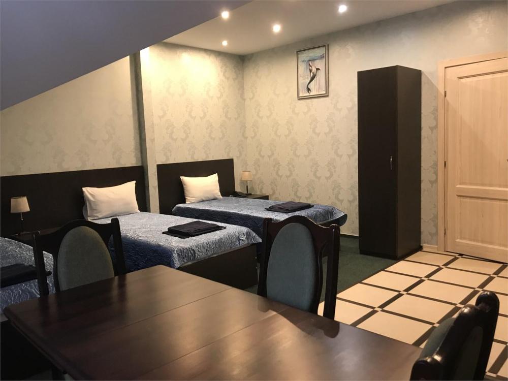 Номер стандарт с четырьмя односпальными кроватями общей площадью 35 кв.м. для размещения до 4-х гостей. Оснащение номера: четыре односпальные кровати, прикроватные тумбочки, телевизор, шкаф, ванная комната с душевой кабиной, санузел, косметические средства, набор полотенец.