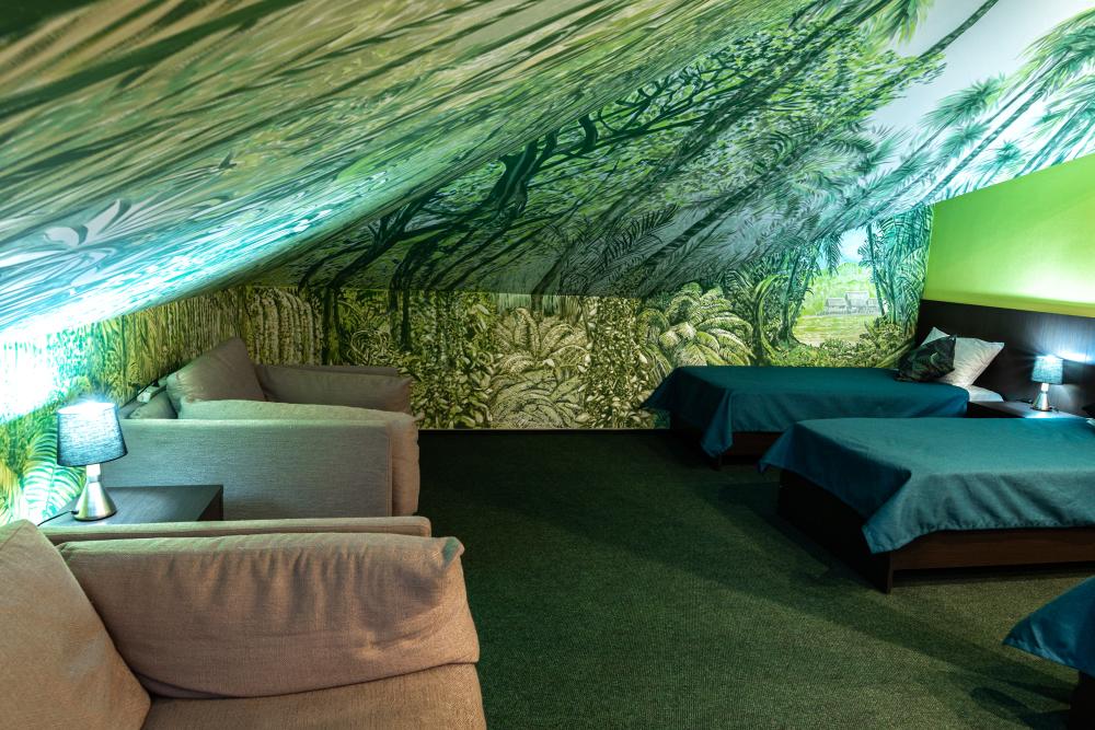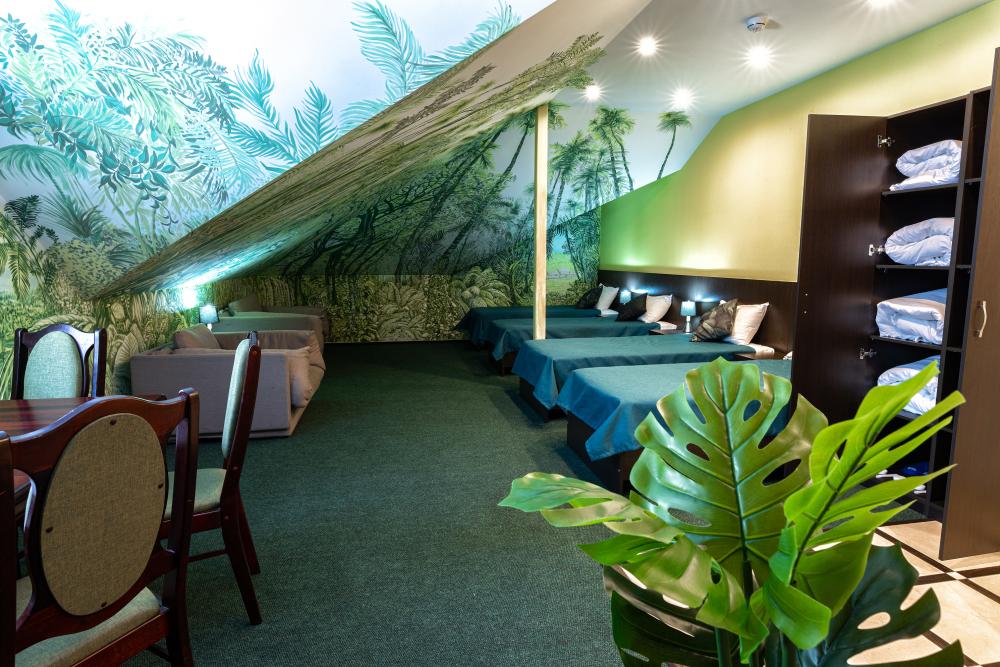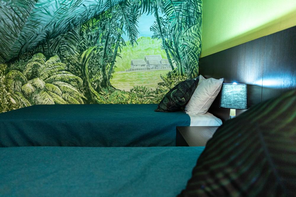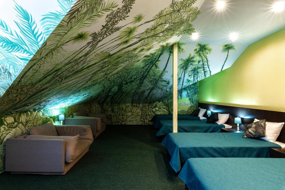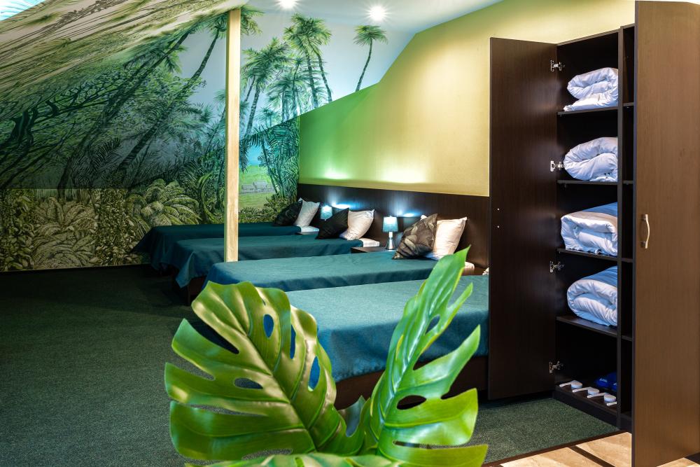 Номер стандарт с четырьмя односпальными кроватями общей площадью 35 кв.м. для размещения до 4-х гостей. Оснащение номера: четыре односпальные кровати, прикроватные тумбочки, телевизор, шкаф, ванная комната с душевой кабиной, санузел, косметические средства, набор полотенец.