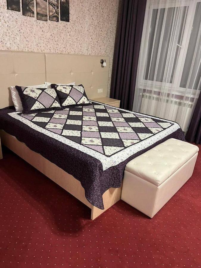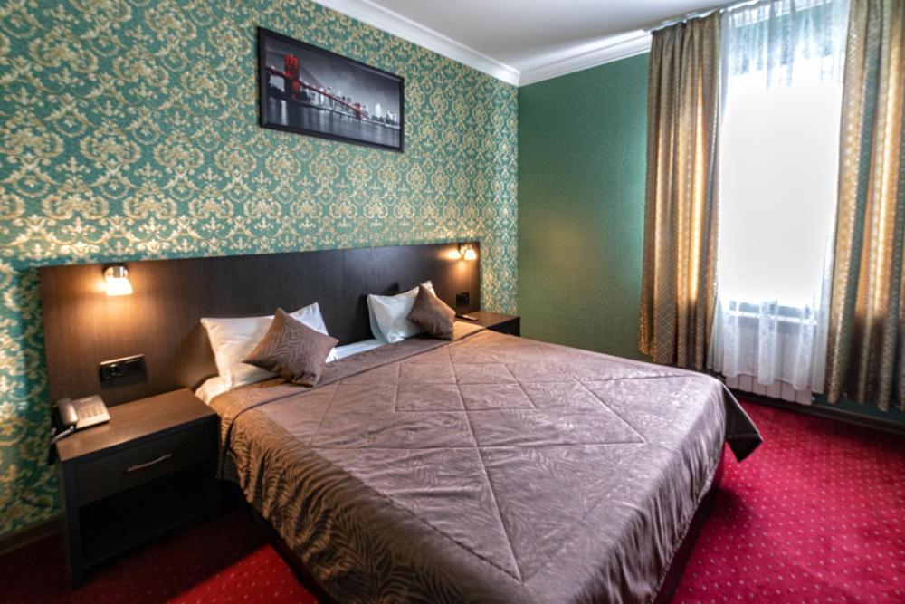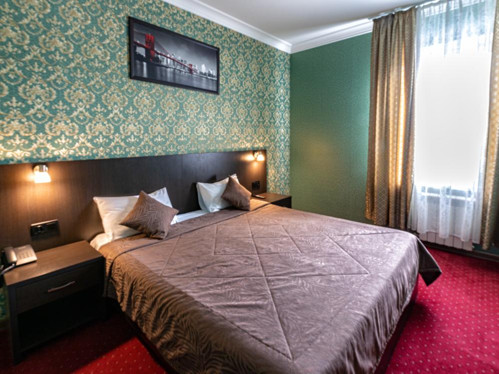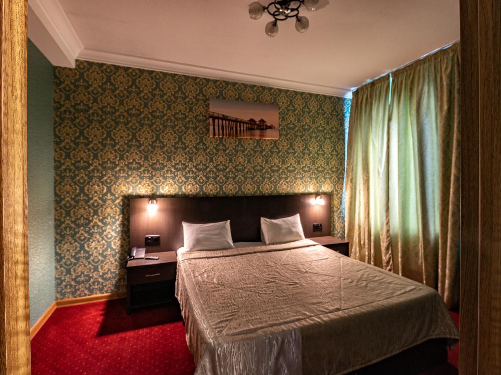 Номер стандарт с двухспальной кроватью общей площадью 35 кв.м. для размещения до 2-х гостей. Оснащение номера: двухспальная кровать, прикроватные тумбочки, телевизор, шкаф, ванная комната с душевой кабиной, санузел, косметические средства, набор полотенец.