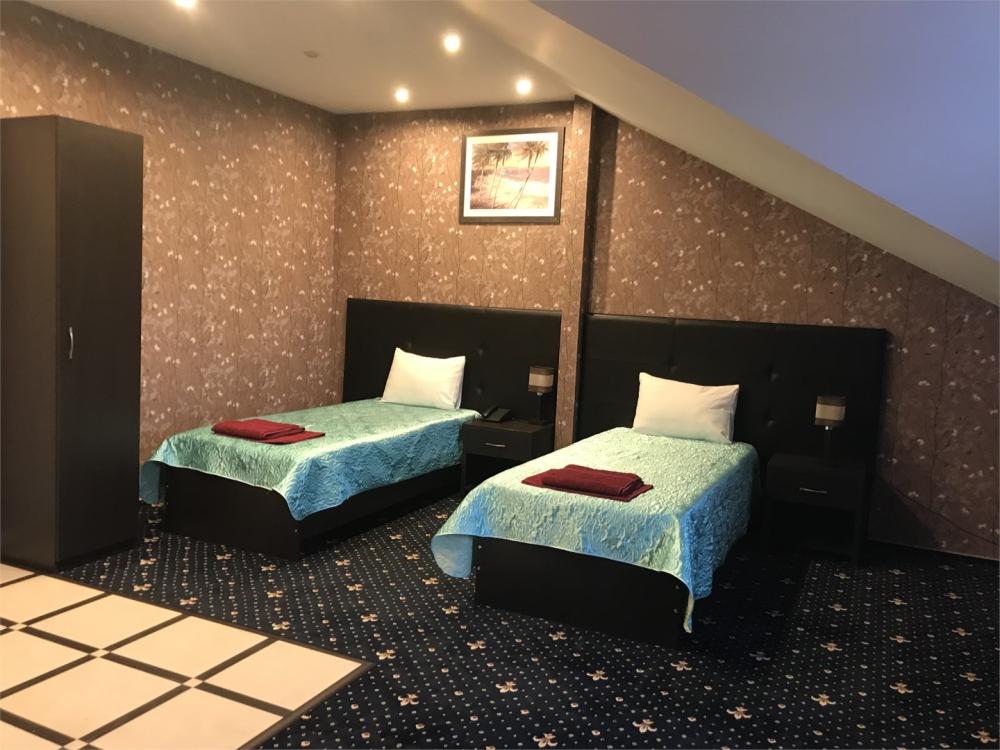 Номер стандарт с двумя односпальными кроватями общей площадью 30 кв.м. для размещения до 2-х гостей. Оснащение номера: две односпальные кровати, прикроватные тумбочки, телевизор, шкаф, ванная комната с душевой кабиной, санузел, косметические средства, набор полотенец.