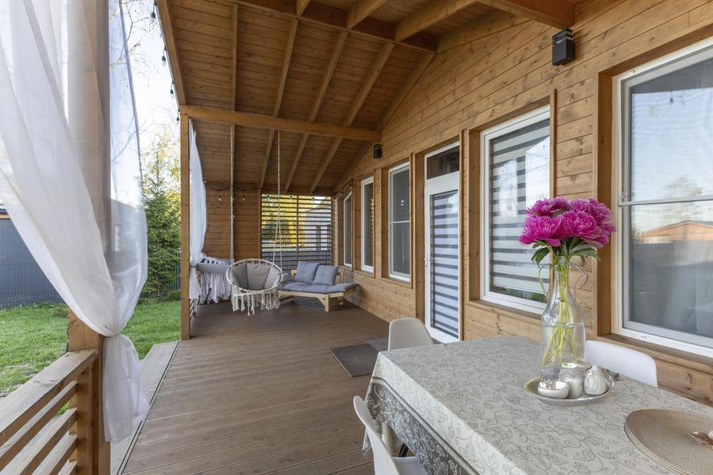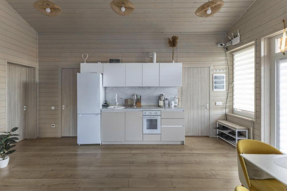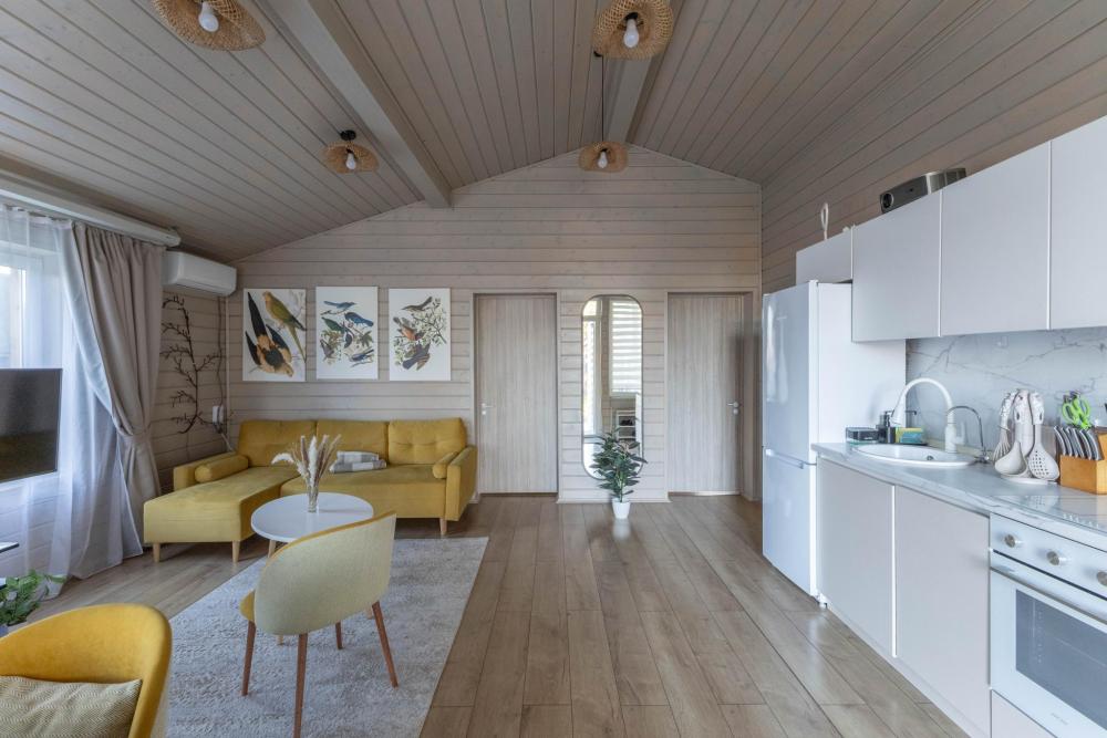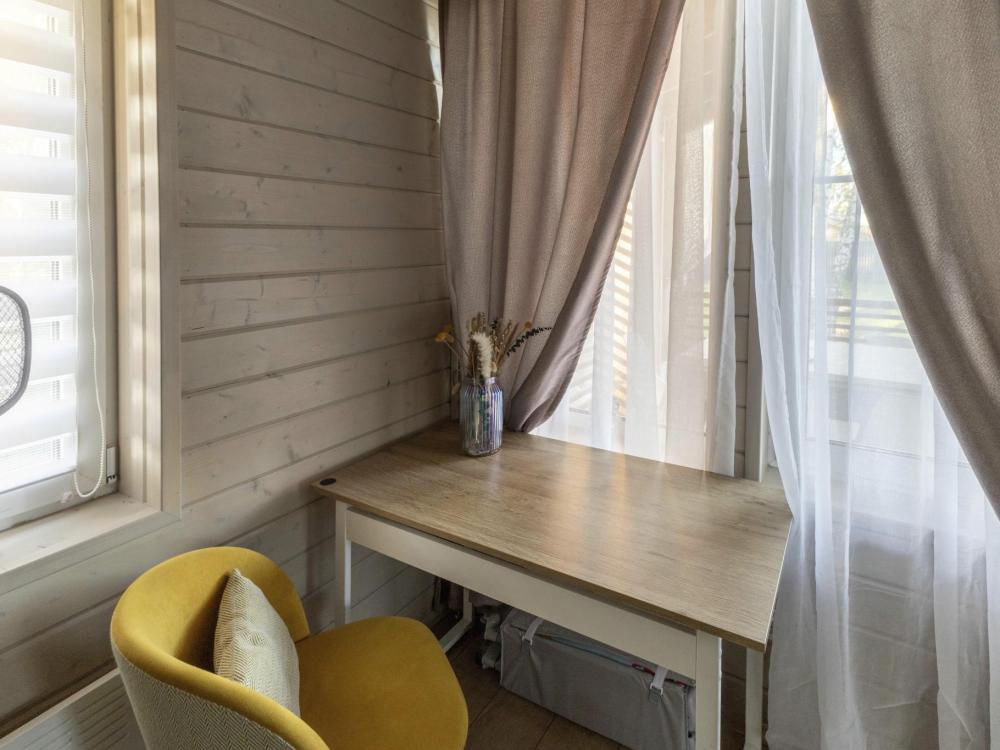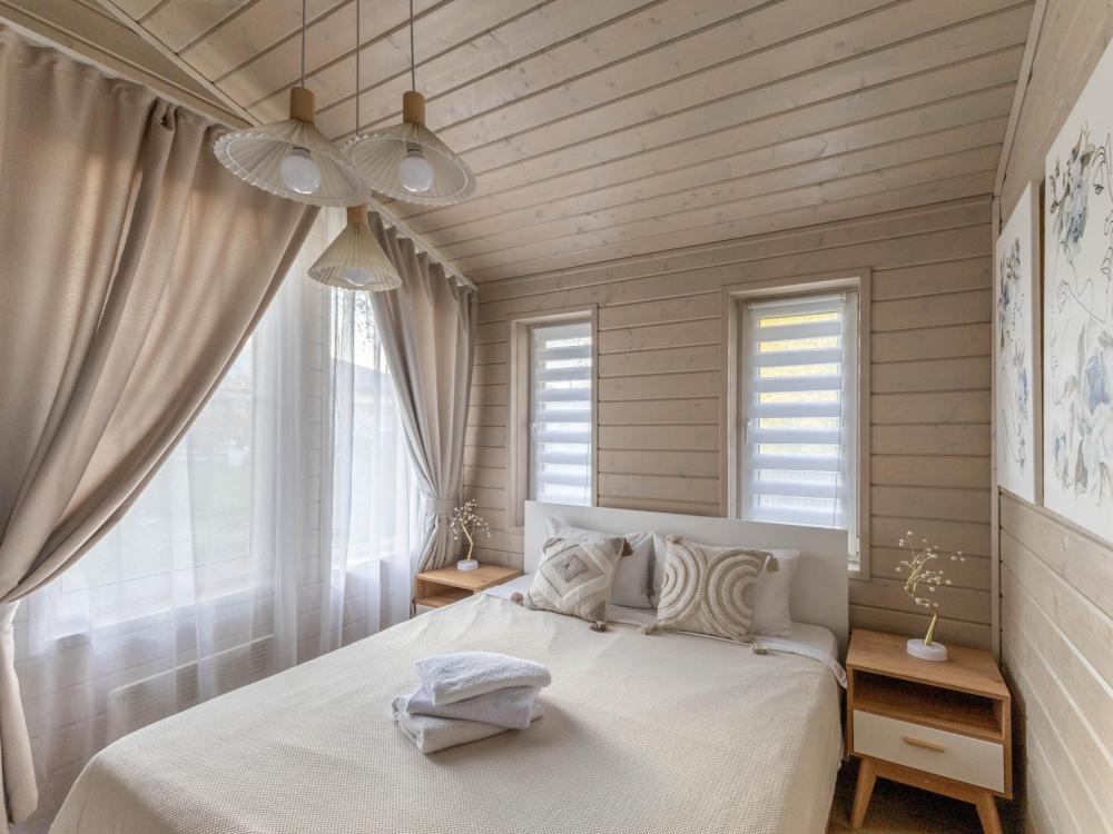 Дизайнерский домик общей площадью 88 кв.м. c огороженной территорией для размещения до 8-ми гостей. Для комфортного проживания гостей дом оснащен всем необходимым: большая гостиная, 3 спальные комнаты, кухня-гостиная с обеденной зоной и удобным диваном, вся посуда для приготовления и приема пищи (ножи, столовые приборы на 8 человек, кастрюли, сковородки, тарелки, бокалы), караоке и домашний кинотеатр для веселой компании, детская кроватка - манеж, кофе-машина, холодильник, микроволновая печь, обогреватель, чайник, плита, духовка, стиральная машина, кондиционер, теплые полы, WI-FI, ванная комната, стиральная машина. Для гостей есть просторная терраса, на территории мангальная зона, чтобы приготовить шашлык. Также есть парковка на 3-4 автомобиля.