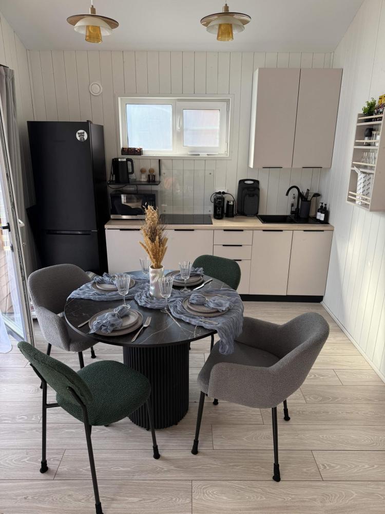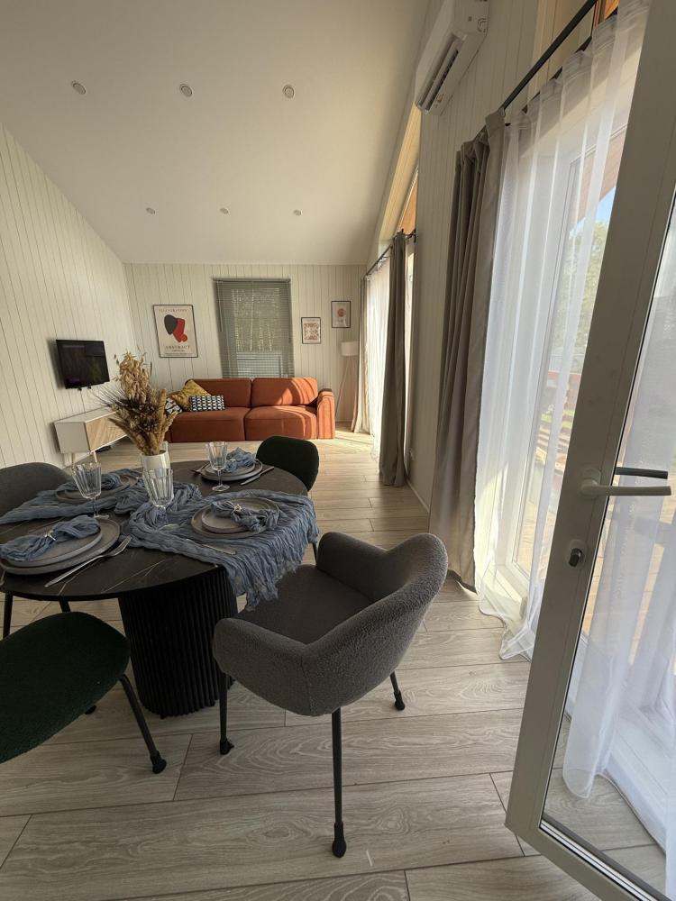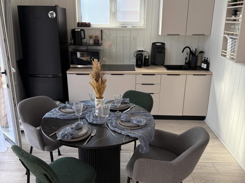 Участок (8 соток) с костровой зоной с удобными креслами и лавочками с подушками, мангальная зона (шампура в наличии), парковка на 2 машины с откатными воротами. Вместимость дома до 6 взрослых: спальня с двуспальной кроватью, детская комната с двумя односпальными кроватями, в гостиной имеется раскладной диван. Для самых маленьких гостей: детская кроватка (с бельем, подушкой и одеялом), стульчик для кормления, детское сиденье для унитаза, подставка-ступенька под раковиной, тв-проектор в детской с подключенными стриминговыми сервисами. Современные удобства: теплый водяной пол по всему дому с возможностью управления температурой в доме через терморегулятор, кондиционер, Бесплатный Wi-Fi, ТВ, тв-проектор, робот-пылесос, обычный пылесос, стиральная, сушильная и посудомоечная машины. Полностью оборудованная кухня: чайник, кофемашина для капсул Неспрессо (есть переходник под молотый кофе), капучинатор, холодильник, микроволновка с грилем и варочная панель на 4 комфорки. Есть вся необходимая посуда и столовые приборы. Отпариватель для одежды, фен, пылесос, компактный блендер. Дополнительные уличные стол и стулья с подушками и пледами на веранде. Также предоставляется: постельное бельё, полотенца, душевые принадлежности, кофе/чай, настольные игры для семейных вечеров, набор для мангала шампуры /решетка. Дополнительные услуги за дополнительную плату: дрова камерной сушки, уголь для мангала, розжиг, сервировка стола как на фото, шарики, романтический вечер (розы и так далее). Дом находится под охраной, по периметру установлено видеонаблюдение в целях безопасности.