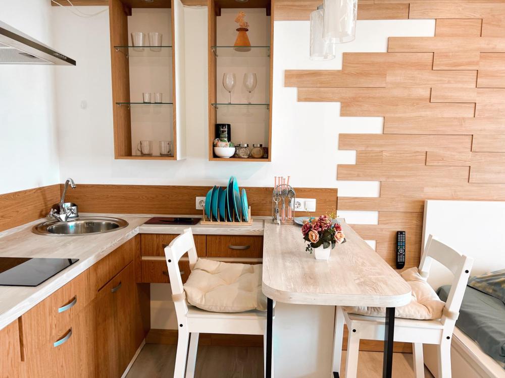 ⭐️ Зона кухни оборудована: стеклокерамическая варочная панель, микроволновая печь, чайник, холодильник, посуда.