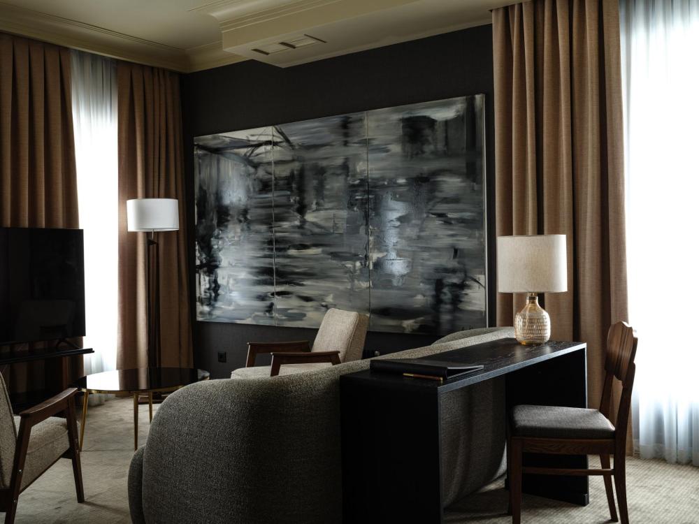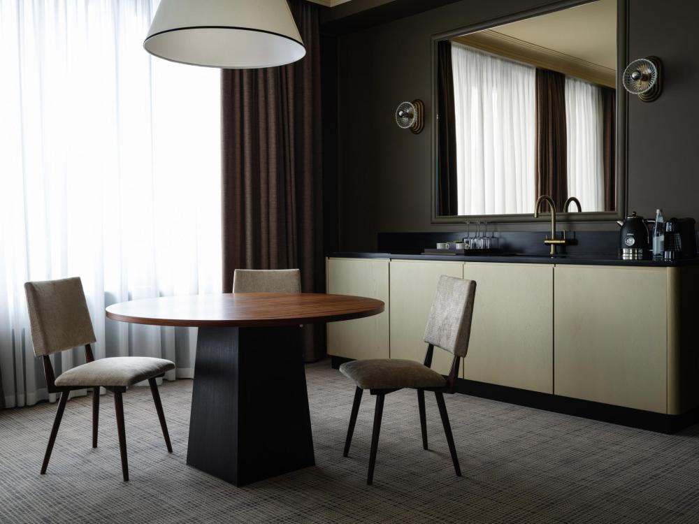 Сюит Вершина роскоши и комфорта для самых взыскательных гостей. Сюит общей площадью 105,5 квадратных метров представляет собой соединение двух смежных номеров – джуниор сюита и апартаментов с полностью оборудованной кухней. В номере есть отдельная деловая зона, представляющая собой функциональный мини-кабинет, где в комфортной обстановке можно сосредоточиться на рабочих задачах. Из окон и с балкона-террасы открываются лучшие в отеле виды на город. Сюит идеально подходит для бизнес-путешествия, отдыха большой семьи или компании.