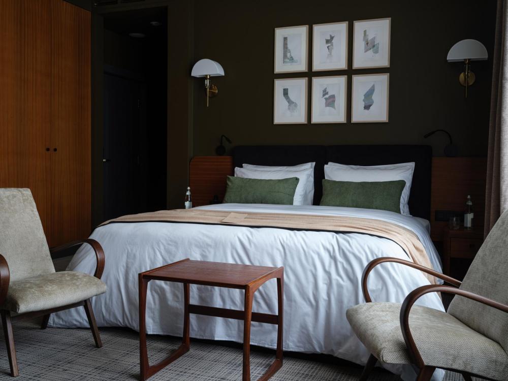 Люкс улучшенный Двухкомнатные люксы площадью 62,5 квадратных метра с эргономичными зонами для работы и отдыха. Авторский дизайн интерьеров и нестандартные решения в планировке пространства создают особенную атмосферу. В номерах оборудованы 2 санузла.