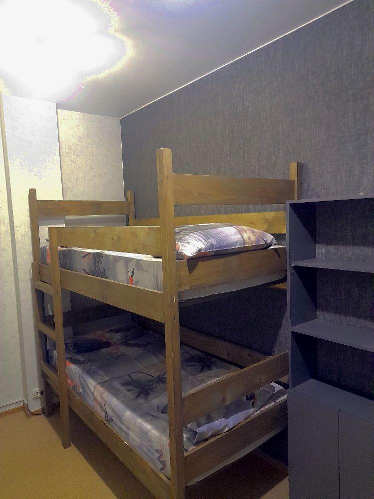 Номер рассчитан на двоих. В номере двухъярусная кровать, стол,стул.