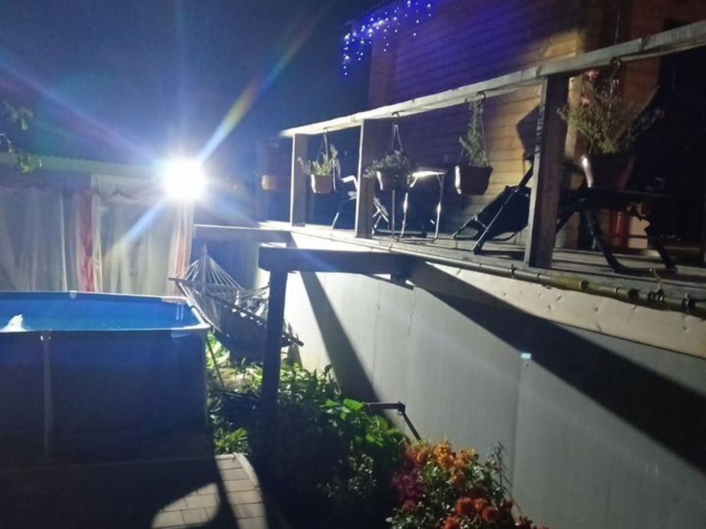 Уютный загopодный дом общей площадью 145 кв.м. для размещения до 15-ти гостей. Для комфортного проживания гостей дом оснащен всем необходимым: просторная кухня-гоcтиная, душевая кабина с музыкой, подсветкой и гидромассажем, вся бытовая техника (холодильник, микроволновая печь, духовой шкаф, чайник, фен, плойка, стеклокерамическая варочная панель), посуда, специи, настольные игры, стиральная и сушильная машина, «Умный дом» интеграция с Алисой- управление всей жизнедеятельностью дома через телефон или умную колонку, WI FI, светомузыка, дымовые машины, профессиональная, концертная чистая музыка, караоке до 7 микрофонов (более 2-х микрофонов под увеличенный депозит). Рядом с домом расположен подогреваемый бассейн и настоящий Сибирский Банный, по настоящему Царский чан. На территории имеются, керхер, мангальная и костровая зона с раскладными креслами- шезлонгами на которых можно посидеть ночью у костра, а днем разложить и позагорать. По периметру участка и на парковке установлены камеры. Парковка во дворе на 2 машины и на отдельной огороженной парковке под камерами более 3 машин. Рядом расположены: магазины, станция элeктpички Ивантeeвка-2, автобус до ст. м. ВДHХ, лес, сквер, оборудованный речной пляж. На соседнем участке расположена беседка и большая модная костровая зона в лесу, в живописном месте, среди вековых сосен.