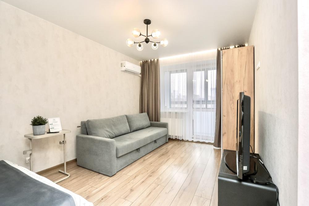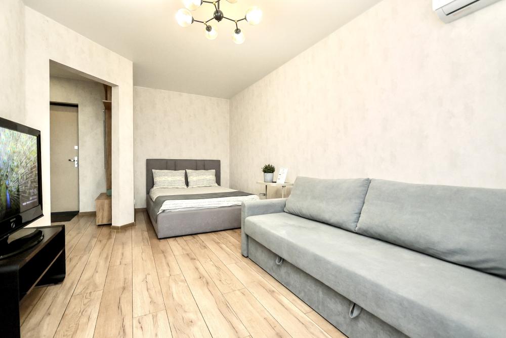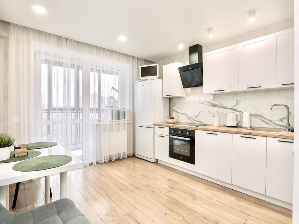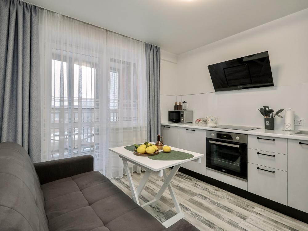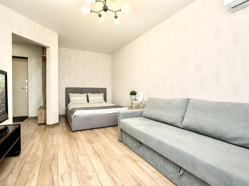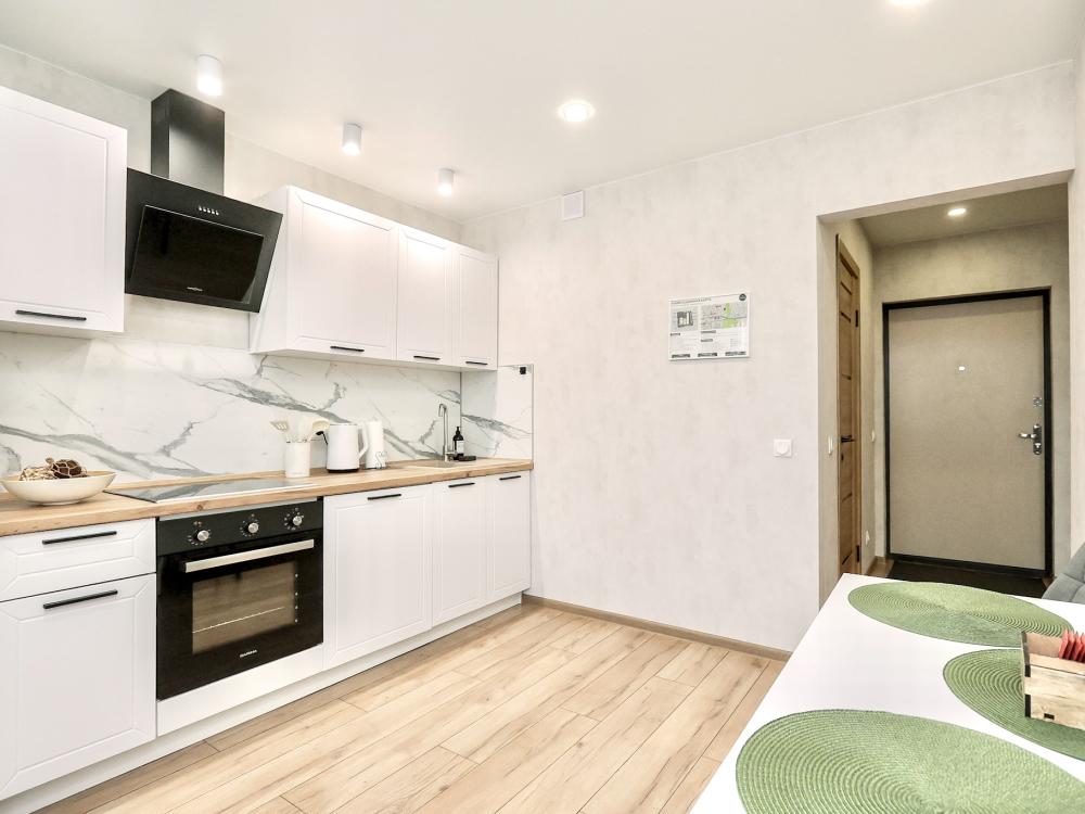 В квартире можно с удобством разместиться в количестве 4-х человек. На кухне можно самостоятельно приготовить блюда или разогреть готовую пищу в микроволновой печи. Также есть чайник, холодильник, варочная панель и набор посуды и столовых принадлежностей. Двуспальная кровать с ортопедическим матрасом 1600*2000 + раздвижной диван 1400*2000+ свежее постельное белье, шторы с полным затемнением.