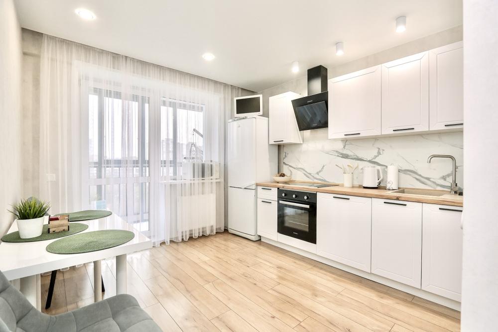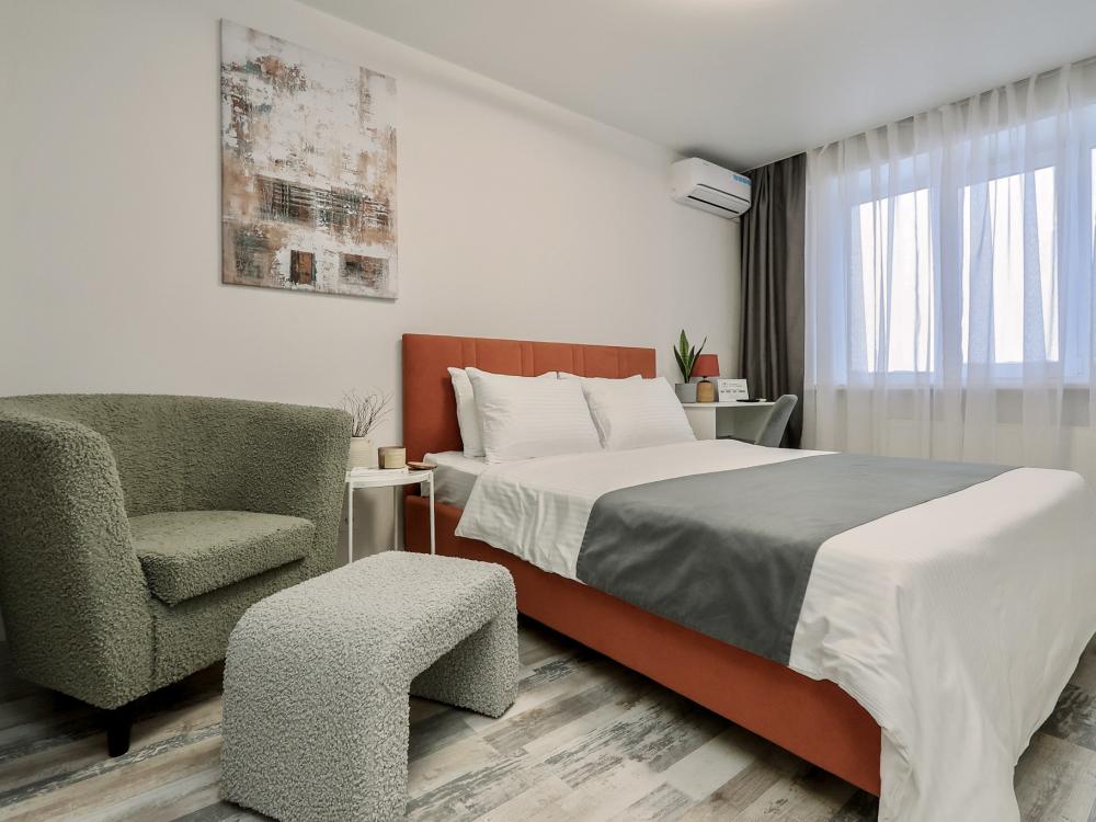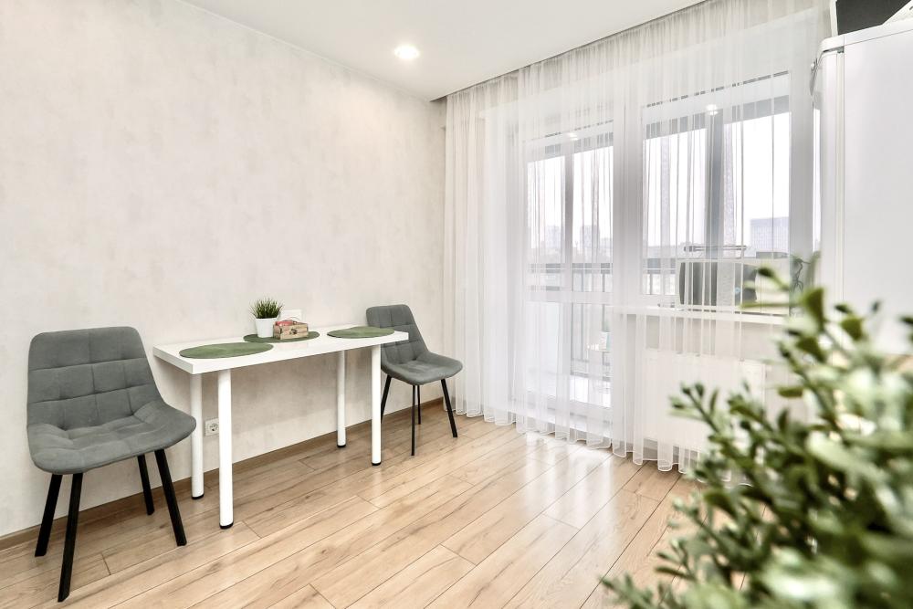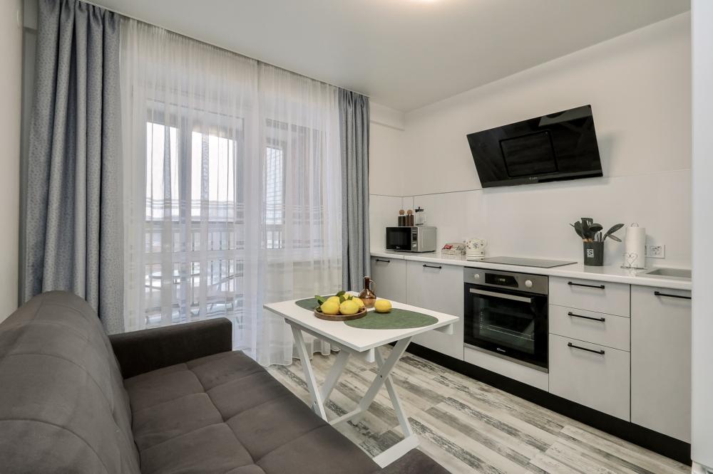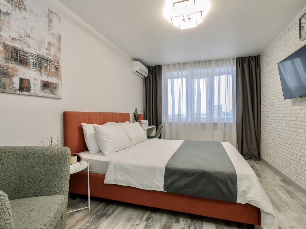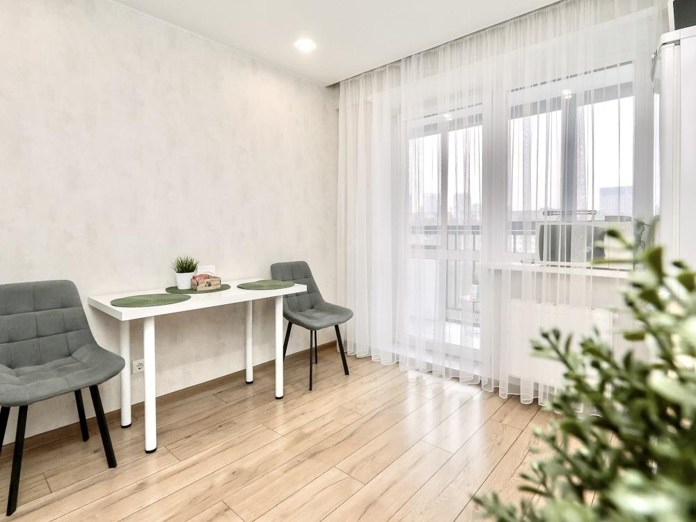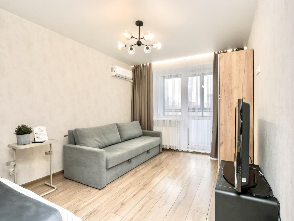 В квартире можно с удобством разместиться в количестве 4-х человек. На кухне можно самостоятельно приготовить блюда или разогреть готовую пищу в микроволновой печи. Также есть чайник, холодильник, варочная панель и набор посуды и столовых принадлежностей. Двуспальная кровать с ортопедическим матрасом 1600*2000 + раздвижной диван 1400*2000+ свежее постельное белье, шторы с полным затемнением.