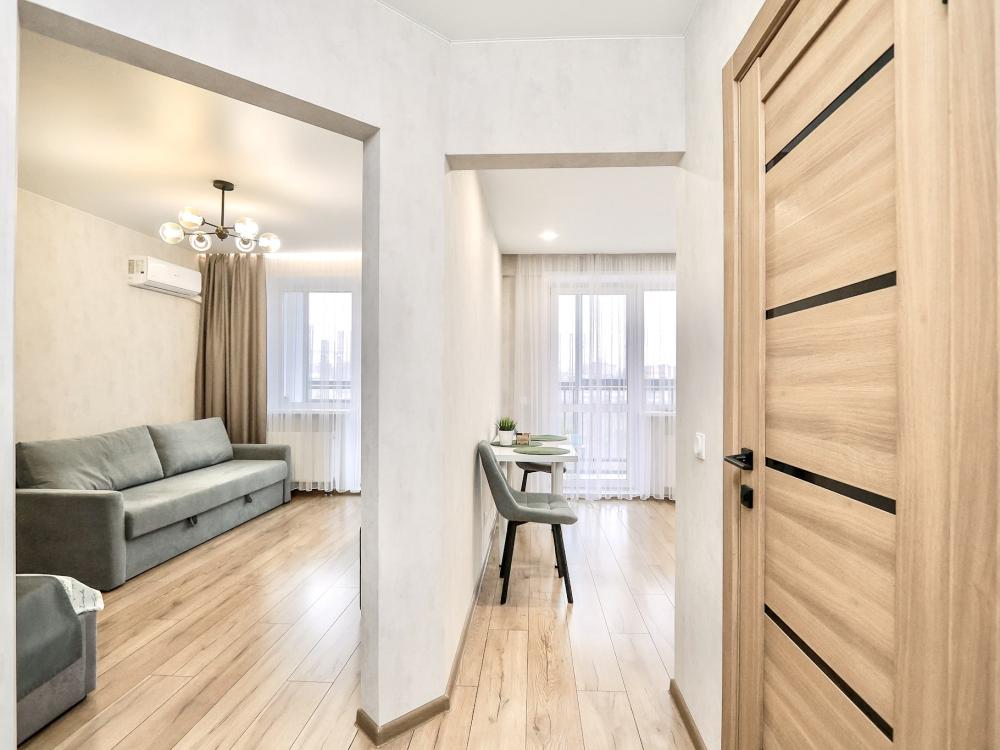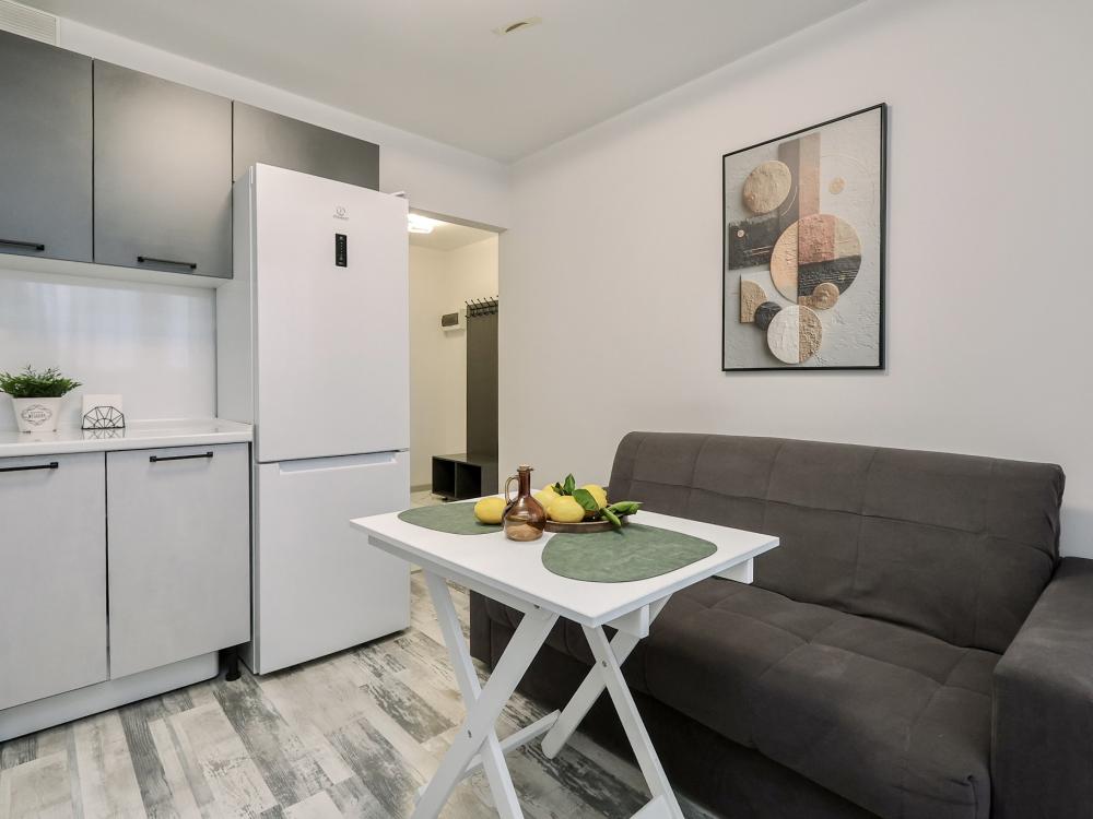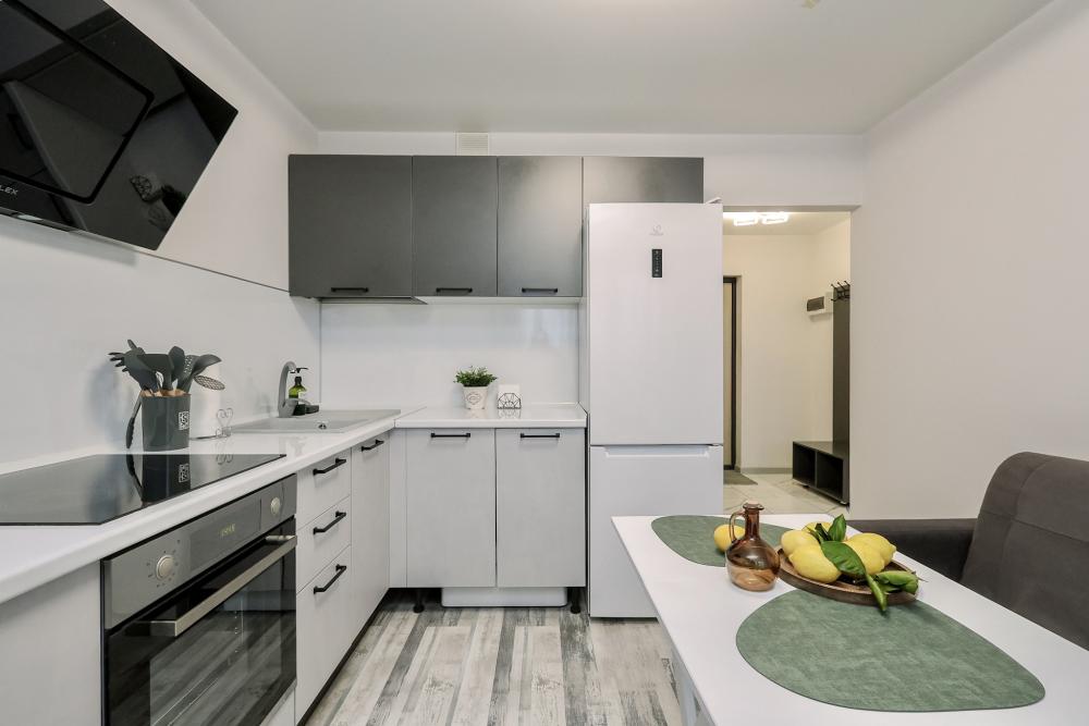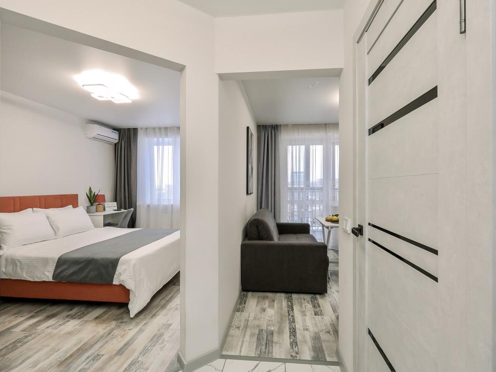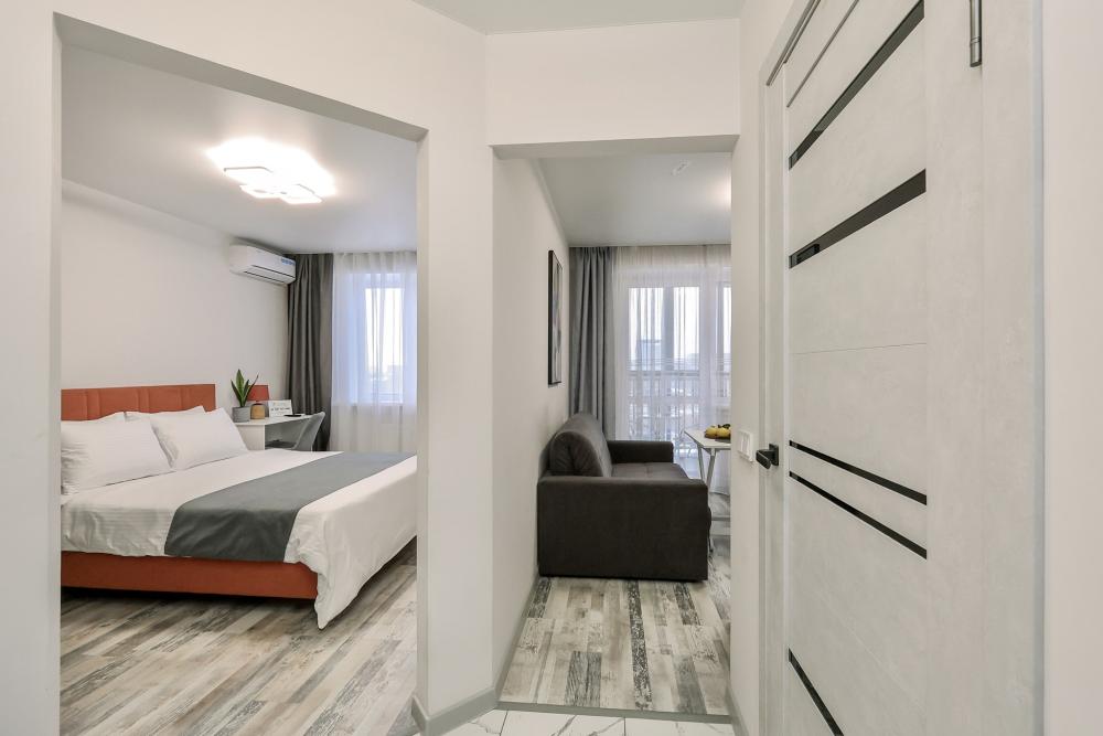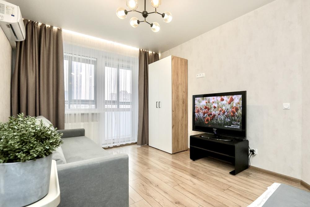 В квартире можно с удобством разместиться в количестве 4-х человек. На кухне можно самостоятельно приготовить блюда или разогреть готовую пищу в микроволновой печи. Также есть чайник, холодильник, варочная панель и набор посуды и столовых принадлежностей. Двуспальная кровать с ортопедическим матрасом 1600*2000 + раздвижной диван 1400*2000+ свежее постельное белье, шторы с полным затемнением.