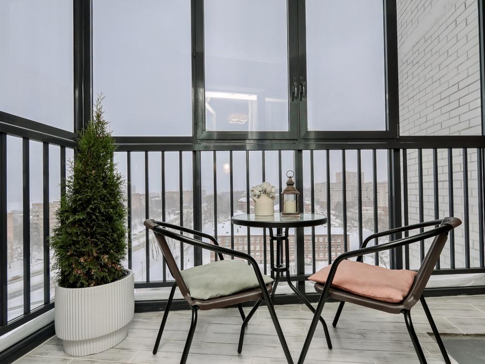 Квартира в историческом центре города. В новом видовом ЖК «Семейный Парк» рядом с набережной Ижевского пруда, с огромной лоджией. О доме: У дома есть своя закрытая детская площадка во дворе. Двор без машин. Парковка общественная вокруг дома. Панорамная лоджия с видом на город