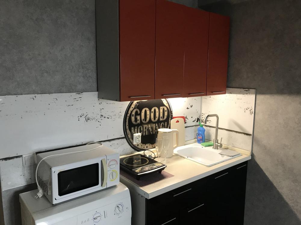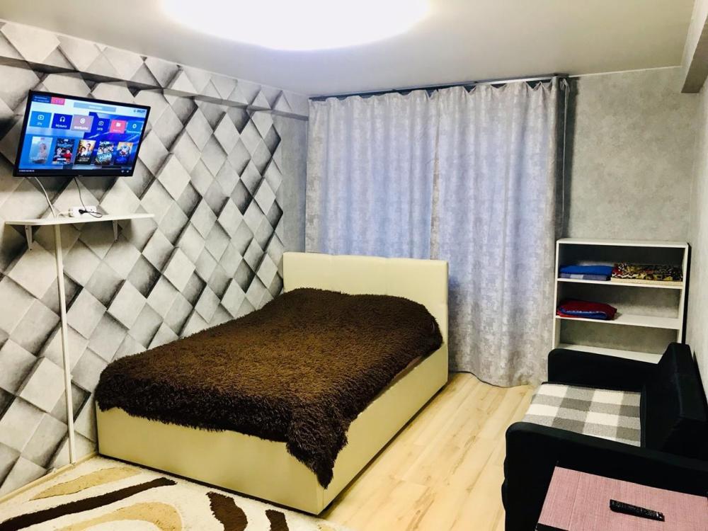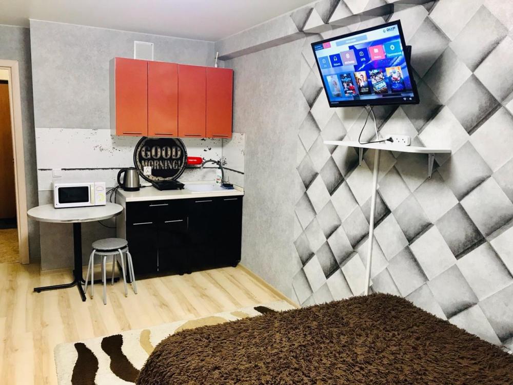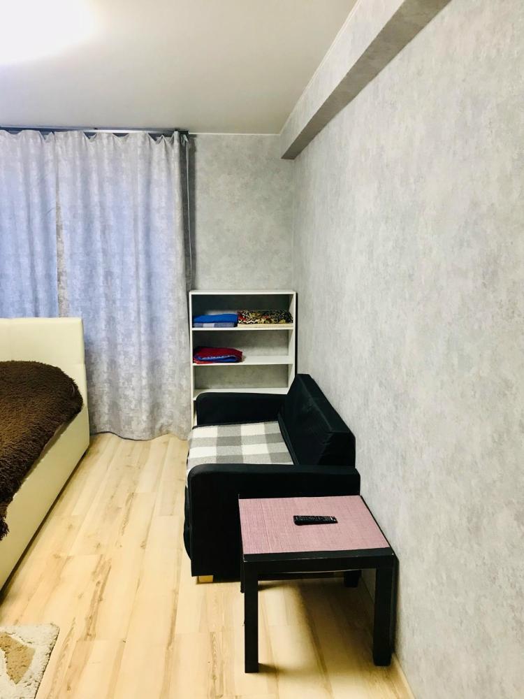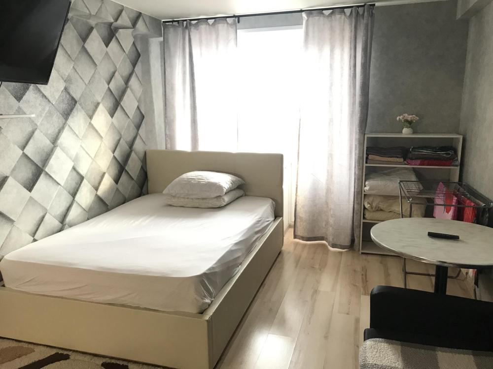Однокомнатные апартаменты-студия подойдут для размещения 4 человек. Спальные места: двуспальная кровать с ортопедическим матрасом 140*200, раскладной диван 130*190. Имеется все необходимое для комфортного проживания: WI-FI и Smart TV, стиральная машина, фен, утюг, гладильная доска, журнальный столик, встроенный в шкаф. На кухне: индукционная панель, холодильник, чайник, СВЧ-печь, посуда и кухонные принадлежности. Совмещенный санузел с ванной. Постельное белье и полотенца предоставляются.
