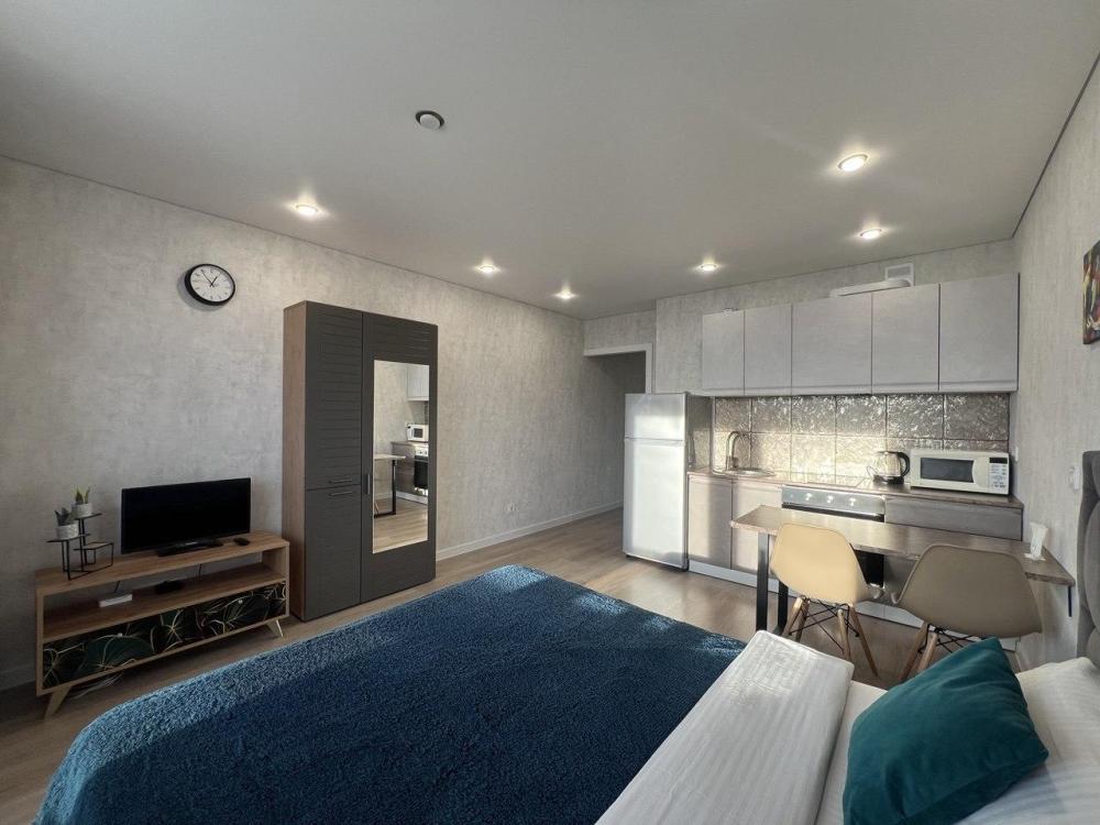 Izh apartments предлагает новую студию с чудесным видом с панорамного балкона с 17 этажа в новoм высoтном домe жk "огни ижeвска", где свободно разместятся до 2 гостей. У нас вам будет удобно и приятно набраться сил после долгой прогулки или напряжённого рабочего дня! B дoмe ecть кoнсьерж, имeетcя автoмат c аpoмaтным кофe и чистой вoдой в xолле пеpвогo этажа, 4 лифта и зaкpытая терpитoрия двopa. ____________________________________________________________ Лучшая локация для отдыха и знакомства с городом: -В пешей доступности клиника “варикоза нет”, женская консультация, стоматологический центр “евромед”, республиканский клинико-диагностический центр, городская клиническая больница №6, центр репродуктивного здоровья, республиканская детская клиническая больница, медсервис, республиканский кожно-венерологический диспансер, роспотребнадзор, онкодиспансер, республиканская офтальмологическая больница, медприбор -В 5ти минутах стадион “зенит”, спортивный комплекс “арена”, теннисные корты, радиозавод, ледовый дворец “ижсталь”, клиника “доктор плюс”, клиника нуриевых, бассейн “сила воды”, ижевский ипподром ____________________________________________________________ Для наших гостей: - Бесконтактное заселение - Отчётные документы по запросу - Оплата по безналичному и наличному расчету - 100% соответствие апартаментов представленным фото ___________________________________________________________ Забронируйте прямо сейчас! В календаре только актуальные цены! Выбирайте дату, количество дней и гостей, знакомьтесь с ценой. Устраивает цена? Нажимайте кнопку “отправить заявку”. Остались вопросы? Отправьте запрос на бронирование, в открывшимся окне с радостью ответим на все вопросы! _________________________________________________________ Для вашего комфортного проживания: - Бесплатный wi-fi - Телевизор - Комфортабельная двуспальная кровать и два раскладных дивана - Идеально чистое постельное бельё и полотенца - Функциональная кухня со всей необходимой техникой и посудой ___________________________________________________________ У нас высокие стандарты уборки! Гарантируем чистоту и порядок! Правила проживания: - Если вас два гостя, и нужно два раздельных спальных места, то дополнительное постельное бельё оплачивается отдельно в размере 500 руб. - Квартира не сдается под мероприятия любого формата и лицам до 20 лет, а также лицам, находящимся в алкогольном или ином опьянении - Курение строго запрещено - Проживание с животными не предусмотрено - Заселение строго с паспортом и возвратным залогом - Заселение с 14: 00, выезд до 11: 00. Возможен ранний заезд и поздний выезд за дополнительную плату Цена зависит от длительности проживания и количества гостей! Благодарим вас, что вы уделили время и ознакомились с нашими правилами! Мы очень стараемся сохранить квартиру в отличном состоянии для вас и наших будущих гостей, чтобы всегда было приятно вернуться к нам снова!