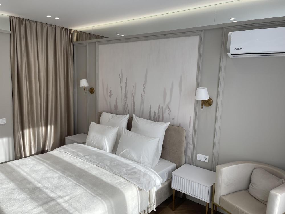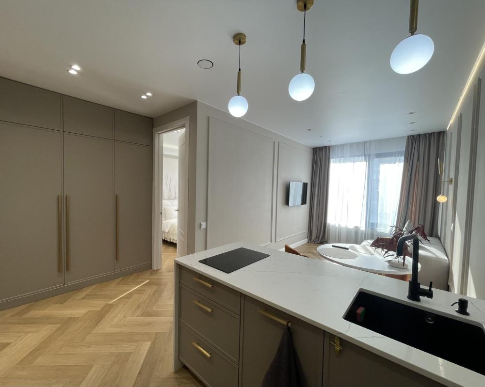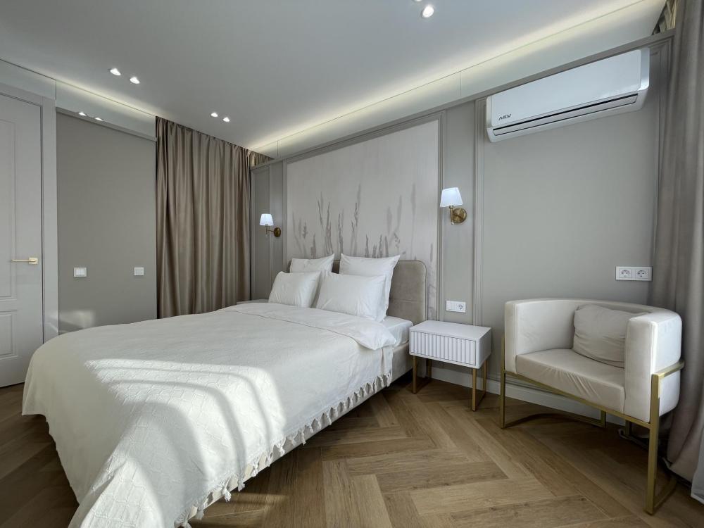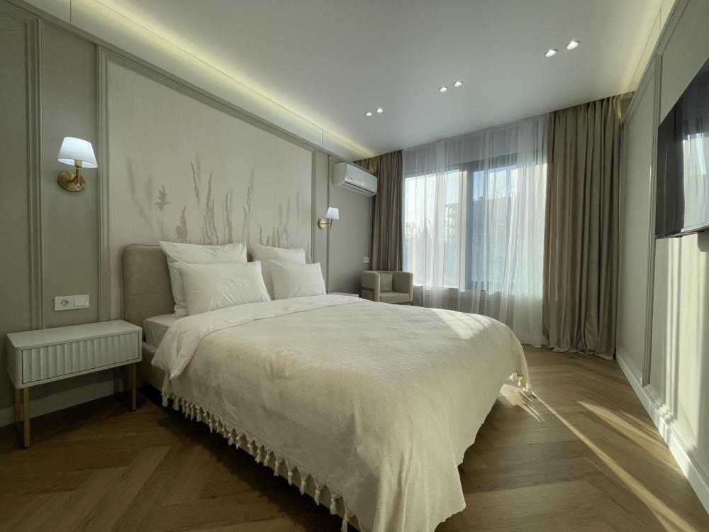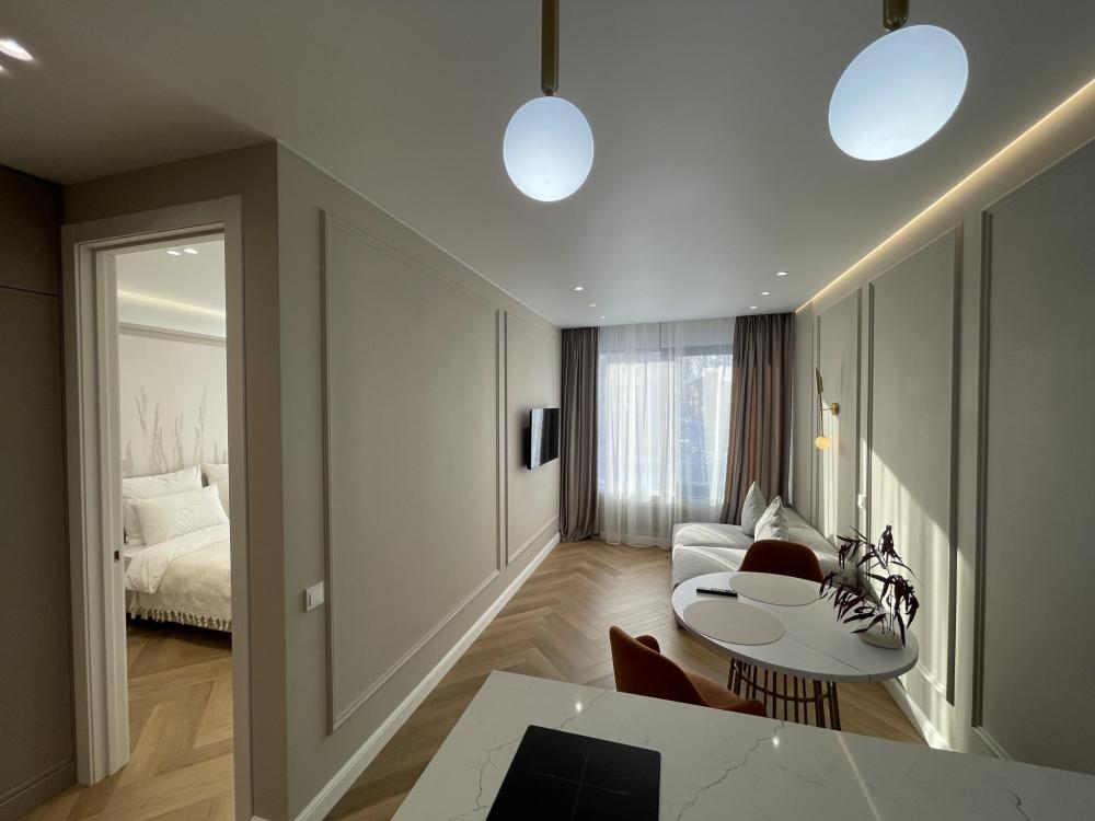 Однокомнатные апартаменты с видом на городскую эспланаду и Свято-Михайловский собор подойдут для размещения 2 человек. Спальные места: двуспальная кровать 160*200. Всегда предоставляется одно одеяло 200*220, если необходимо второе одеяло - запросить предварительно. Диван нераскладной, на нем размещение не предусмотрено. В кухонной зоне: холодильник, чайник, кофеварка, посудомоечная машина, плита, посуда и кухонные принадлежности. Для пользования доступны: WI-FI, 2 Smart TV, 2 кондиционера, стирально-сушильная машина, водонагреватель, утюг, фен. Совмещенный санузел с душевой. Постельное белье, полотенца, халаты, тапочки и туалетные принадлежности предоставляются. Апартаменты расположены на 4-ом этаже.