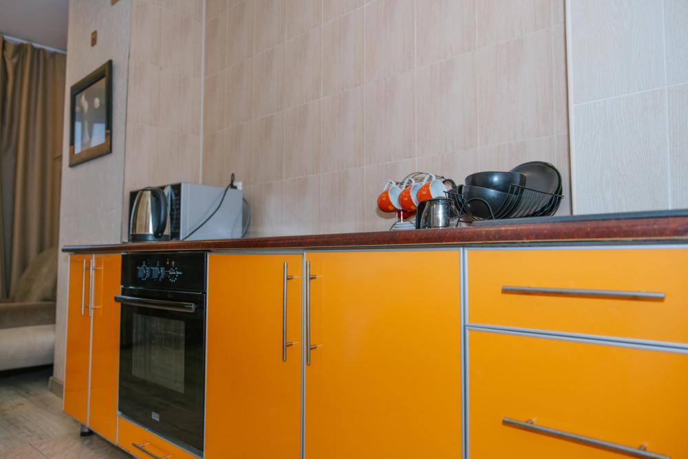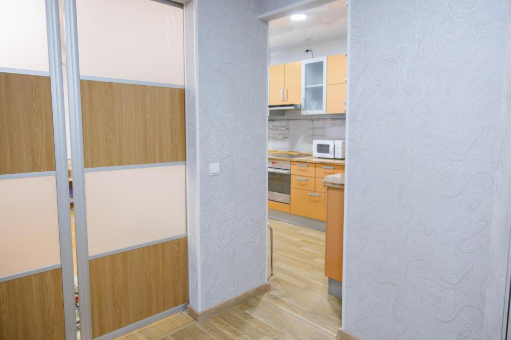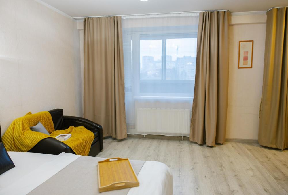 Однокомнатные апартаменты подойдут для размещения 2 человек. Спальные места: двуспальная кровать 140*200. Имеется все необходимое для комфортного проживания: WI-FI и TV, стиральная машина, кондиционер, водонагреватель, фен, утюг, гладильная доска, сушилка для белья, гардеробная. На кухне: плита, духовой шкаф, холодильник, чайник, СВЧ-печь, посуда и кухонные принадлежности. Совмещенный санузел с ванной. Постельное белье и полотенца предоставляются. Двор с детской площадкой. Есть парковочные места для автомобилей.