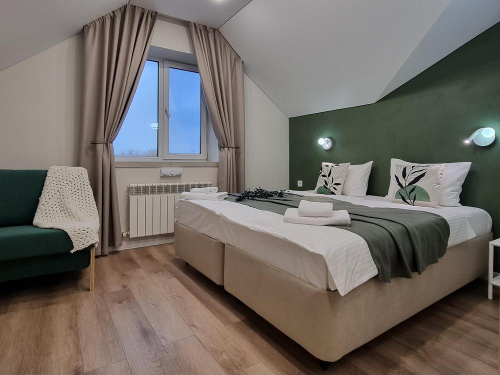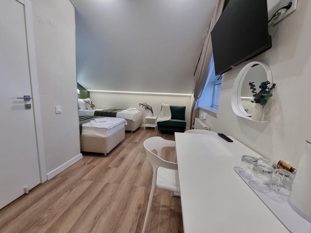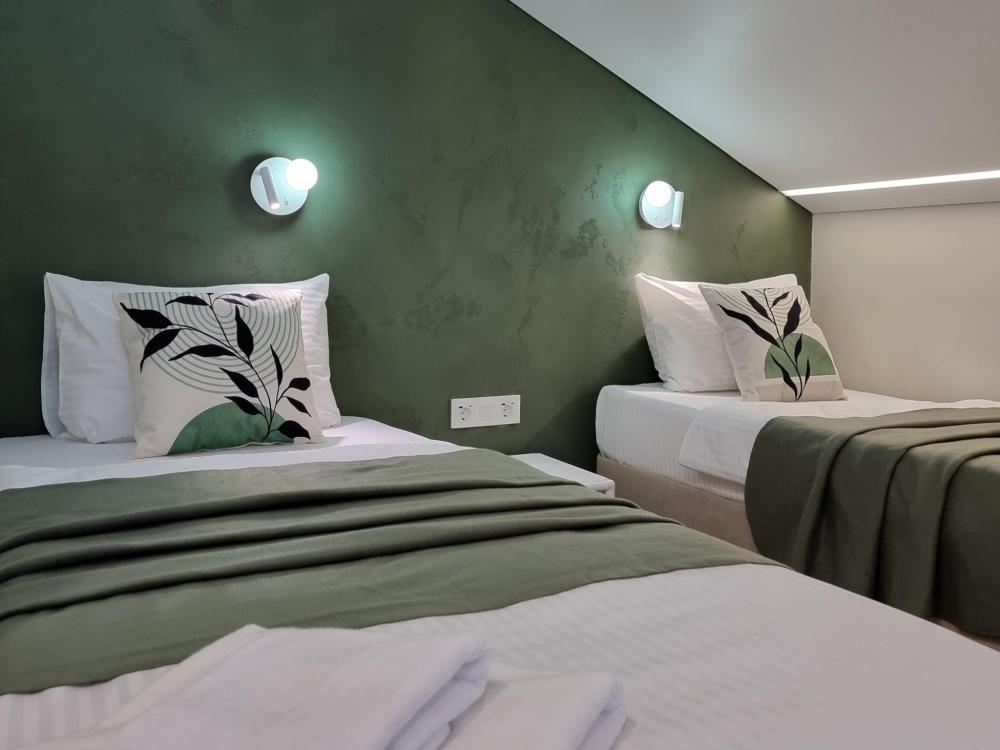 Вместимость: 2 человека. + одно спальное место за дополнительную оплату В комнате: две односпальные кровати, , кресло-кровать шкаф, стол, стулья, чайник, посуда. Техника: Телевизор, бесплатный Wi-Fi. Ванная комната: раковина, унитаз, душ, средства индивидуальной гигиены, одноразовые тапочки.