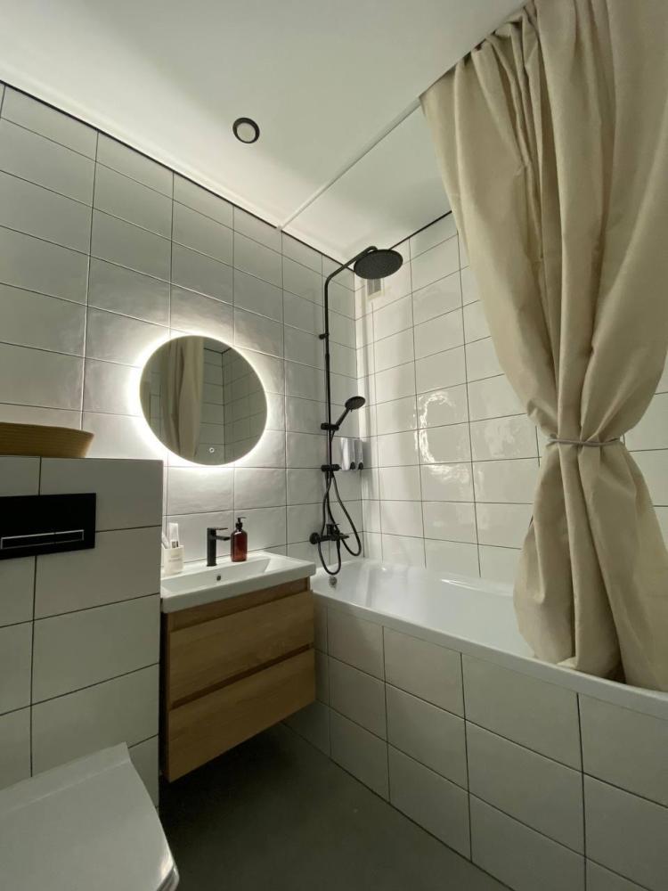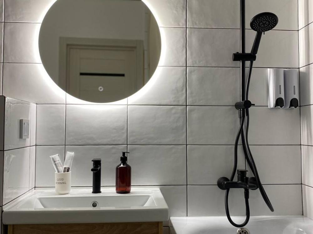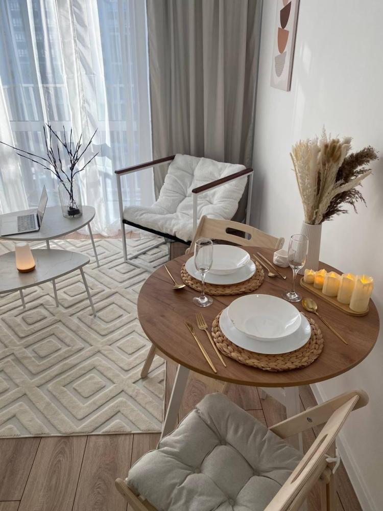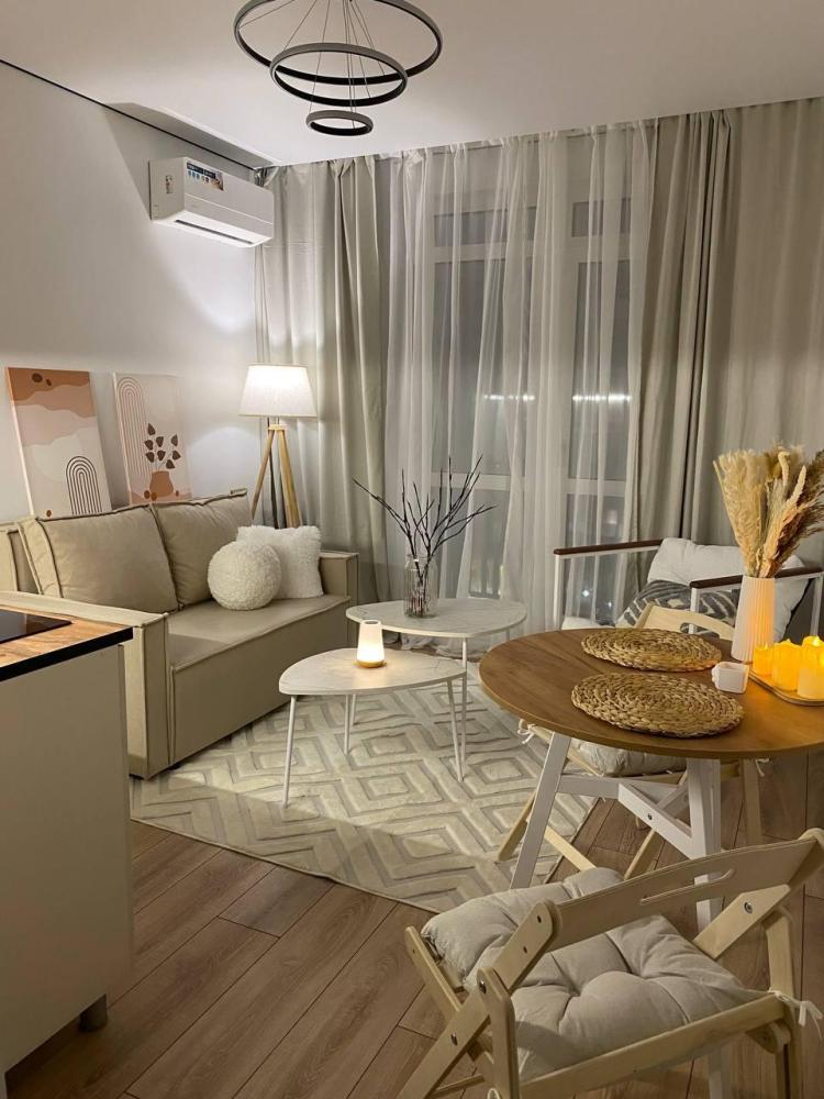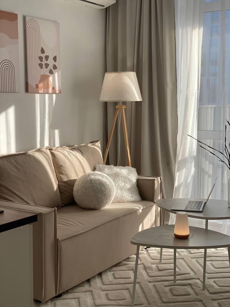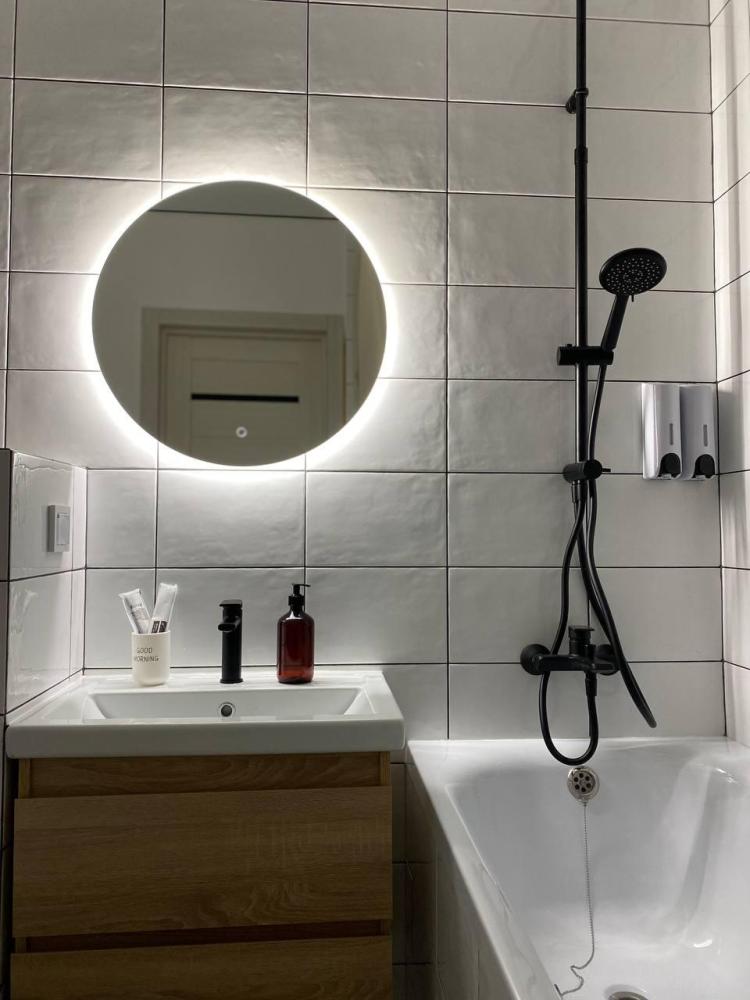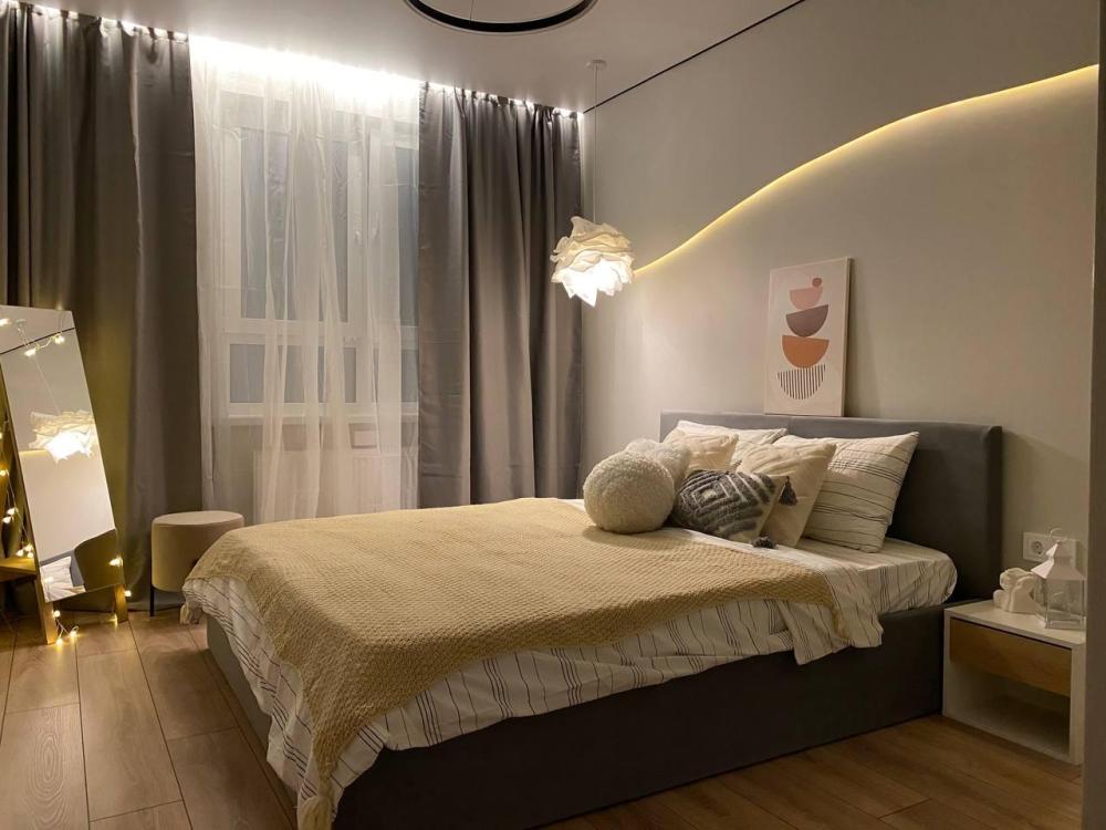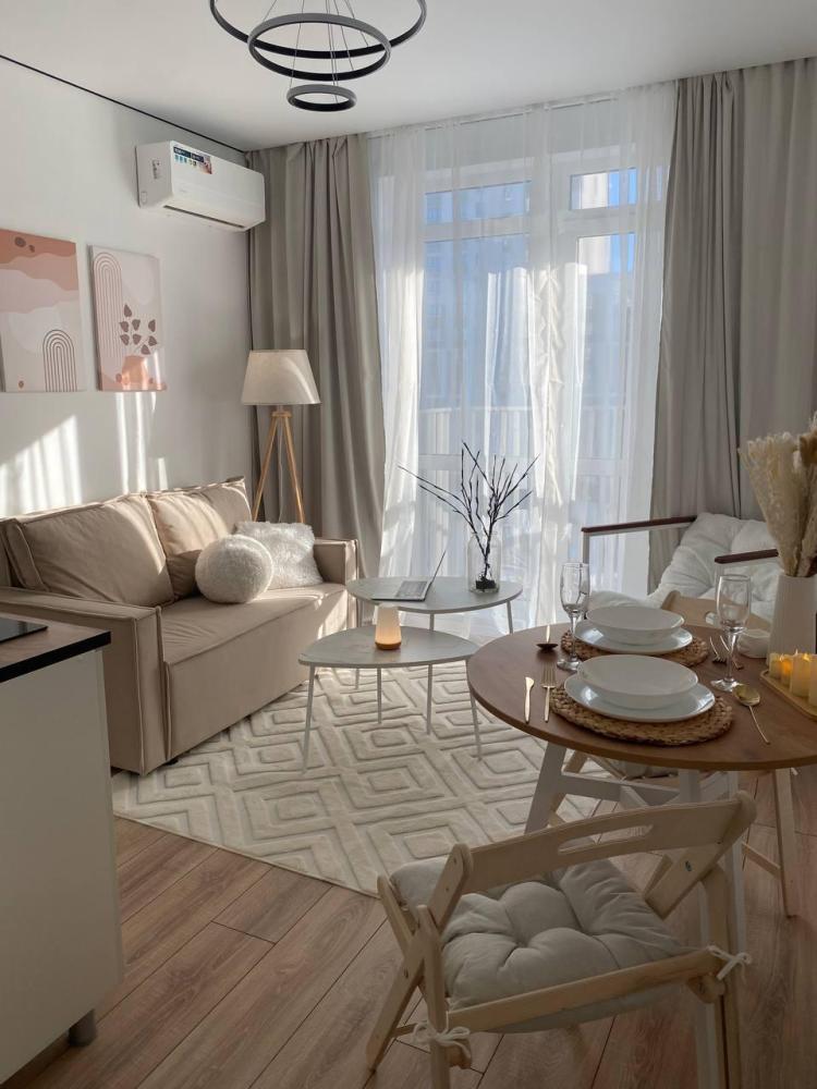 Уютные апартаменты студия, оборудованные всем необходимым для комфортного проживания. В апартаментах: двуспальная кровать,Wi-Fi, индукционная плита, холодильник, микроволновая печь, чайник, посуда. В квартире также есть шкаф для хранения вещей, рабочий стол. В ванной комнате все необходимое: ванна с тропическим душем, стиральную машину, фен.