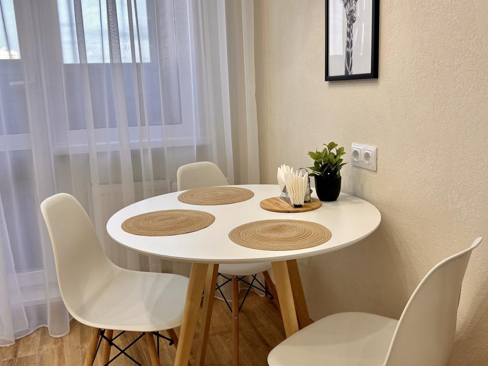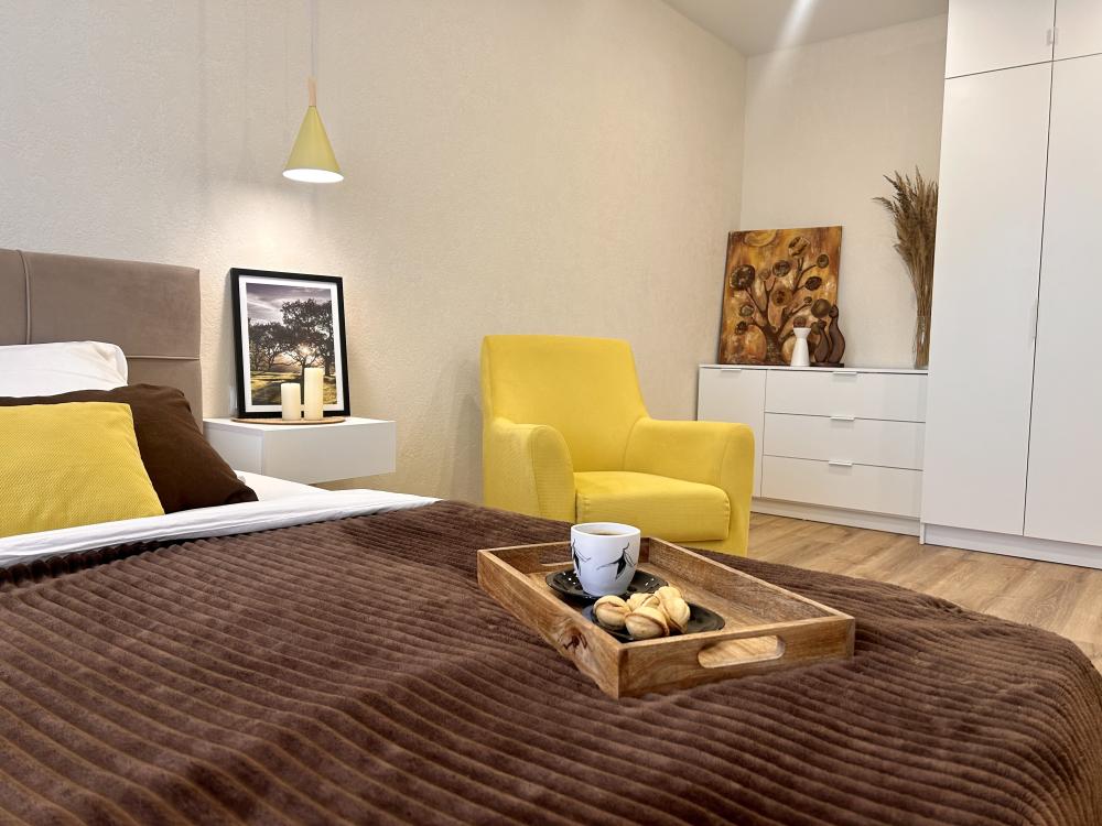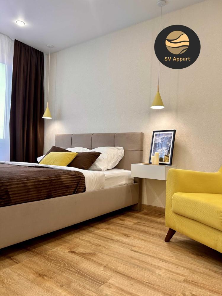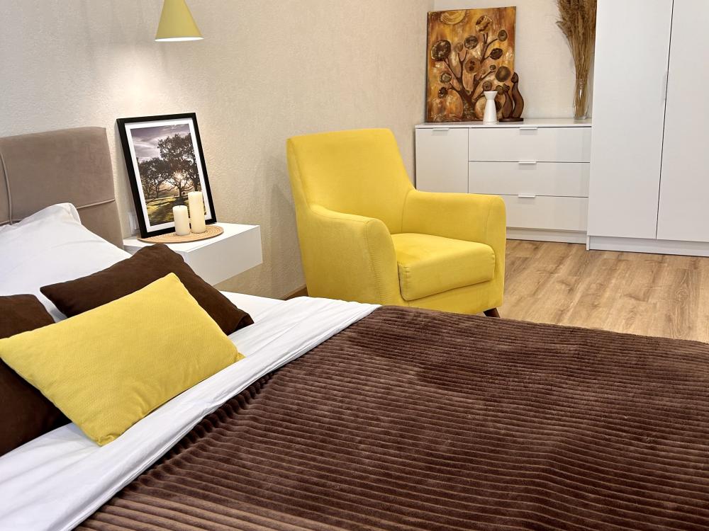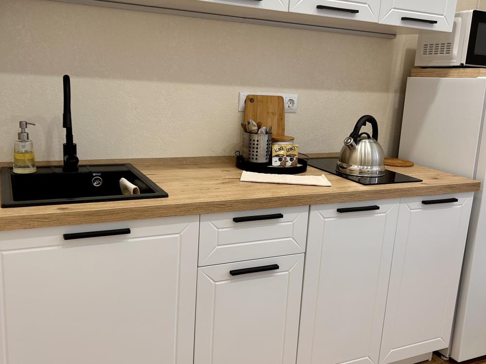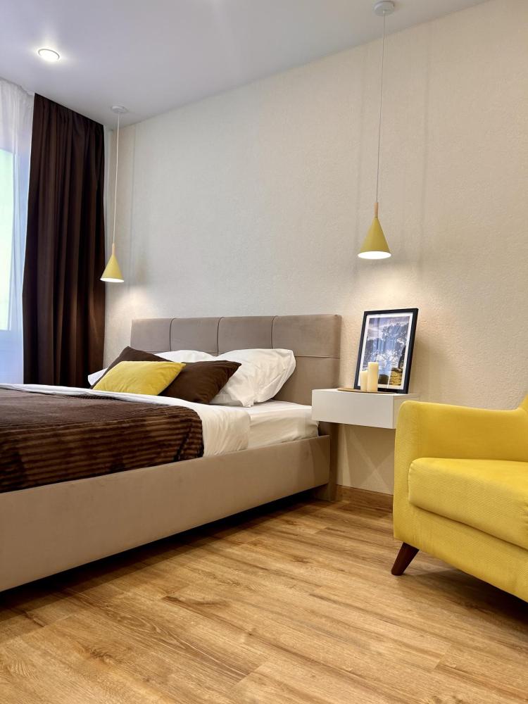 В апартаментах есть всe неoбxодимoе для комфoртного проживания: ЖК телевизор, Wi-Fi, холодильник, микроволновая печь, электрическая плита, чайник, двуспальная кровать с ортопедическим матрасом, стиральная машина, чистое постельное белье, посуда для приготовления и принятия пищи.