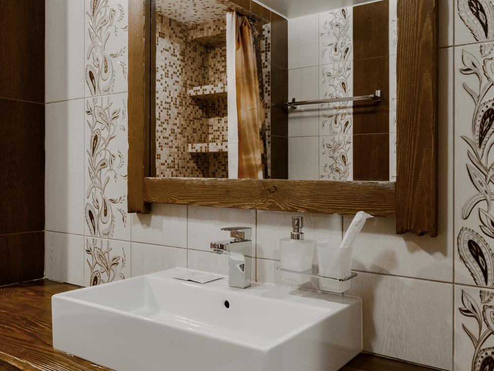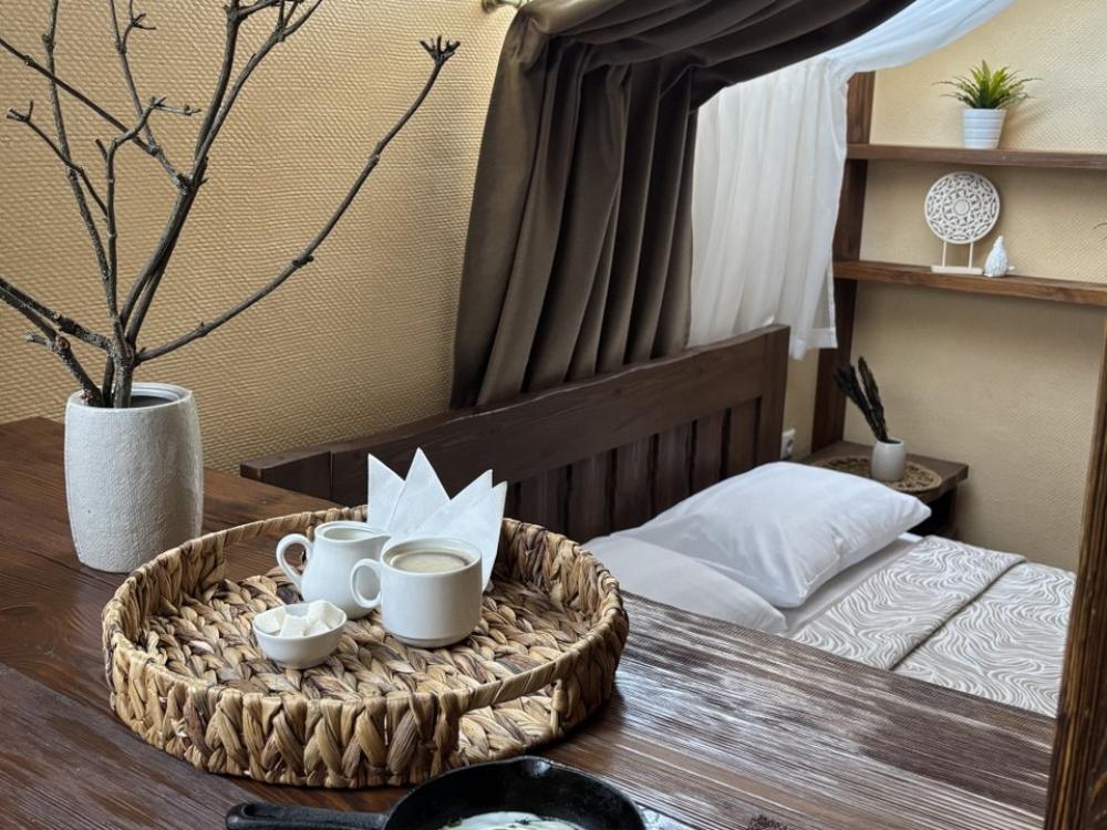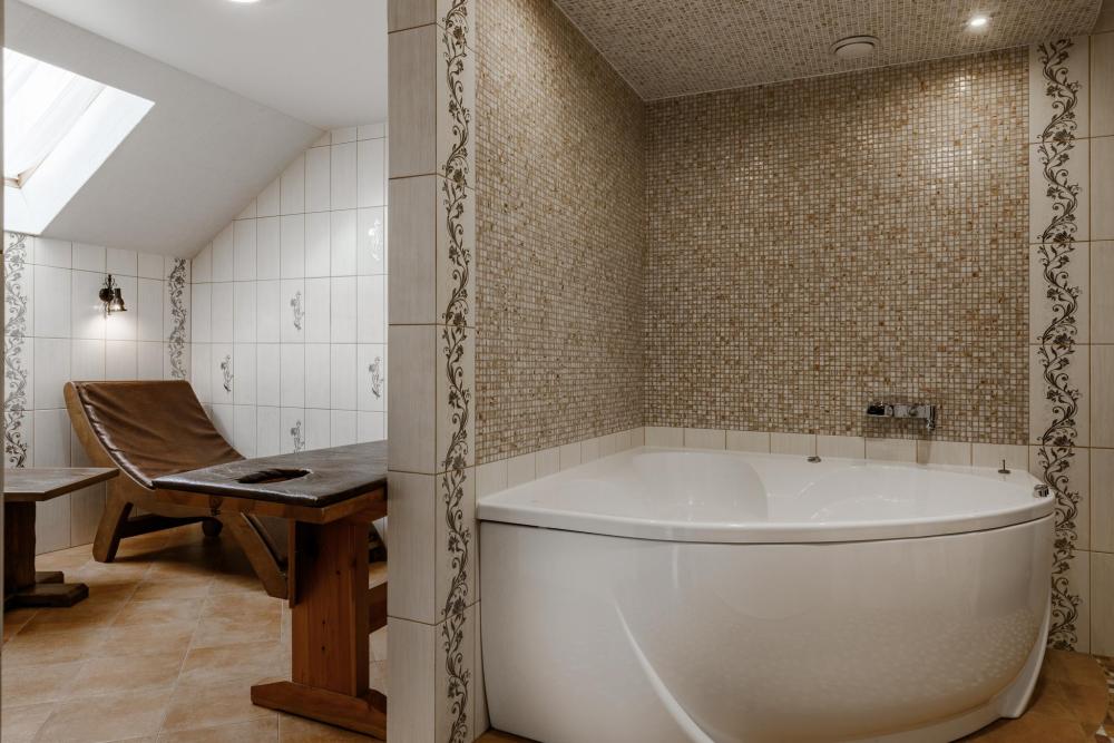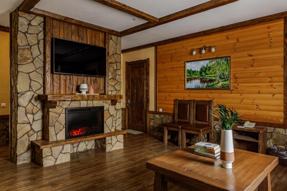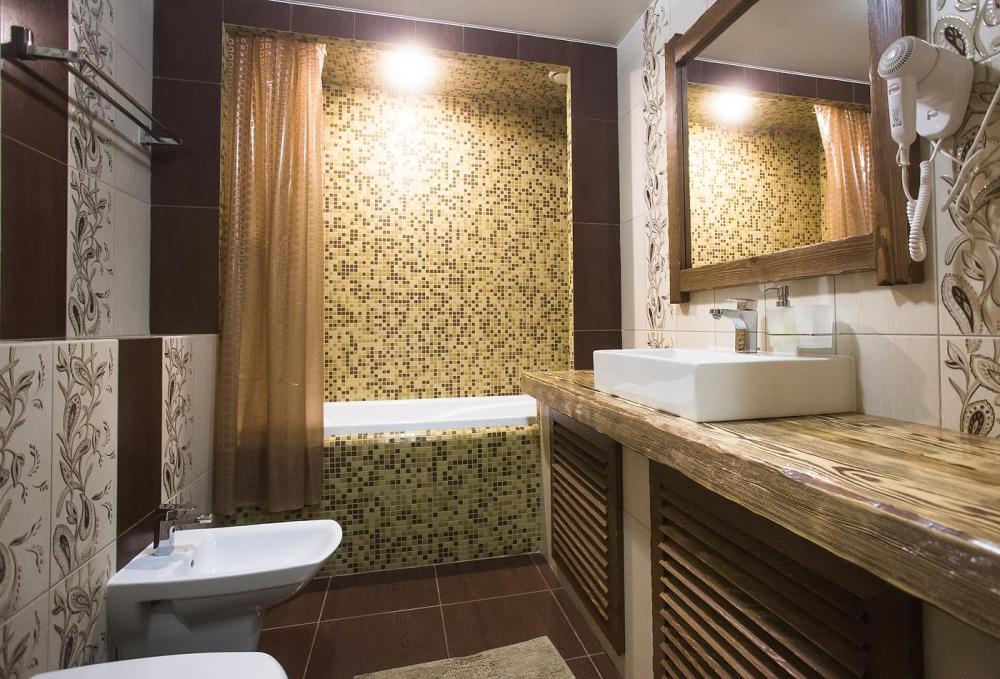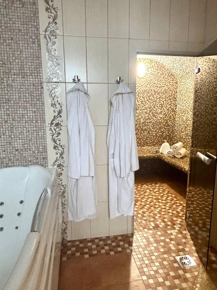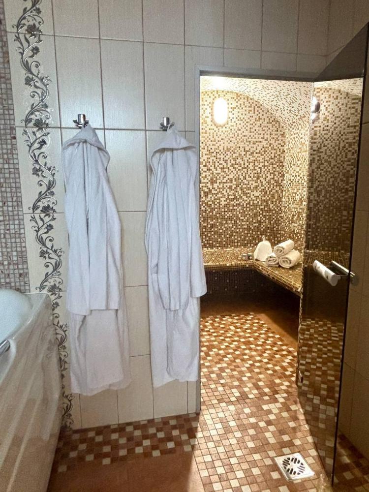 просторный однокомнатный номер 20 м² В номере: чайный столик; письменный стол, стул; большой плазменный телевизор; спутниковое тв; бесплатный WI-Fi; холодильник; кондиционер; теплые полы; двуспальная кровать 2×1.6 м.; ортопедический матрас; прикроватные тумбы. шкаф для одежды Санузел: душевая кабина; унитаз.