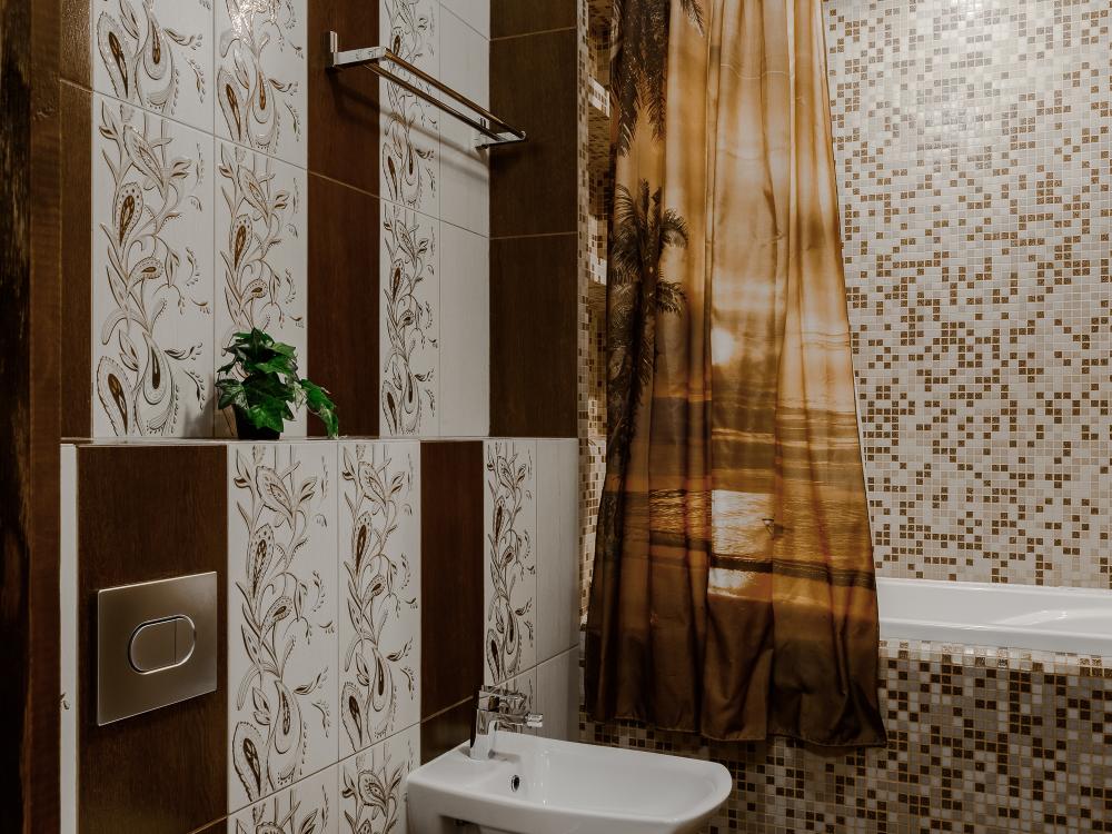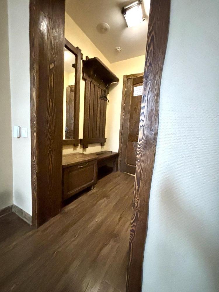 Однокомнатный номер 18 м² В номере: письменный стол, стул; большой плазменный телевизор; спутниковое тв; бесплатный WI-Fi; холодильник; кондиционер; теплые полы; двуспальная кровать 2×1.6 м.; ортопедический матрас; прикроватные тумбы. шкаф для одежды Санузел: душевая кабина; унитаз.
