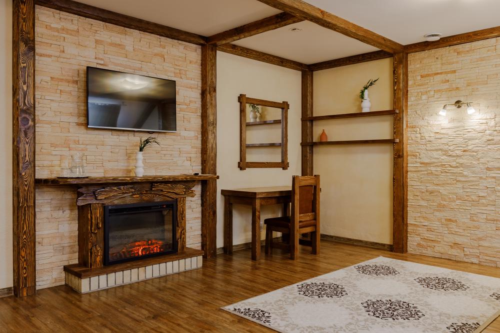 Гостиная: спальня, диван, чайный столик, письменный стол, стул, камин (электрический), большой плазменный телевизор, спутниковое тв, смарт тв, бесплатный WI-Fi, кондиционер, теплые полы, двуспальная кровать 2×1.6 м., ортопедический матрас, прикроватные тумбы. Санузел: ванна 1.7×0.7 м., унитаз, биде, фен.