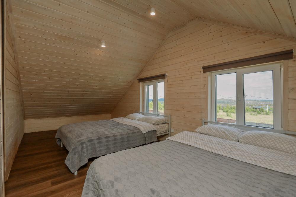 ? Дом с собственным чаном (купель Фурако)! ??♀️ Летний бассейн и финская сауна! ? Расположен возле горы Чекерил! ? Мы приготовили для Вас бонус! Забронируйте дом сегодня и получите 1 час сауны в подарок, при бронировании от 2-х часов? ?Предложение действует до конца недели. Аренда дома коттеджа посуточно в стиле Барнхаус – идеальное место для отдыха небольших компаний до 8 человек! Отличная возможность вырваться из шумного города и провести время в уютной, живописной обстановке. В коттедже есть всё, что нужно для полного расслабления или продуктивной работы на природе. БРОНИРОВАНИЕ ДОМА ОТ 1-х СУТОК! Свободные даты на аренду дома коттеджа посуточно указаны в календаре бронирования. ______________ 1️⃣ Что входит в бронирование домика? Дом полностью оборудован всей необходимой техникой: комфортные спальные места, телевизор, холодильник, микроволновка, кухня со всем необходимым. На улице летний бассейн, террасы, костровая и мангальная зоны. Территория освещается гирляндами и прожекторами. Предоставляется постельное белье и махровые полотенца. 2️⃣ Возможен ли очень поздний заезд и поздний выезд? Да, возможен при наличии такой возможности за дополнительную плату 1000р/час. Мы будем рады встретить Вас в любое удобное время. 3️⃣ Что нам нужно взять с собой для заселения в дом? Уголь и розжиг, а также питьевую воду. Все остальное для комфортного проживания у нас есть. От Вас хорошее настроение и еда/напитки по желанию! 4️⃣ Нас 8 человек. Можно ли к нам приедут друзья до вечера? Но они может останутся на ночь, мы поместимся! Дом рассчитан строго на 8 спальных мест. На ночь могут находиться только люди, внесенные в бронь, более того, дневное пребывание также оплачивается из расчета 1000р/гость. 5️⃣ В доме можно готовить? Можно! В доме есть оборудованная кухня: холодильник, микроволновая печь, плита, чайник. На улице мангальная зона. 6️⃣ Что есть на улице? На улице летний бассейн, террасы, костровая и мангальная зоны. Территория освещается гирляндами и прожекторами. 7️⃣ Можно ли с животными? Да! Мы - pet friendly. Доплата за питомца 1000 руб/сут. 8️⃣ Есть ли видеонаблюдение? Да. Все объекты на территории находятся под видеонаблюдением. ______________ Что вы получите, если решите снять дом в аренду у нас: ✅ Просторный дом с панорамными окнами, антресолью и вторым светом в стиле Барнхаус. ✅ 8 спальных мест: 3 двухспальные кровати и раскладной угловой диван. ✅ Полностью оборудованная кухня со всем необходимым. ✅ Новая мебель и техника (телевизор, холодильник, микроволновка, плита). ✅ Постельное белье и махровые полотенца предоставляются. ✅ Терраса и мангальная зона на улице. ✅ Банный чан (купель Фурако) и летний бассейн на улице. ✅ Освещенная территория гирляндами и прожекторами. ✅ Возможность заказать финскую сауну или купель Фурако (банный чан). ? Мы приготовили для Вас бонус! Забронируйте дом сегодня и получите 1 час сауны в подарок, при бронировании от 2-х часов? ?Предложение действует до конца недели. ? Продукты: В 5 минутах езды от дома есть супермаркет “Магнит” и продуктовый магазин “Кедровый”. В 7-ми минутах езды кафе “Трамплин” и ТРЦ «Матрица», где есть все и даже больше. Финская сауна: ? 1000 руб/час (не менее 2 часов). Купель Фурако (банный чан): ? 5000 рублей без ограничений по времени, пока не остынет (время остывания около суток). ? Условия: Дом вмещает до 8 гостей включая детей, 