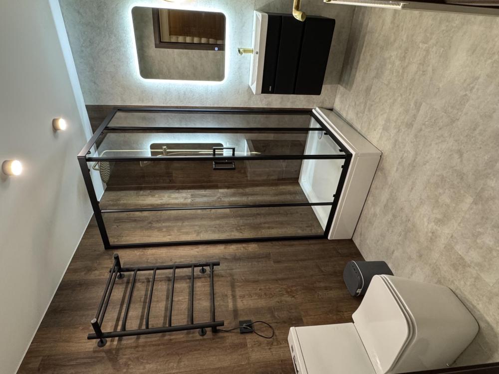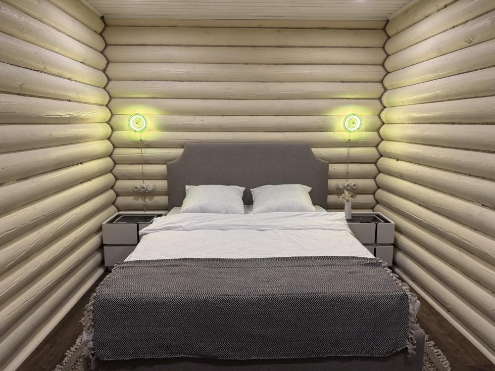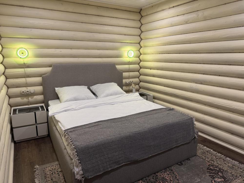 В гостиной: Мягкая мебель(кресло, диван - раскладывается при оформлении доп.места только для 1 взрослого человека или для двоих детей), Журнальный столик, Внутренний телефон (связь между домиками), TV, Мини-холодильник, Чайник, СВЧ-печь, Набор посуды (2 стакана, 2 чашки, 2 бокала, открывалка, штопор, разделочная доска, нож, одноразовые тарелки и приборы), Мангальная зона (стол, скамейки, мангал). В спальне: Двуспальная кровать с одним матрасом, Две тумбочки, Шкаф + вешалки, TV, Тапочки. В ванной комнате: Душ, Раковина, Биде, Набор полотенец, Зубной набор, Гигиенический набор: ватные палочки, ватные диски, Набор для душа: гель, шампунь.