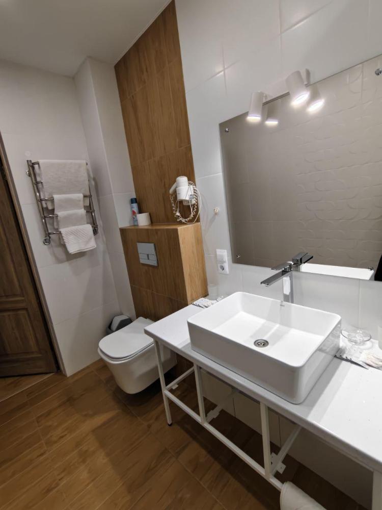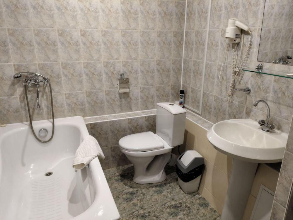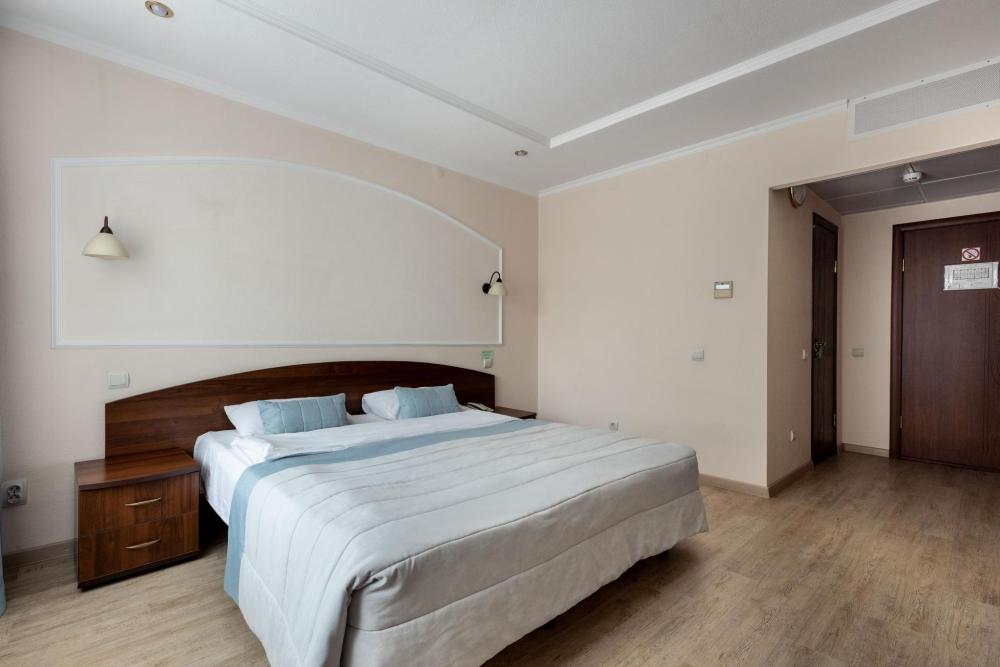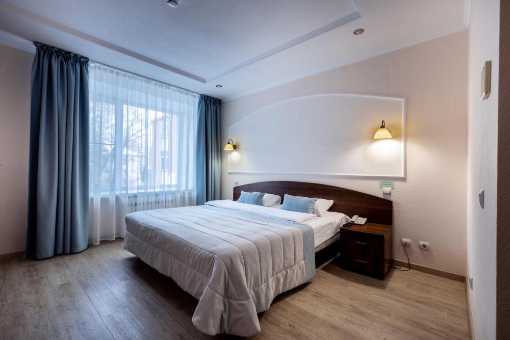Двухкомнатный номер с двуспальной кроватью, письменным столом и необходимой мебелью. Во всех номерах есть телевизор, холодильник, шкаф‑купе для одежды. Полностью укомплектованная ванная комната. Площадь номера: 29 кв.м